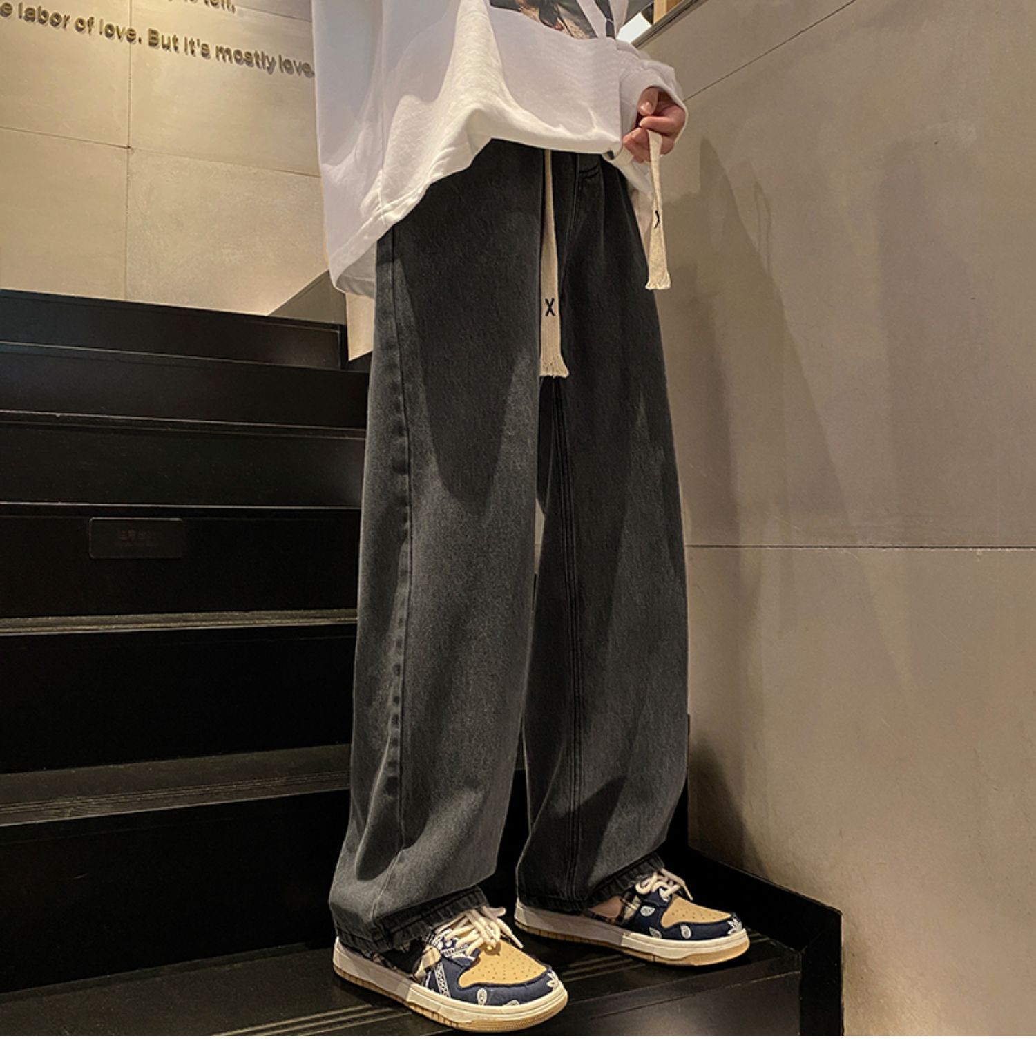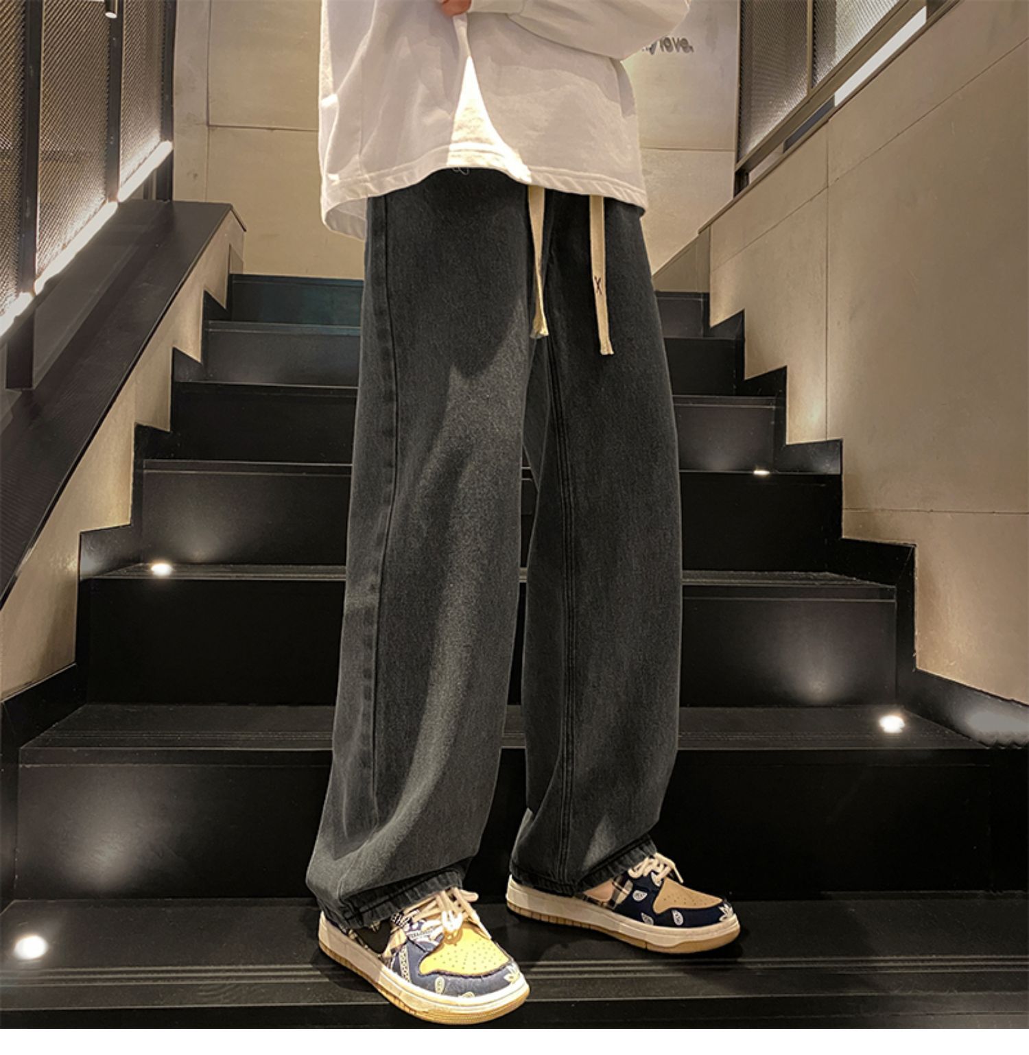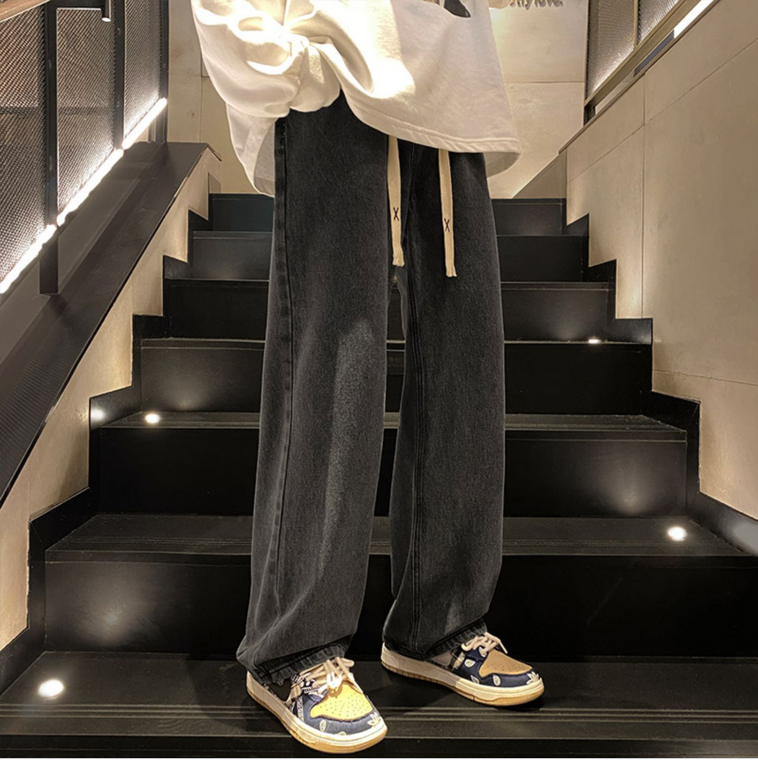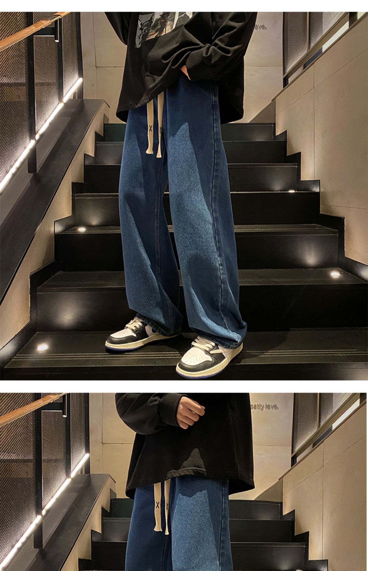 美式复古男士牛仔裤秋冬季直筒宽松潮牌阔腿裤高街百搭休闲长裤子