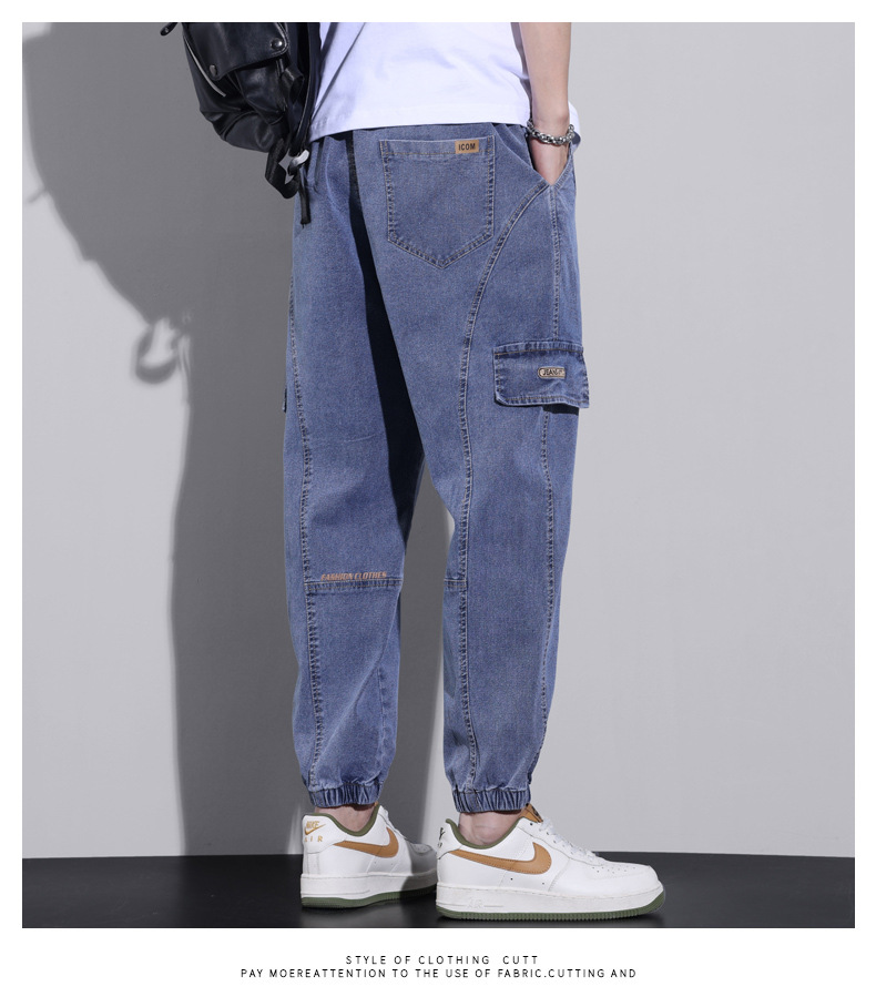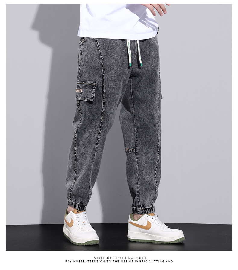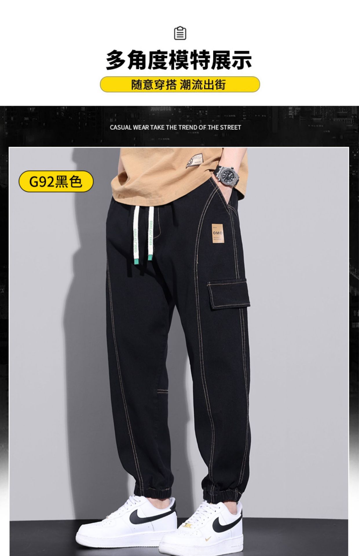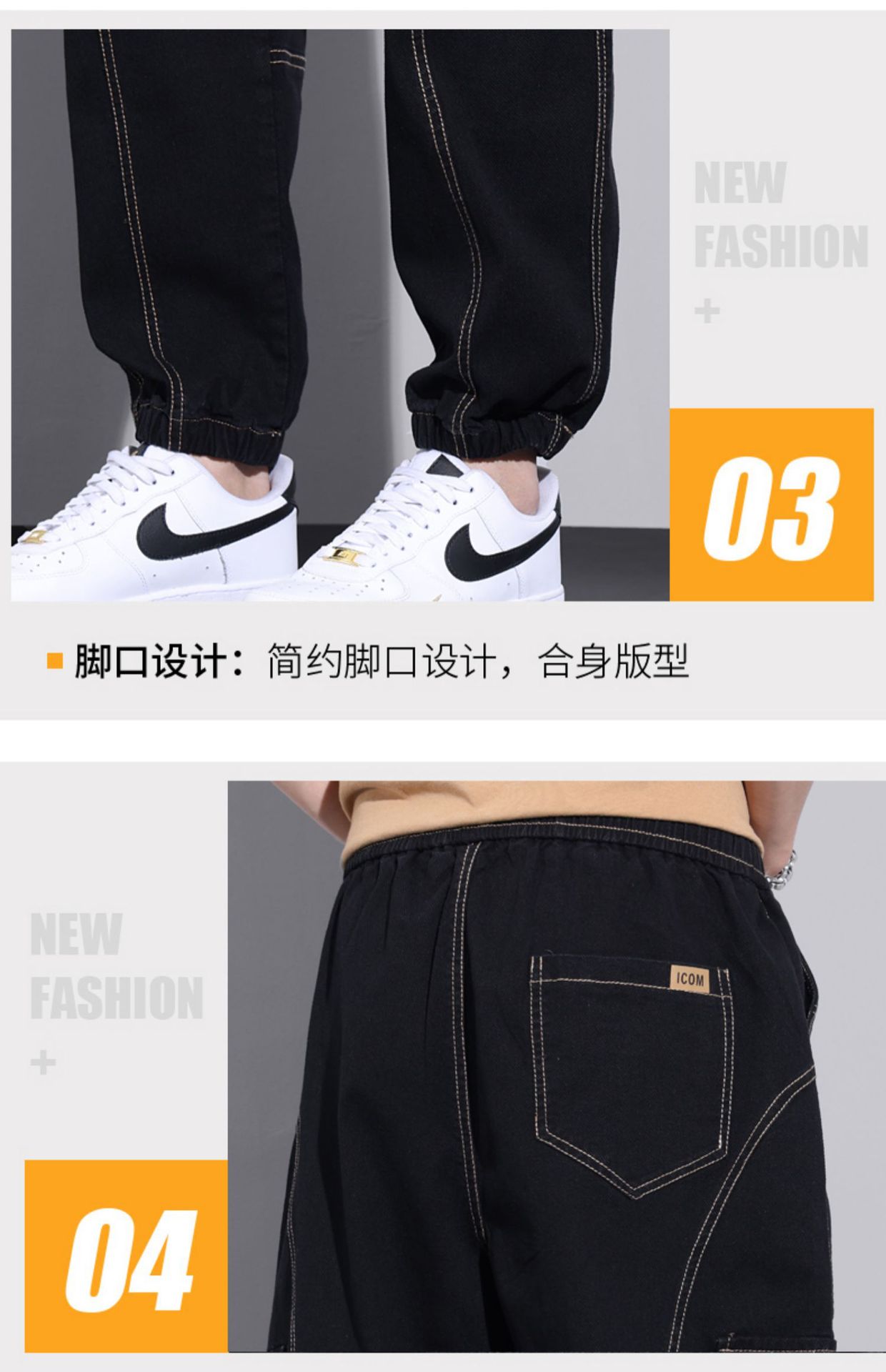 美式工装牛仔裤男士春夏季束脚老爹裤宽松潮牌哈伦裤大码休闲裤子