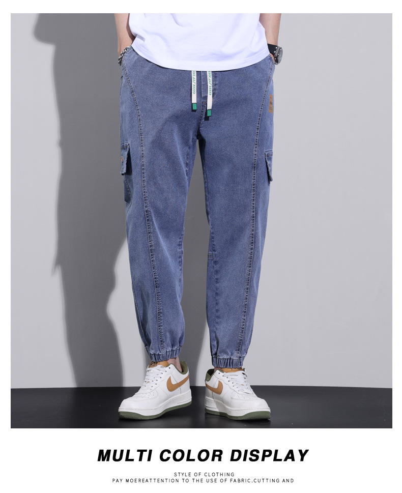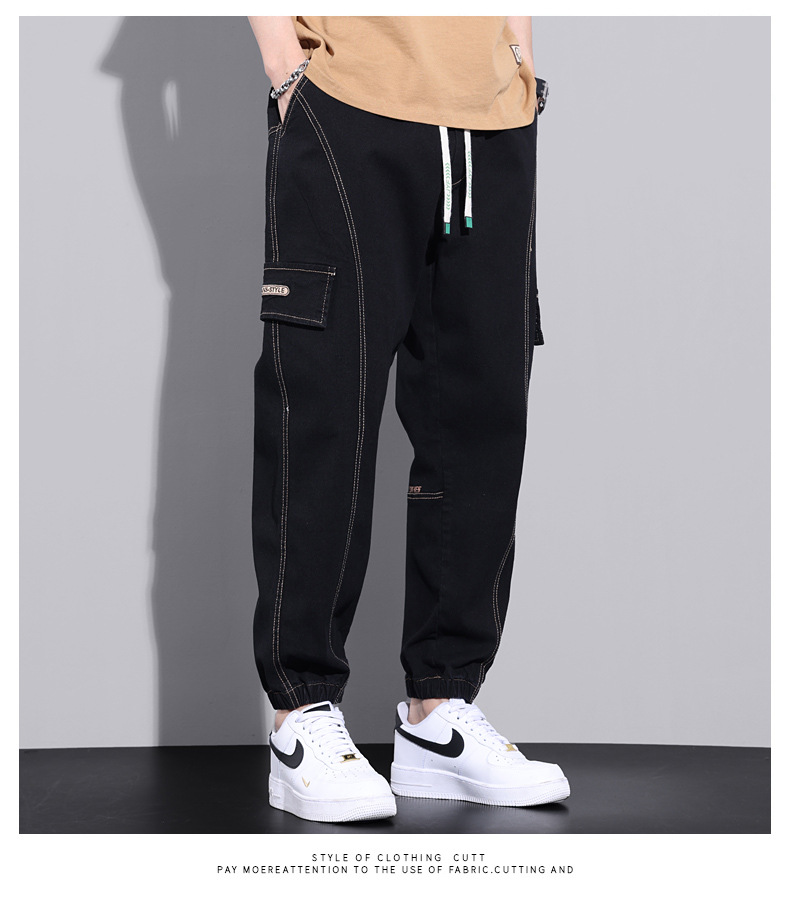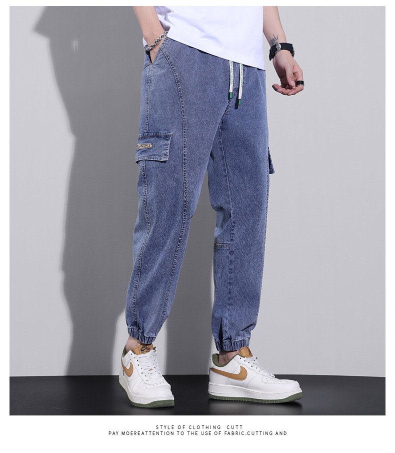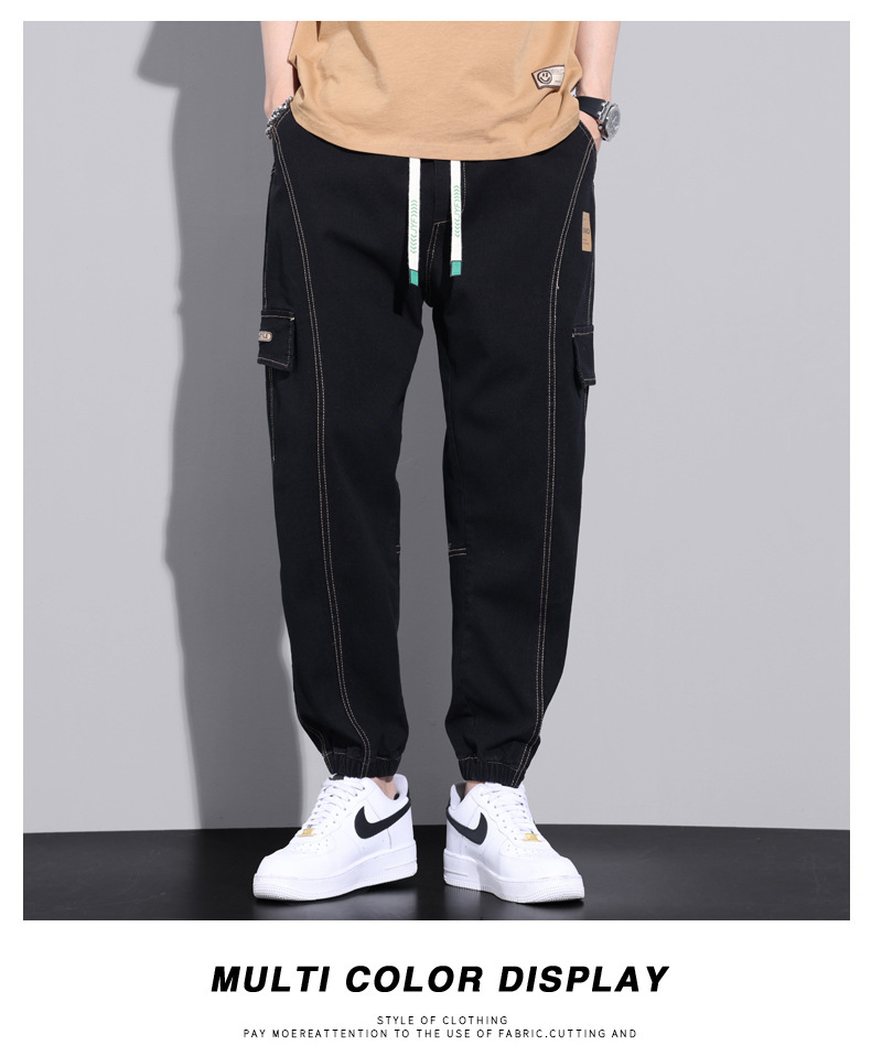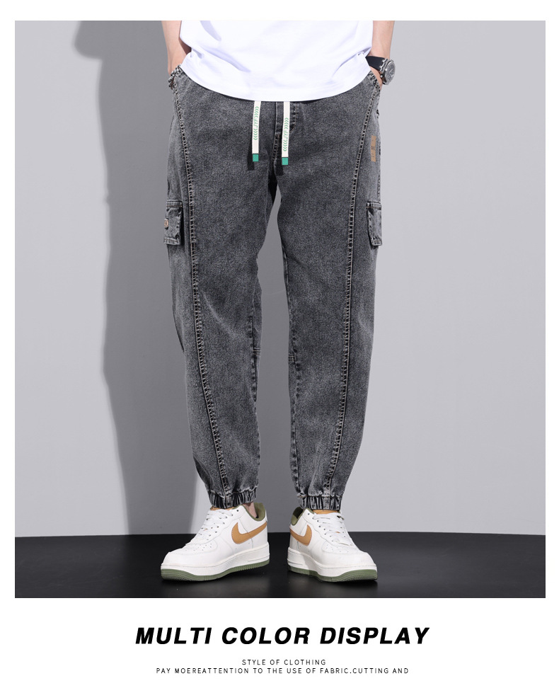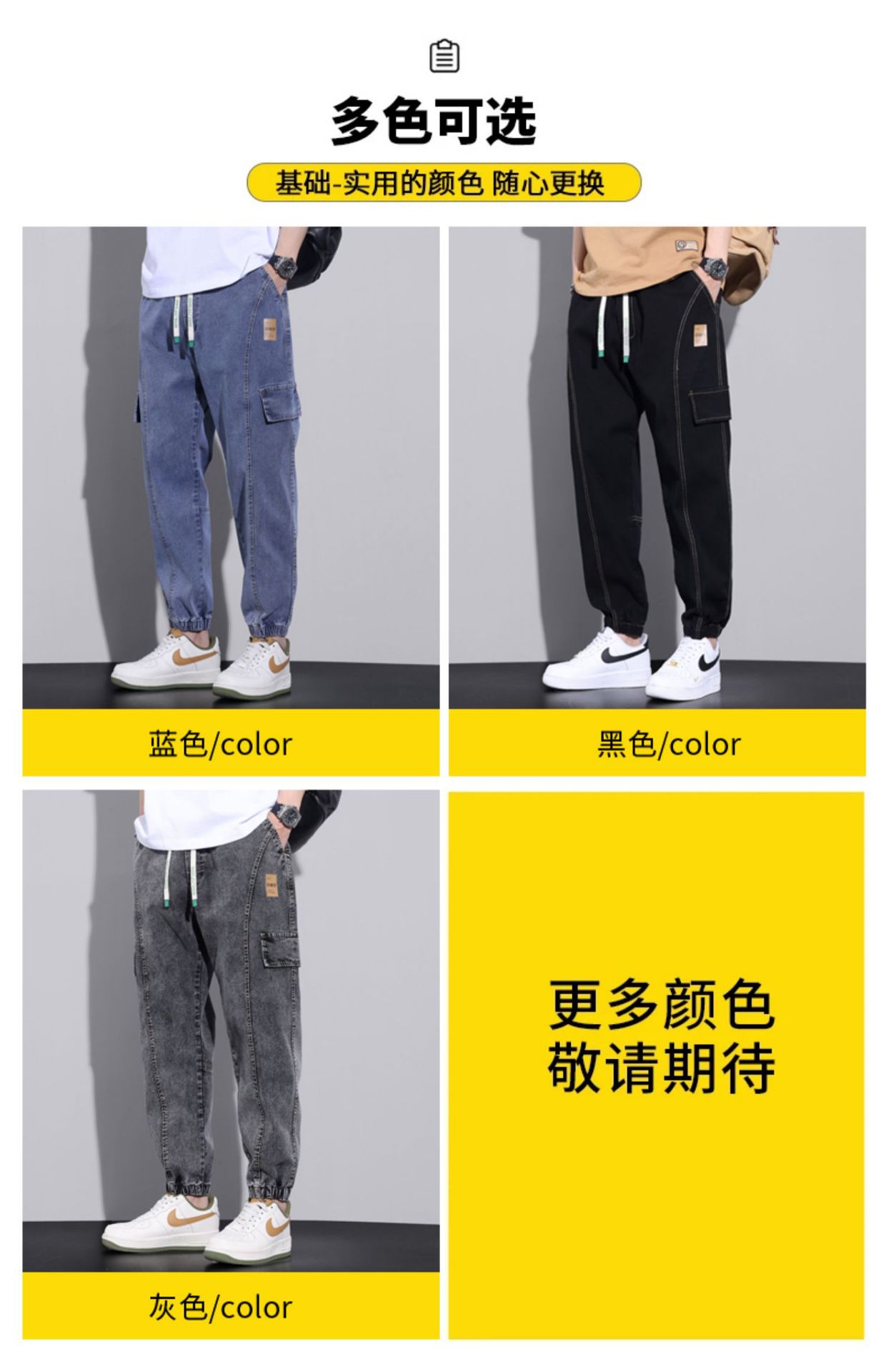 美式工装牛仔裤男士春夏季束脚老爹裤宽松潮牌哈伦裤大码休闲裤子