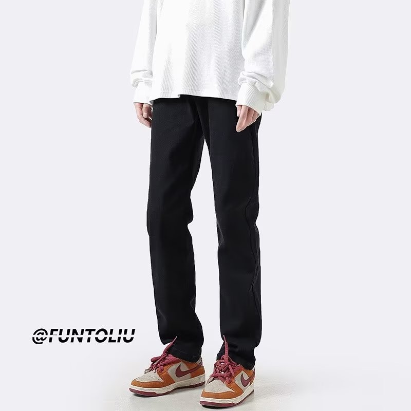 美式街头黑色牛仔裤男春秋高街ins潮流休闲直筒裤百搭显瘦水洗裤