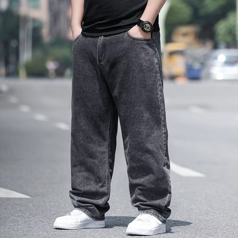 秋冬款牛仔裤男宽松直筒加肥加大码运动裤胖子肥佬弹力长裤子潮流