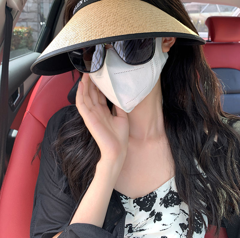 空顶帽子女夏季沙滩防晒遮阳发箍太阳帽草帽遮脸海边度假草编鸭舌