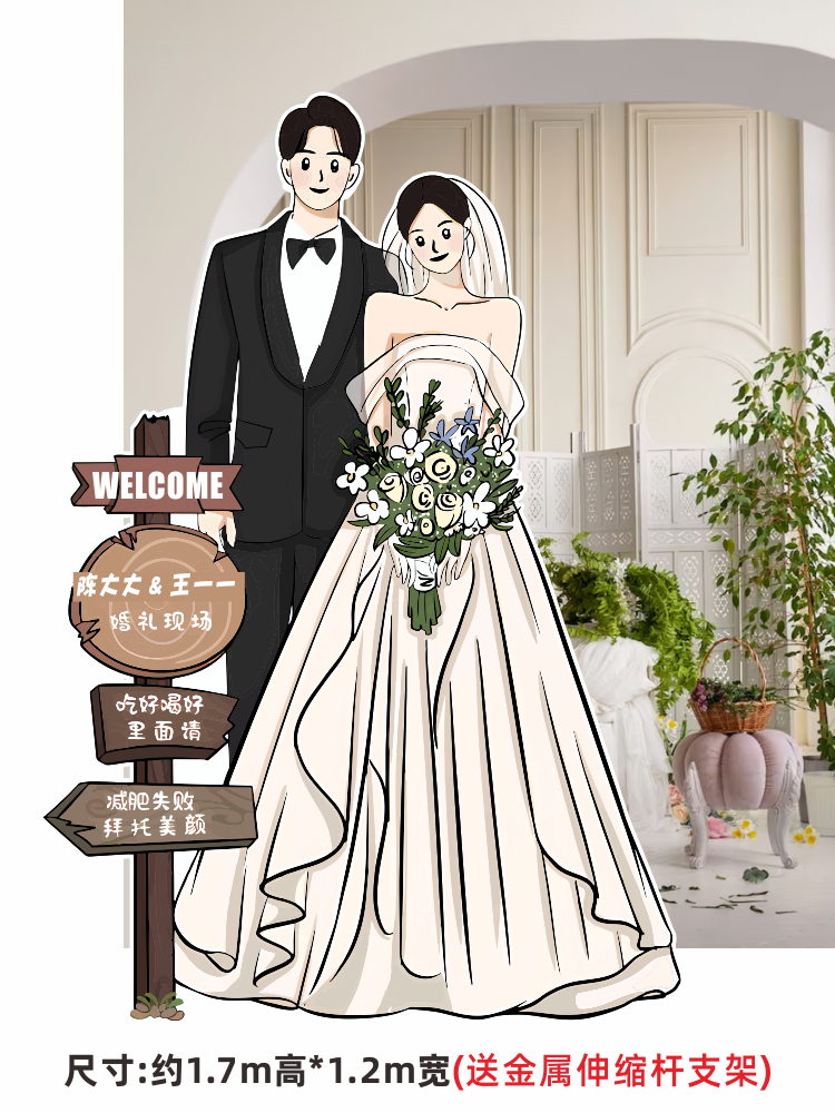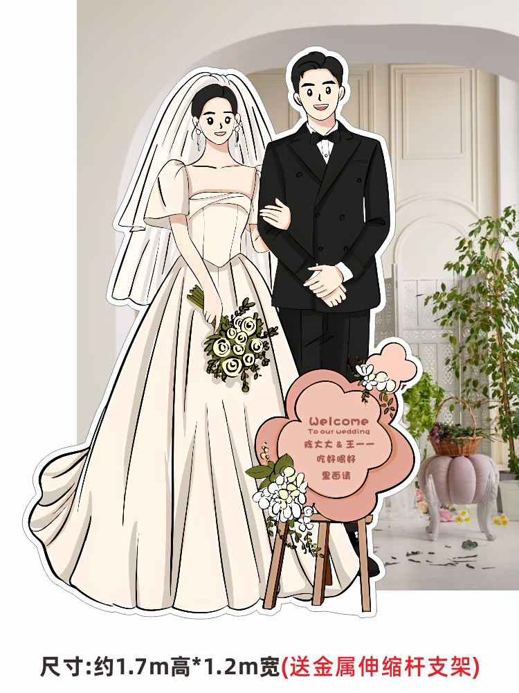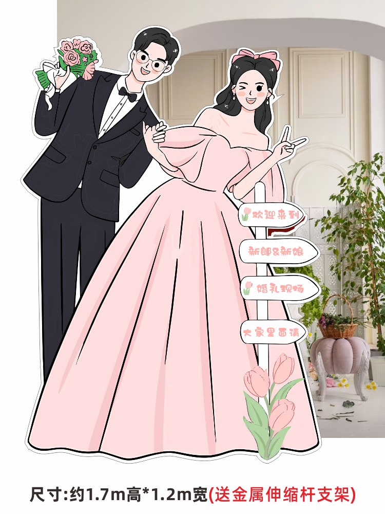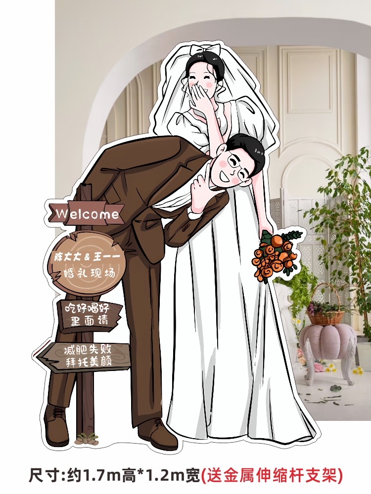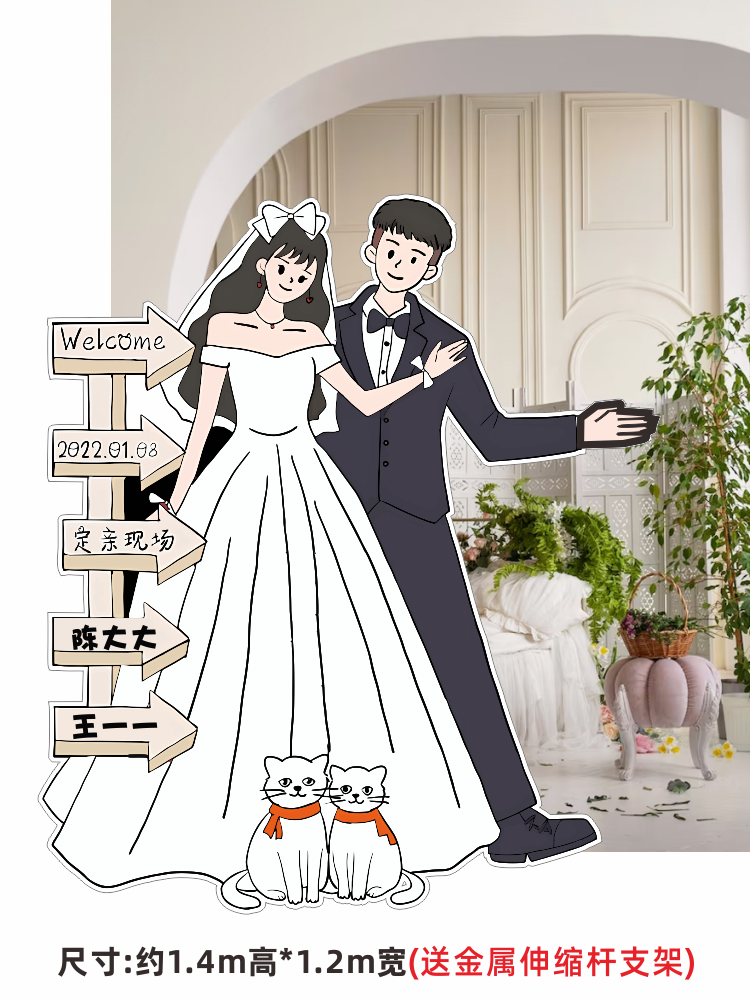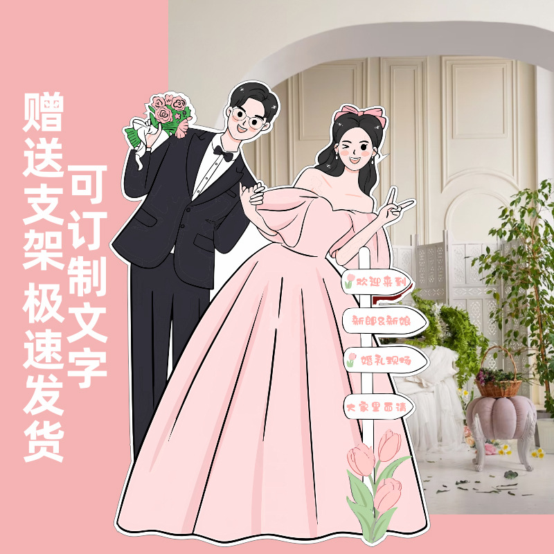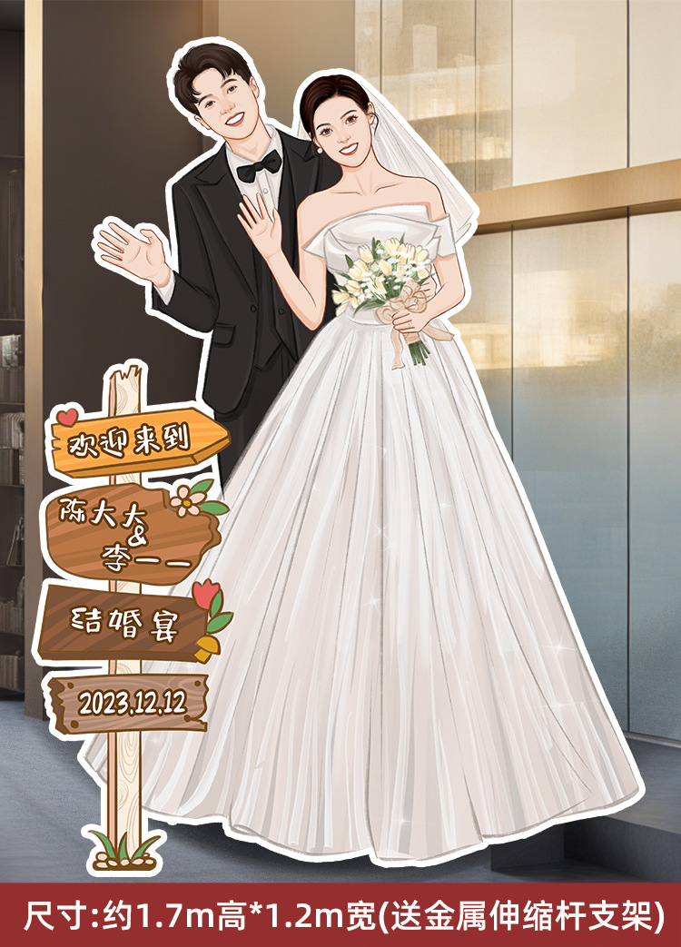 Q版卡通结婚订婚宴指路牌人形立牌漫画手绘指引牌迎宾牌布置