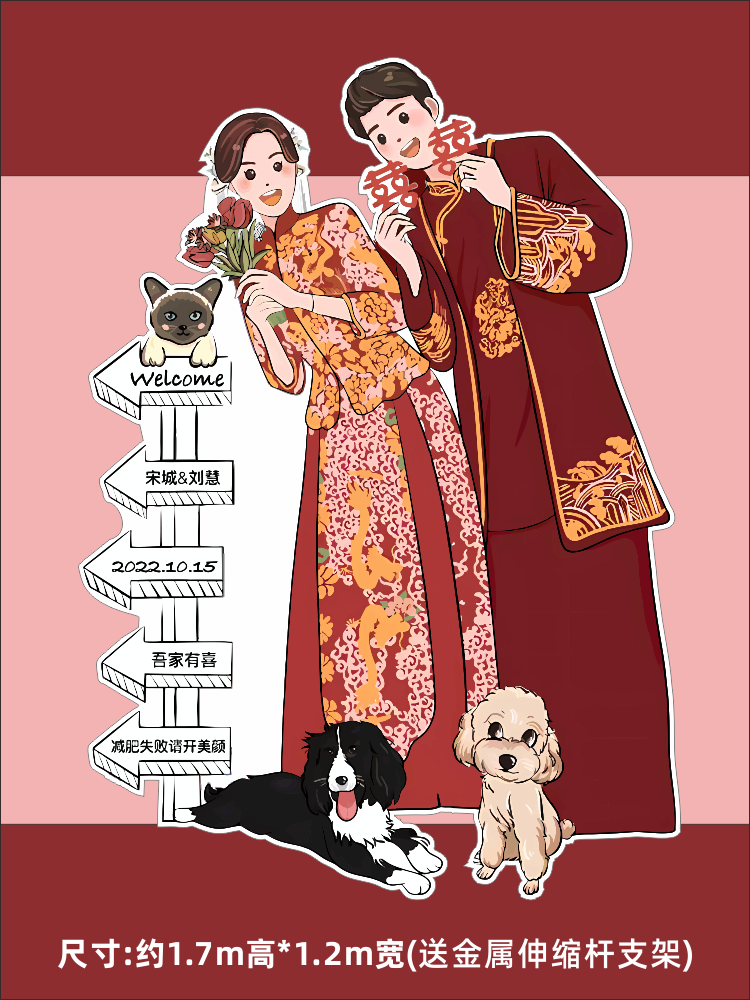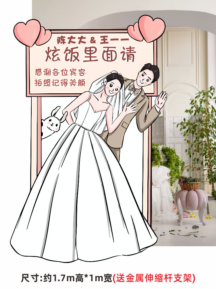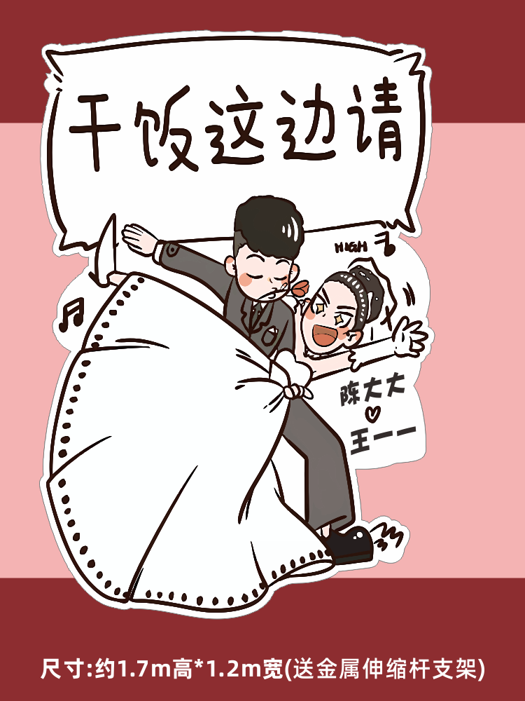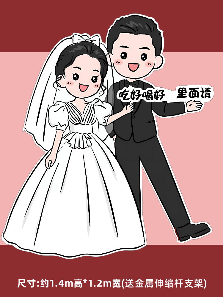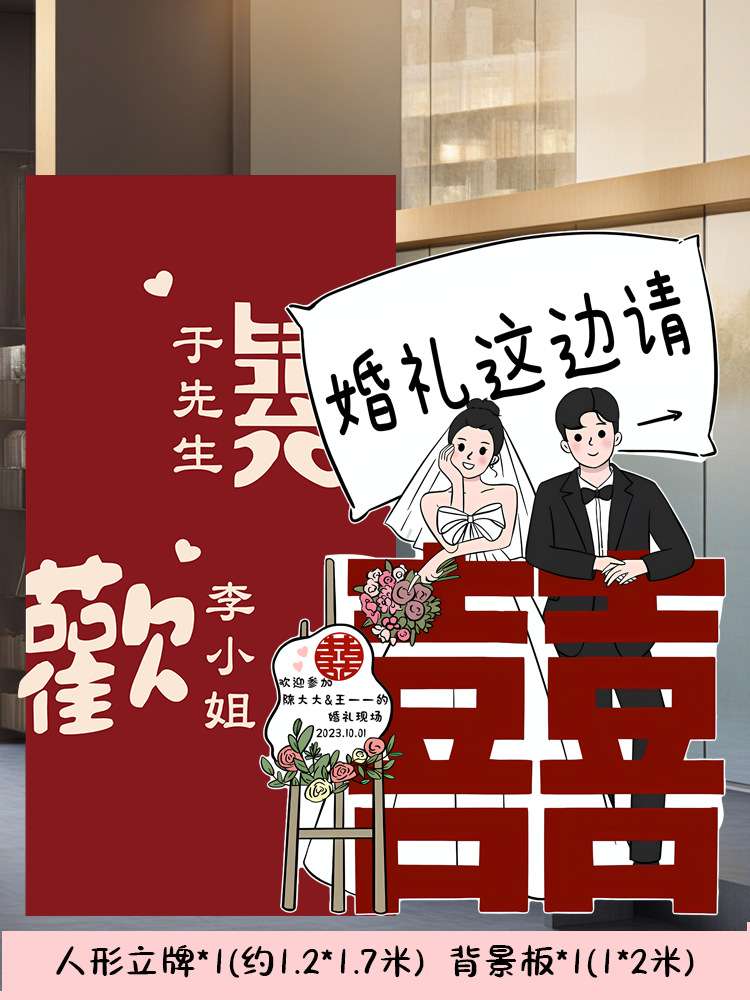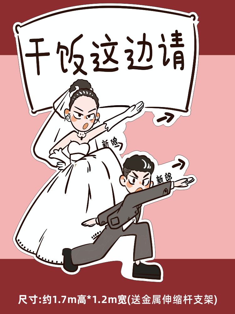 Q版卡通结婚订婚宴指路牌人形立牌漫画手绘指引牌迎宾牌布置
