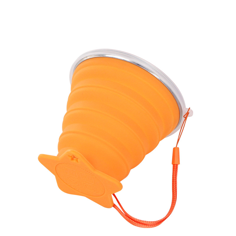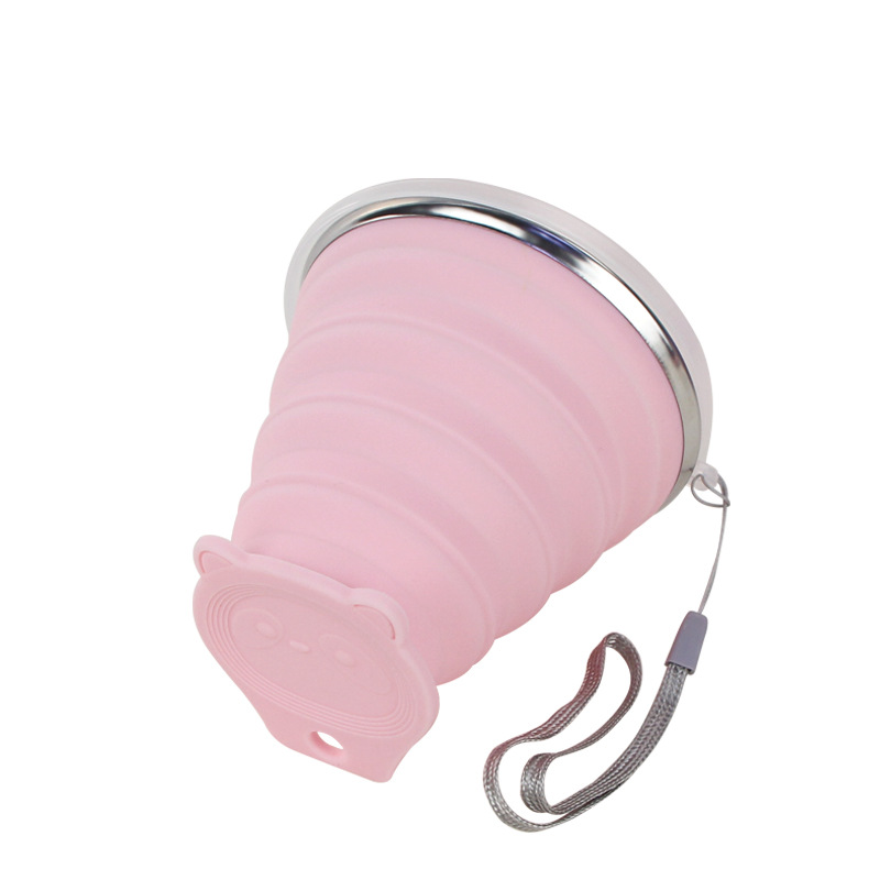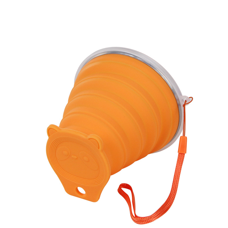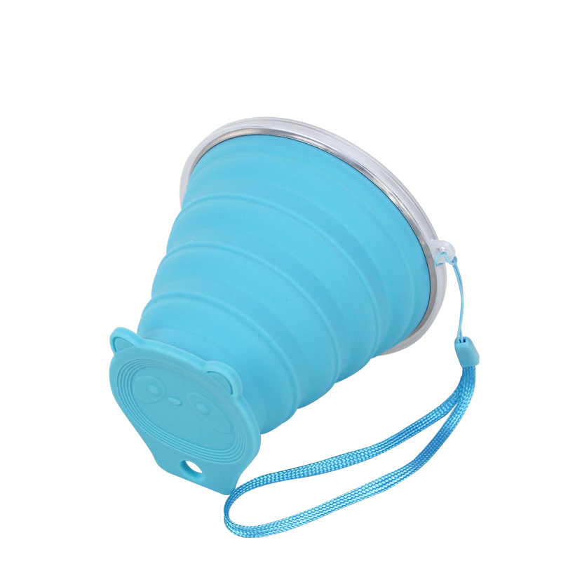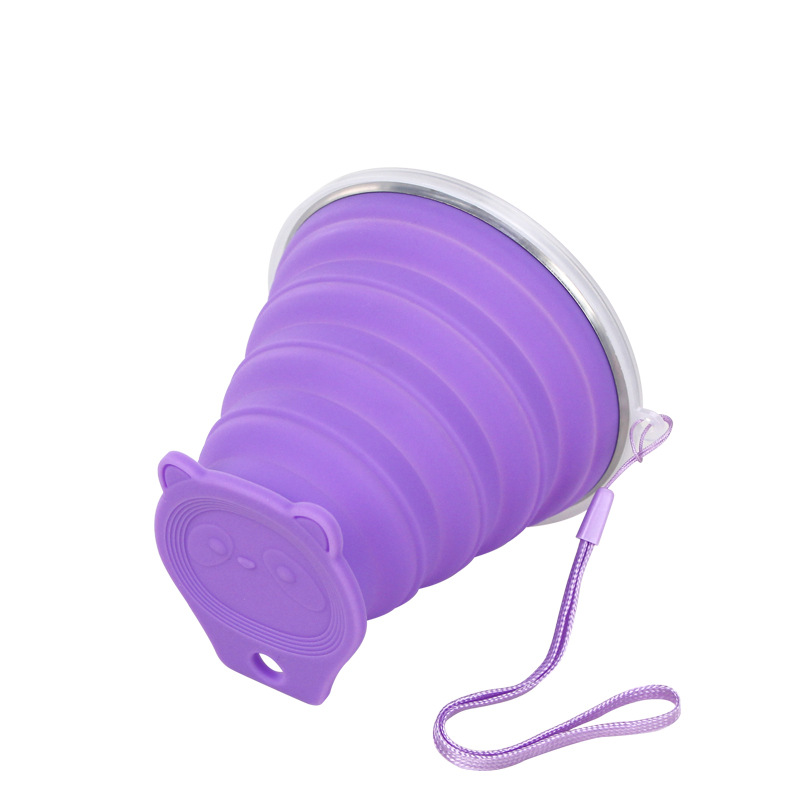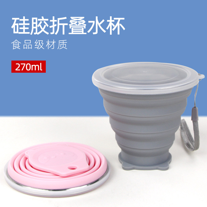 270ml 熊猫五角星硅胶折叠杯旅行便携带盖漱口杯带绳超薄杯随手杯