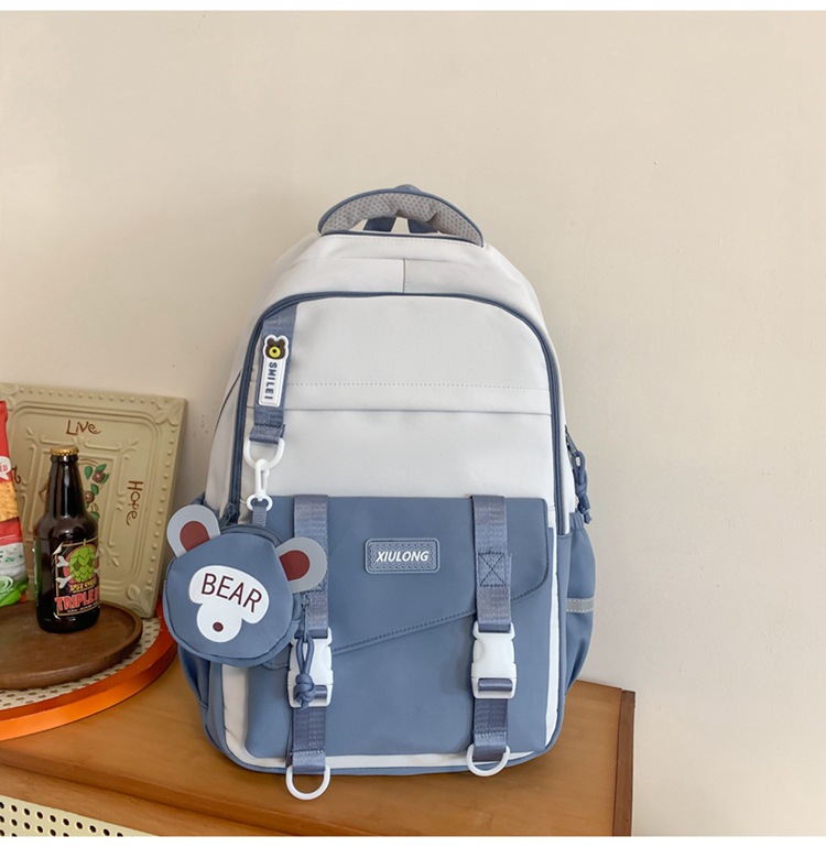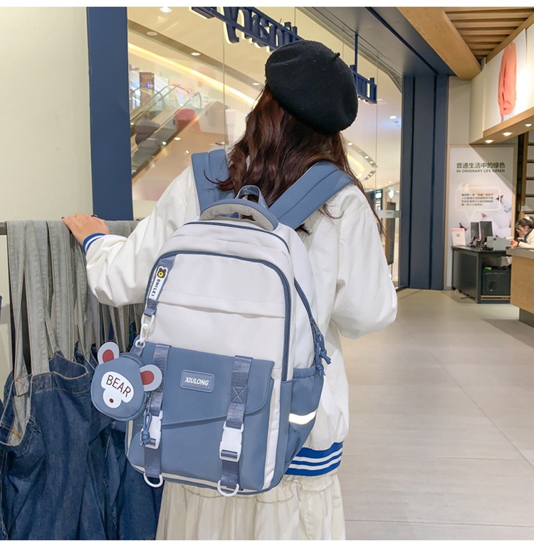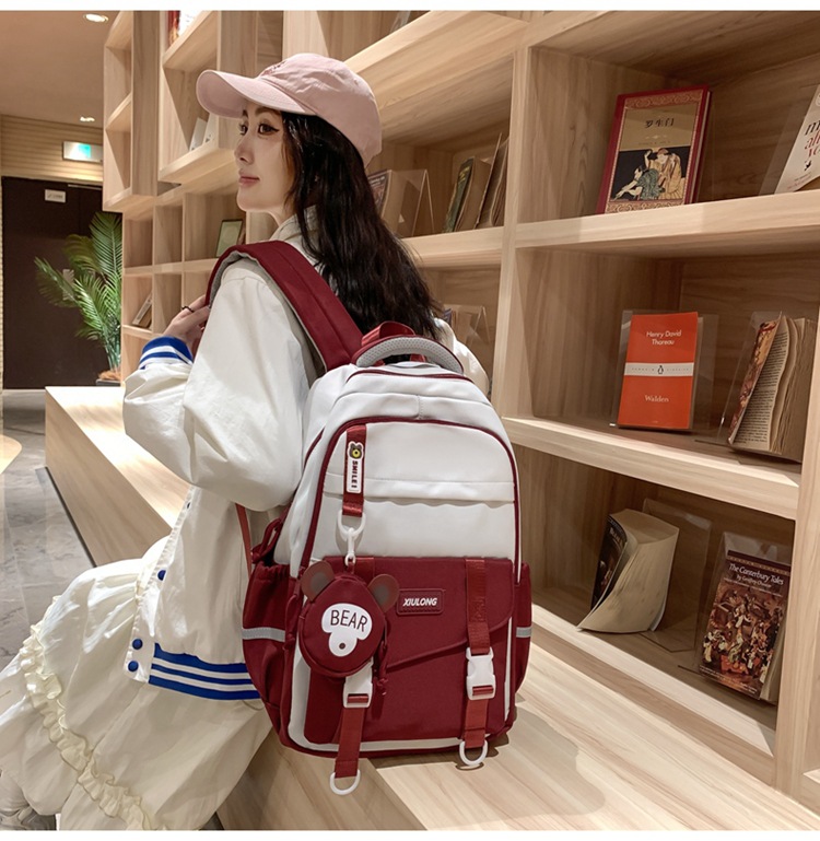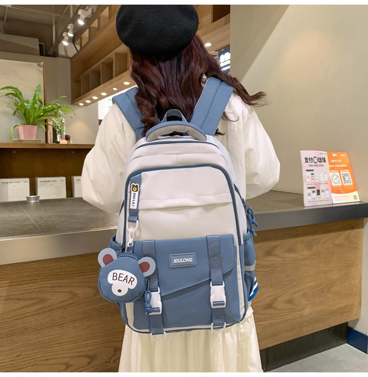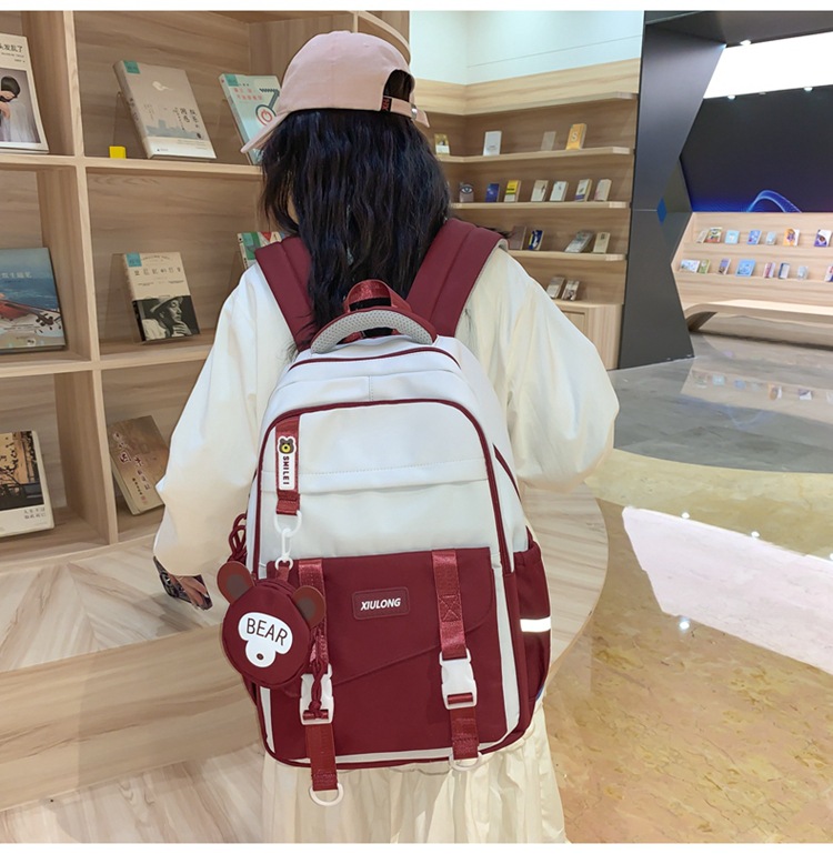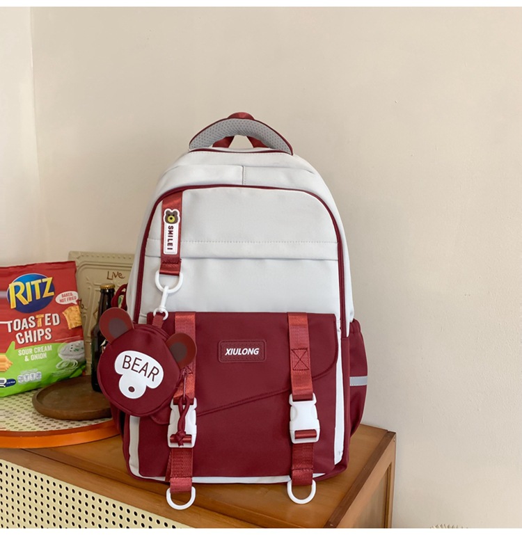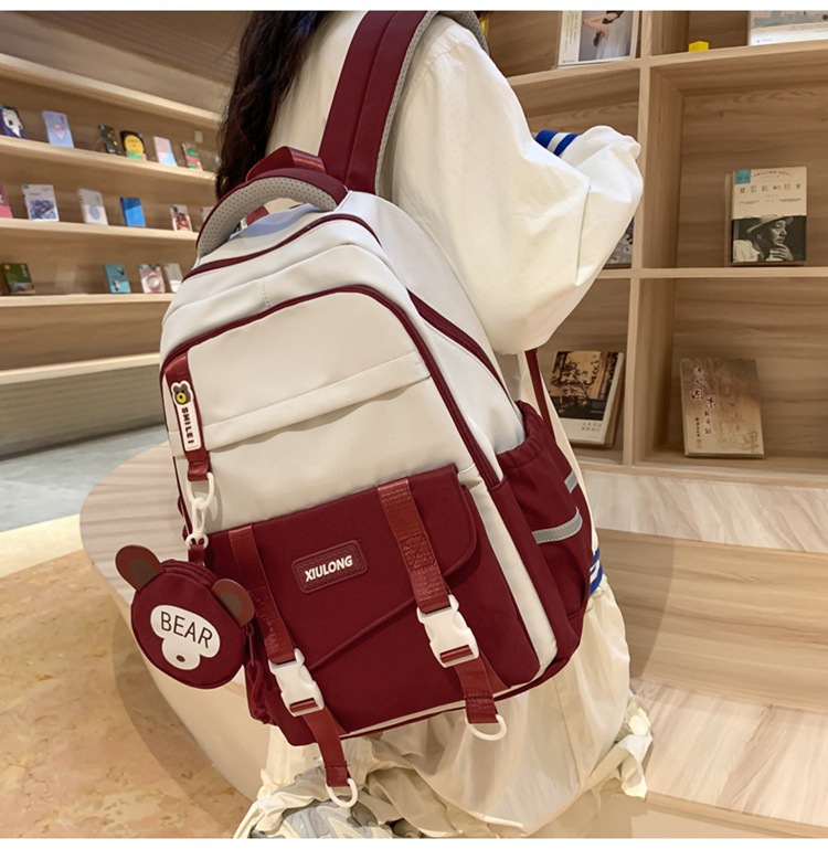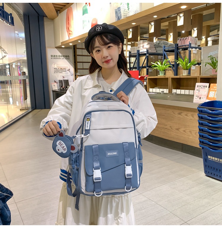 撞色书包女双肩包韩版ins校园初高中生背包批发