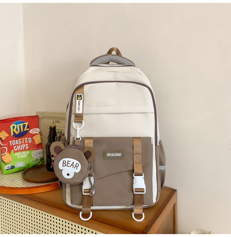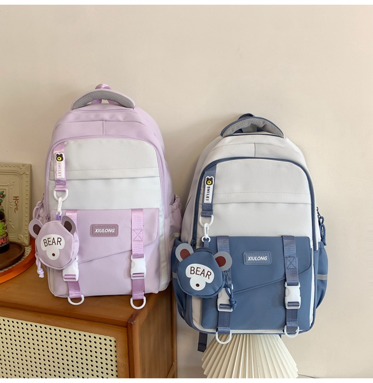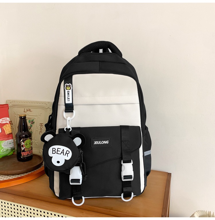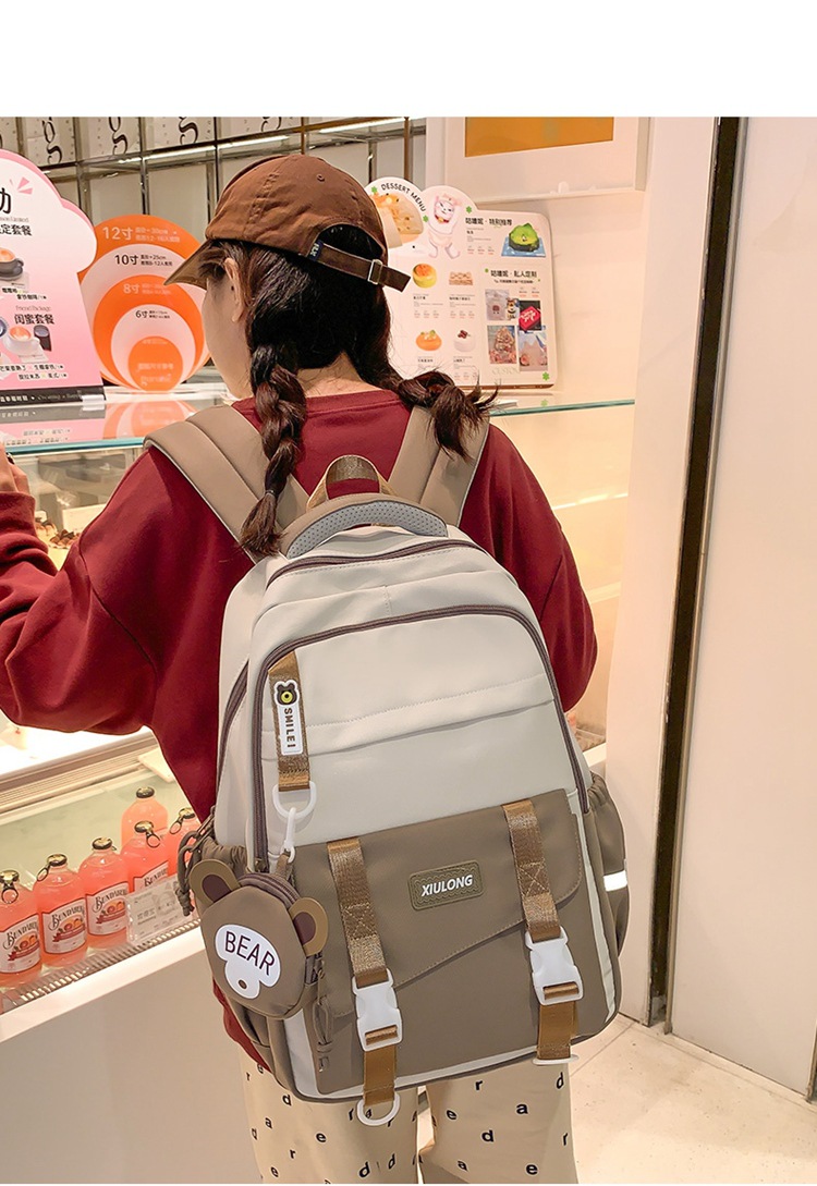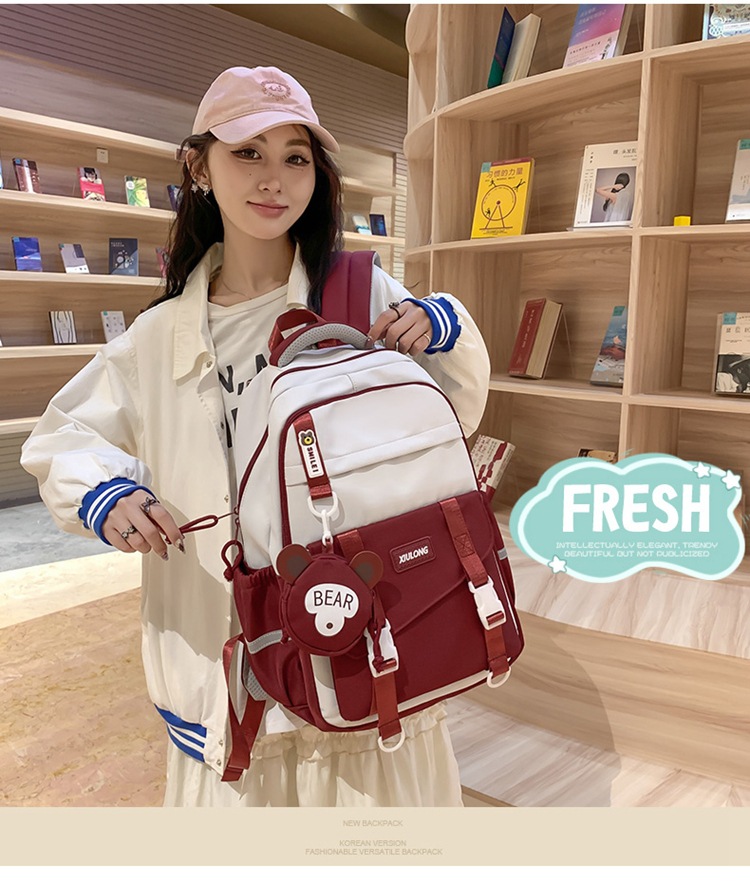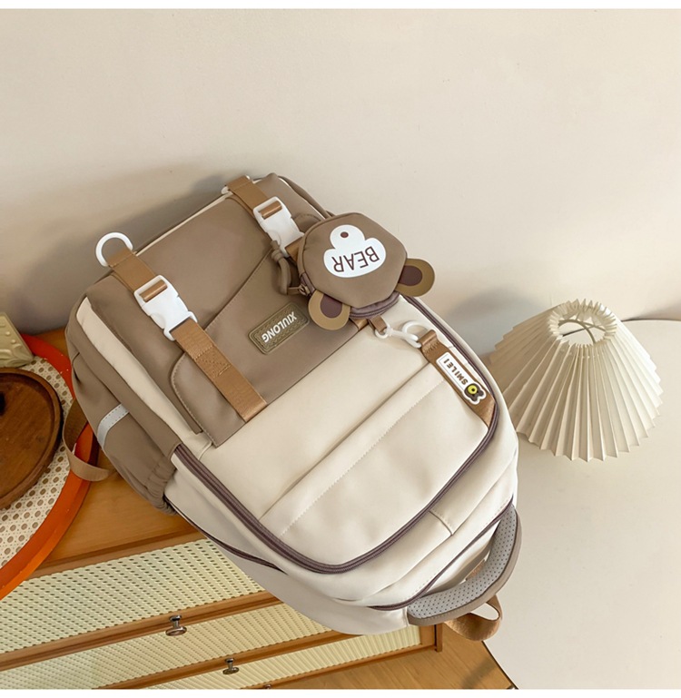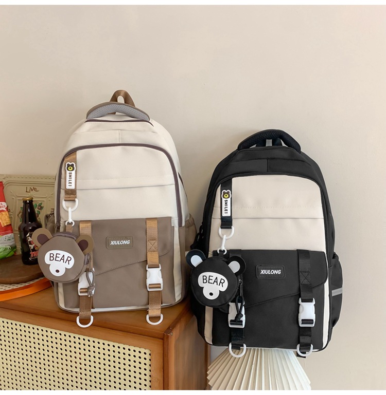 撞色书包女双肩包韩版ins校园初高中生背包批发