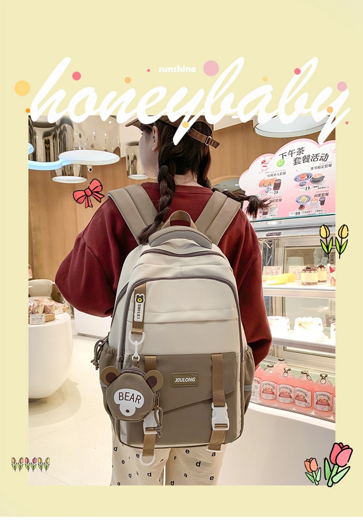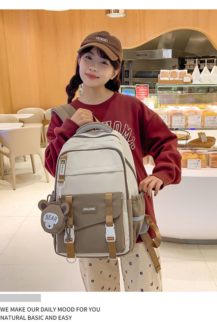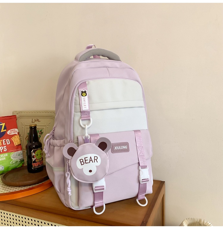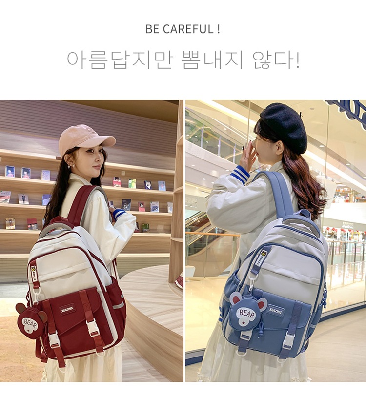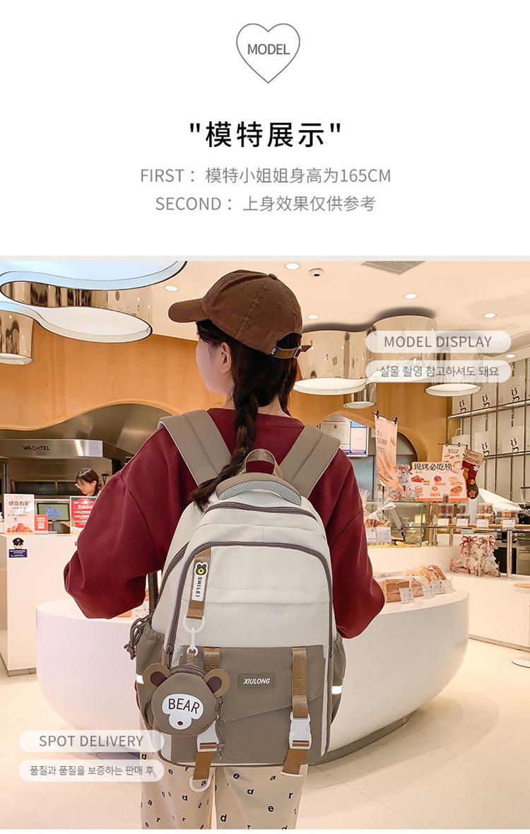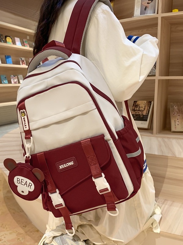撞色书包女双肩包韩版ins校园初高中生背包批发