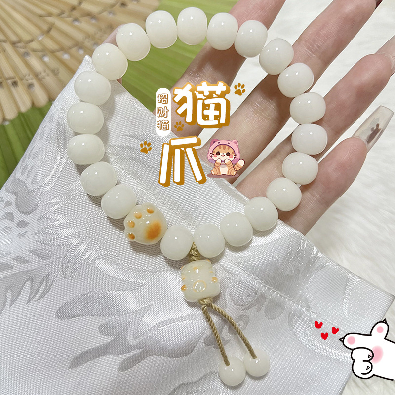 精工雕刻猫爪手持吊坠款菩提手串 新品紫色可爱猫爪手串文玩批发
