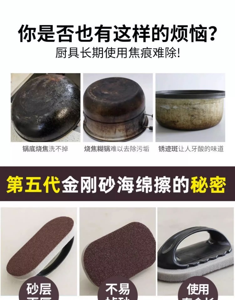 带手柄金刚砂海绵擦魔力擦洗锅清洁刷去污洗锅底黑垢除锈刷锅神器