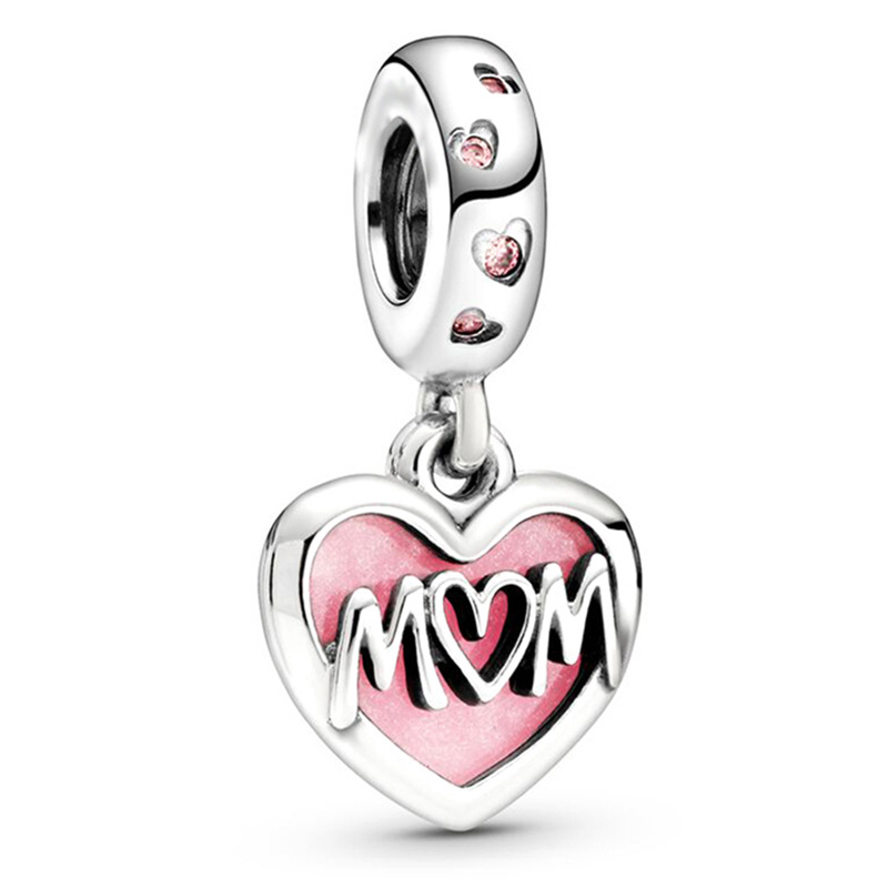 新款DIY串珠母亲节滴油镶钻爱心珠子Mother散珠配饰品手链吊坠