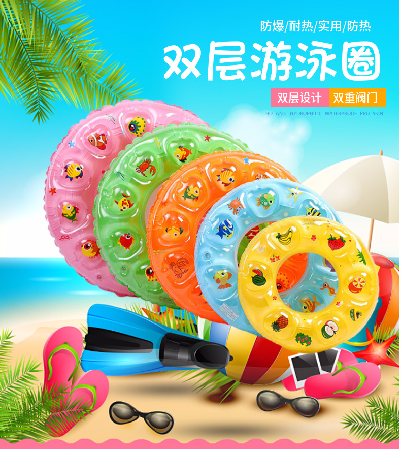 加厚儿童充气双层游泳圈水晶圈双气囊救生游泳腰圈玩具现货