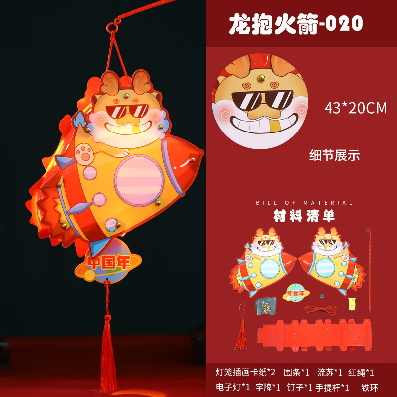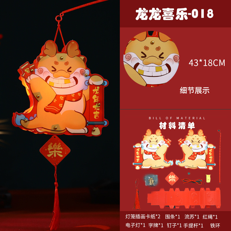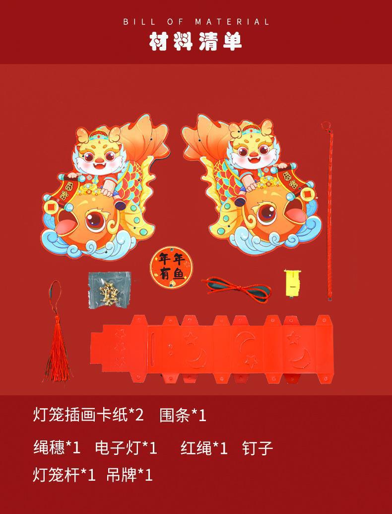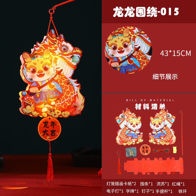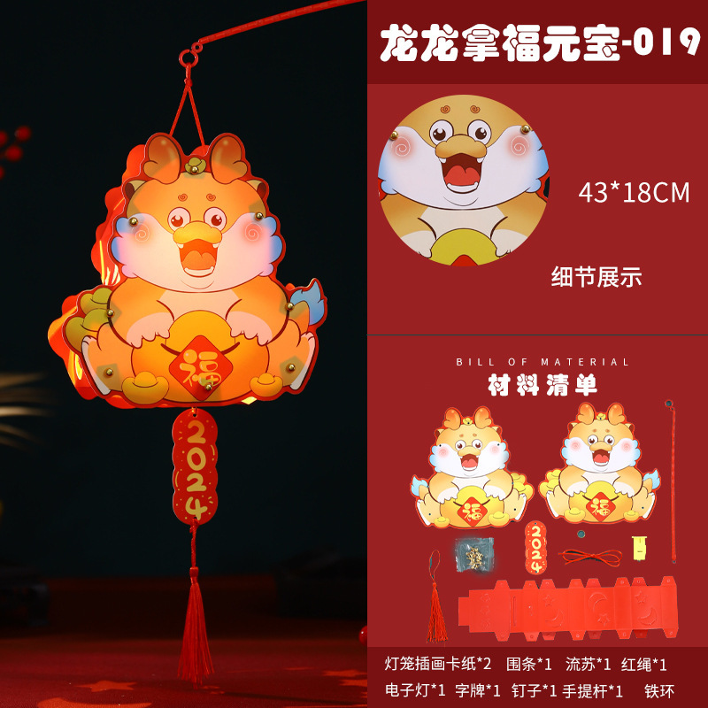 2024年新款儿童手提宫灯龙年灯笼DIY材料包元宵节发光手提小灯笼