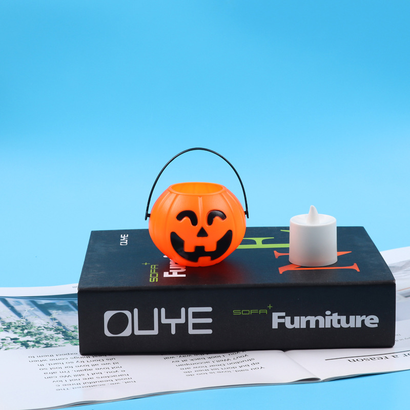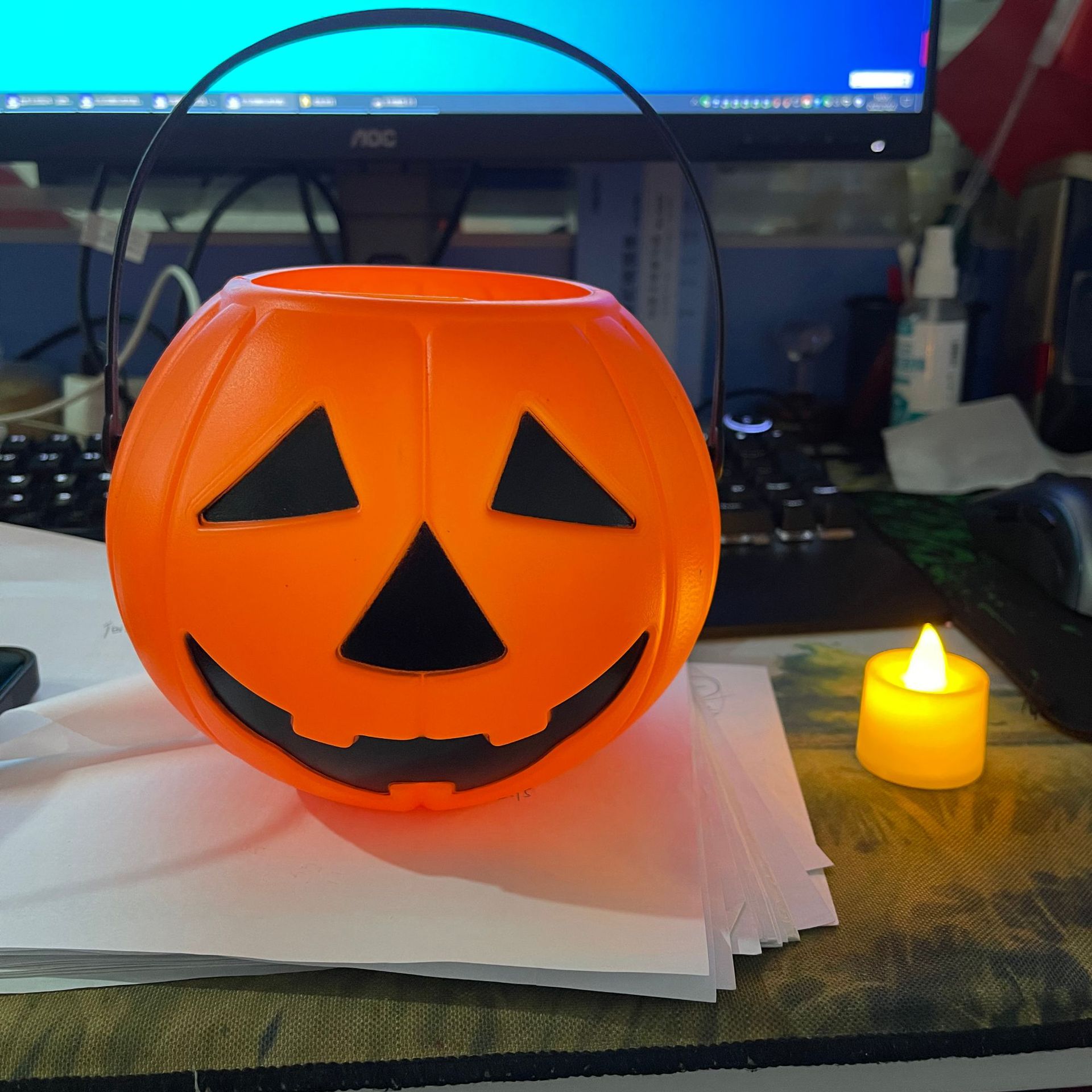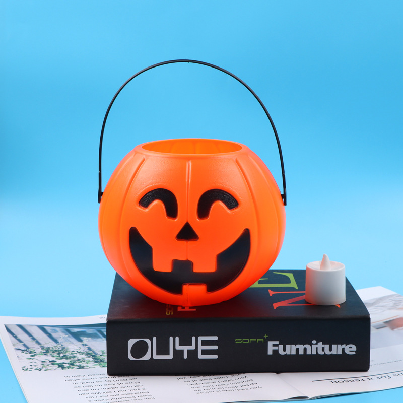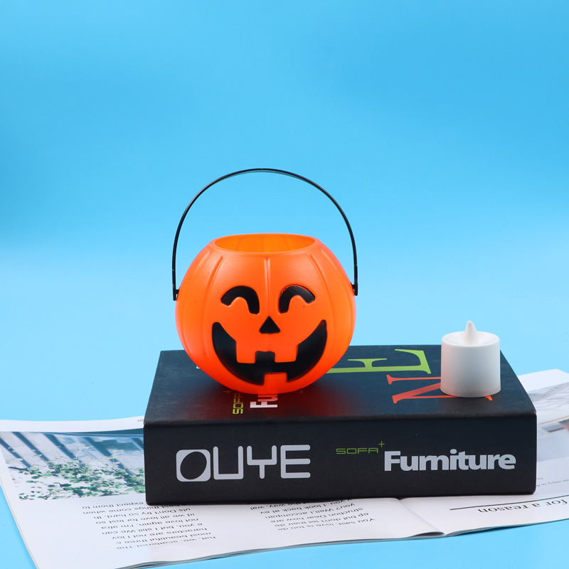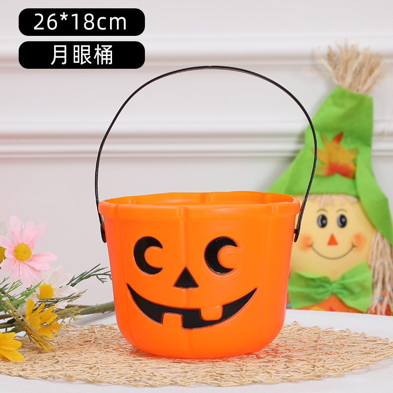 万圣节南瓜罐子鬼节装饰南瓜桶18厘米带盖子三角眼睛南瓜罐南瓜灯