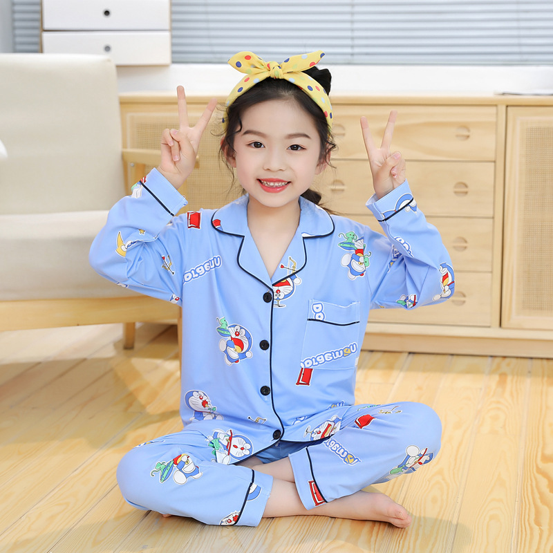 儿童睡衣春秋款男童女童长袖薄款小孩卡通空调家居服夏季套装批发