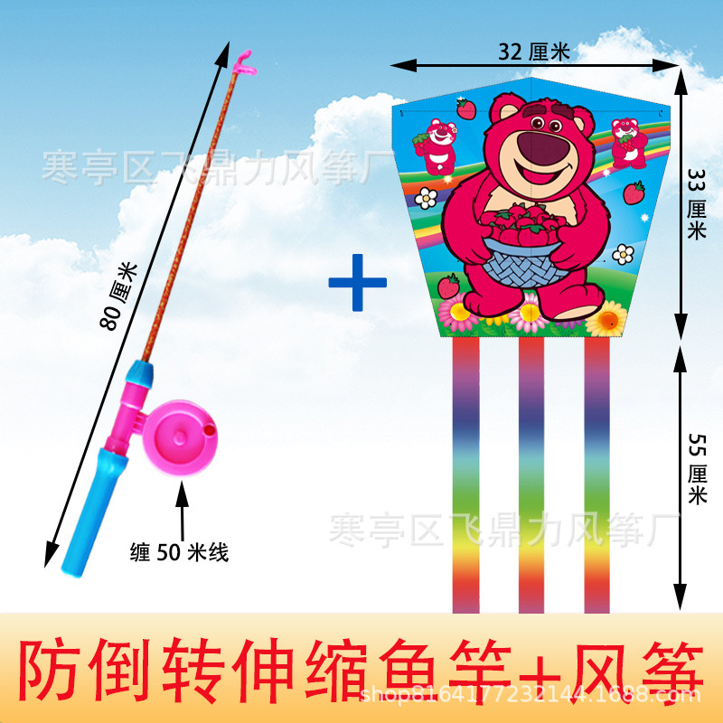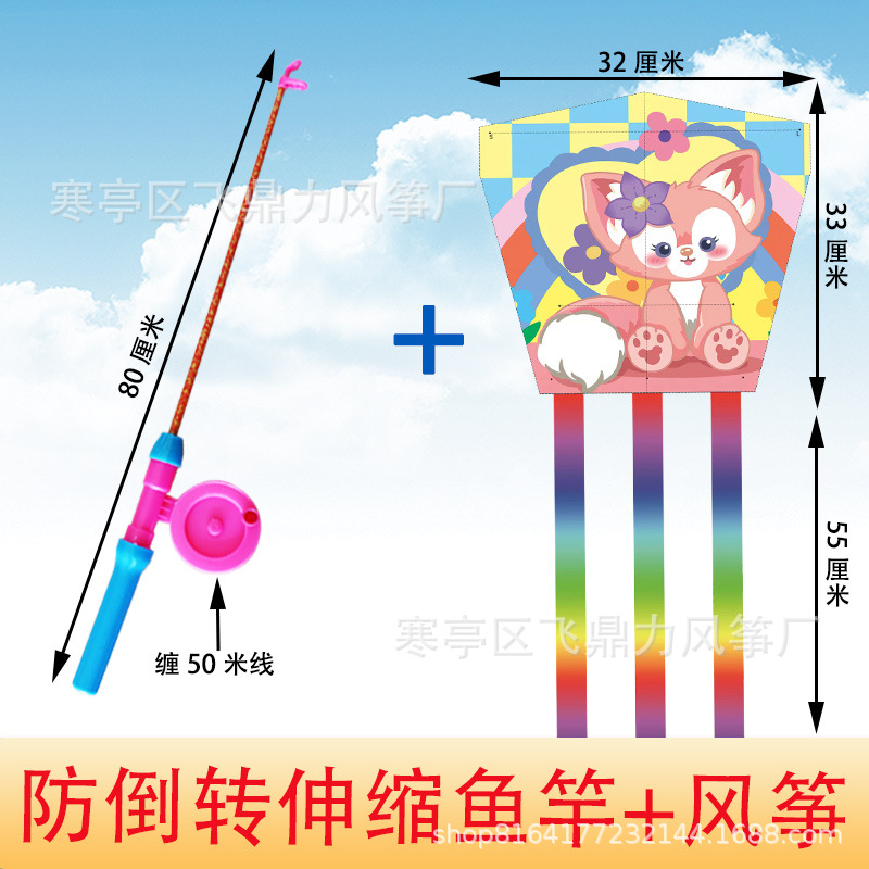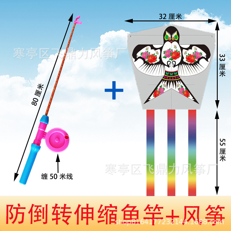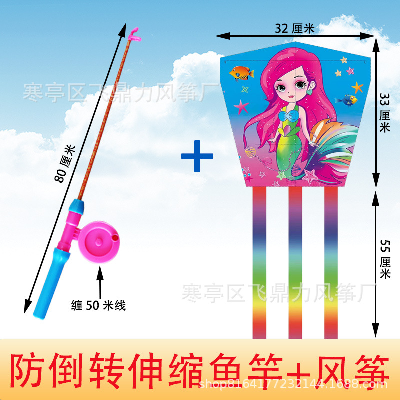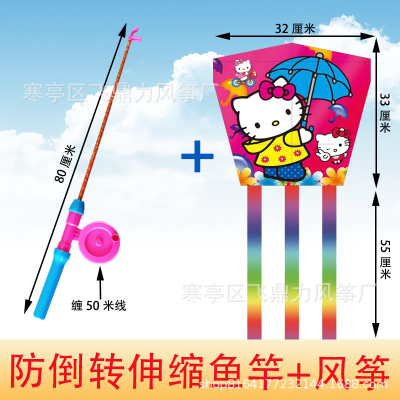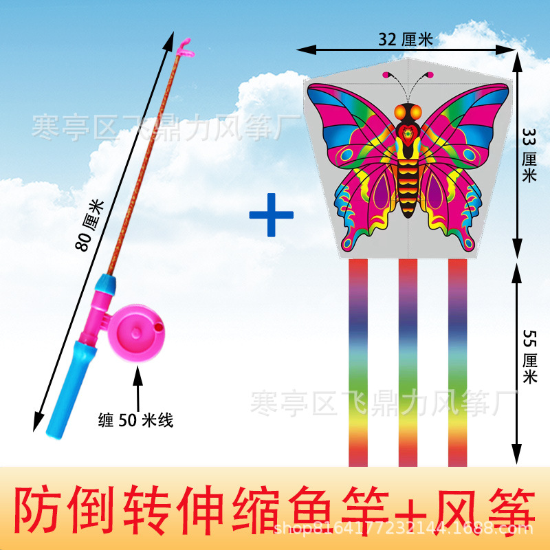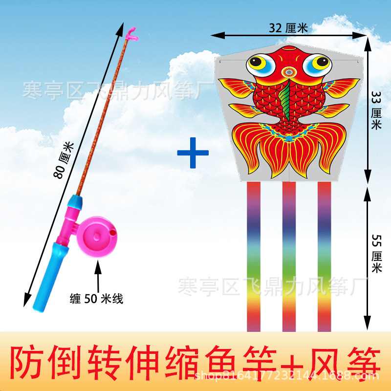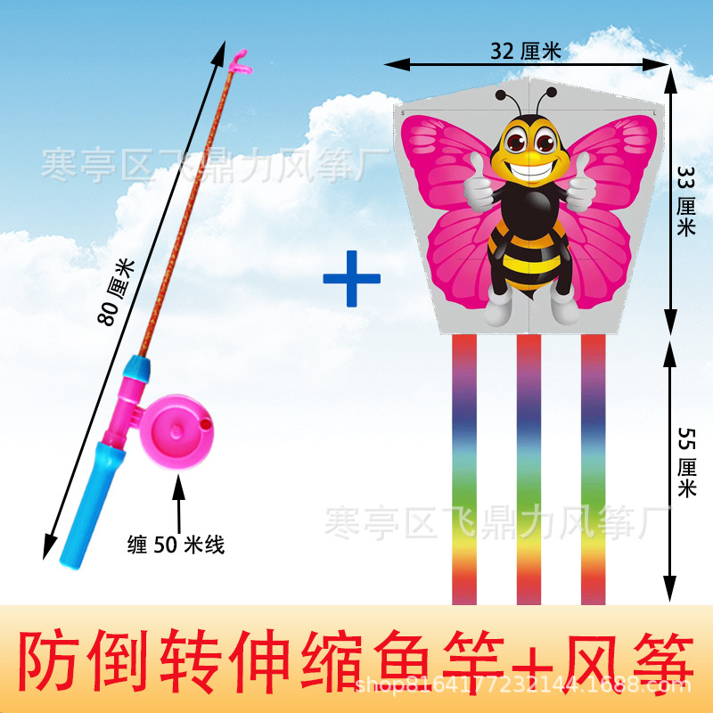 潍坊风筝批发厂家直销新款儿童鱼竿风筝手持小风筝适合公园地摊