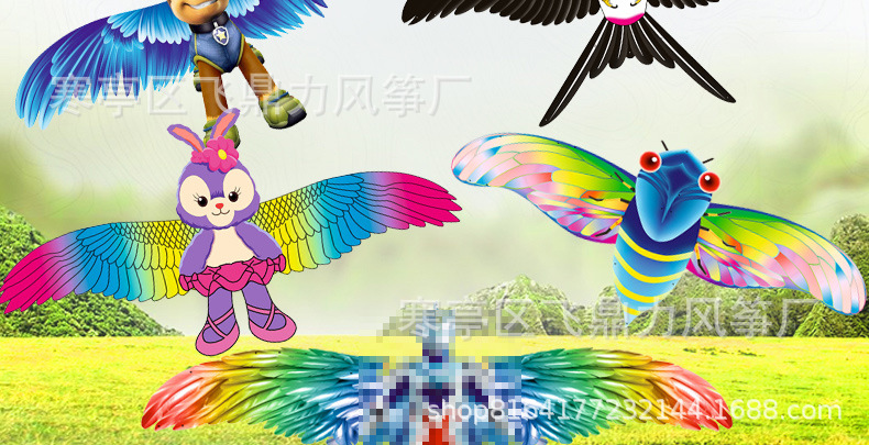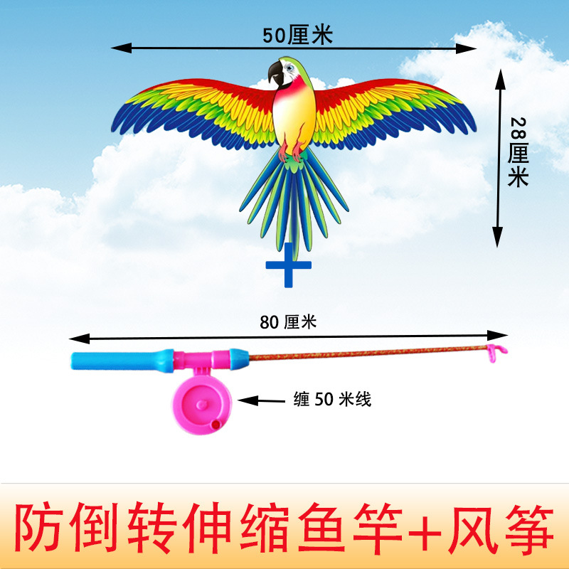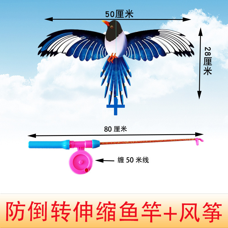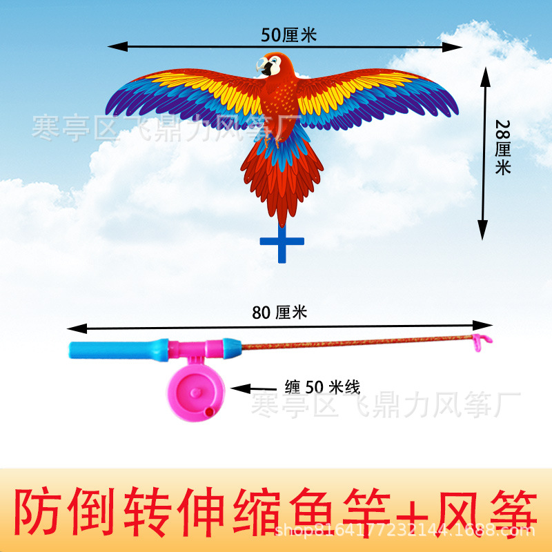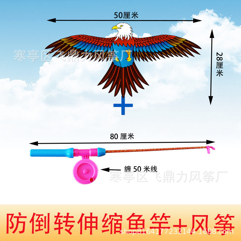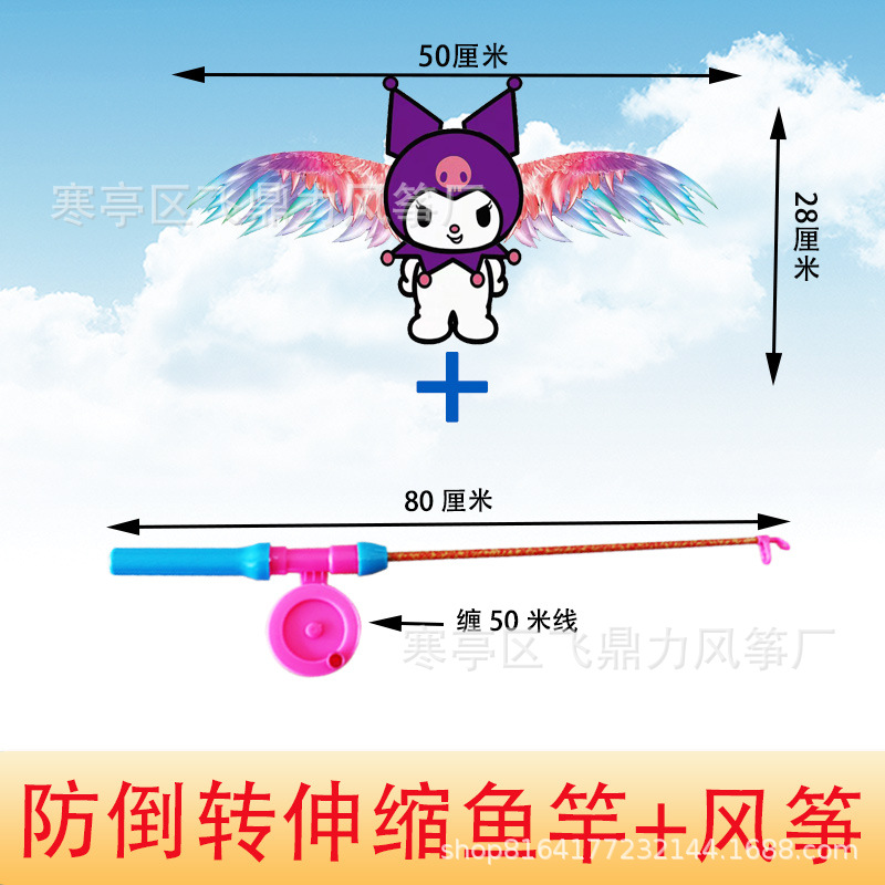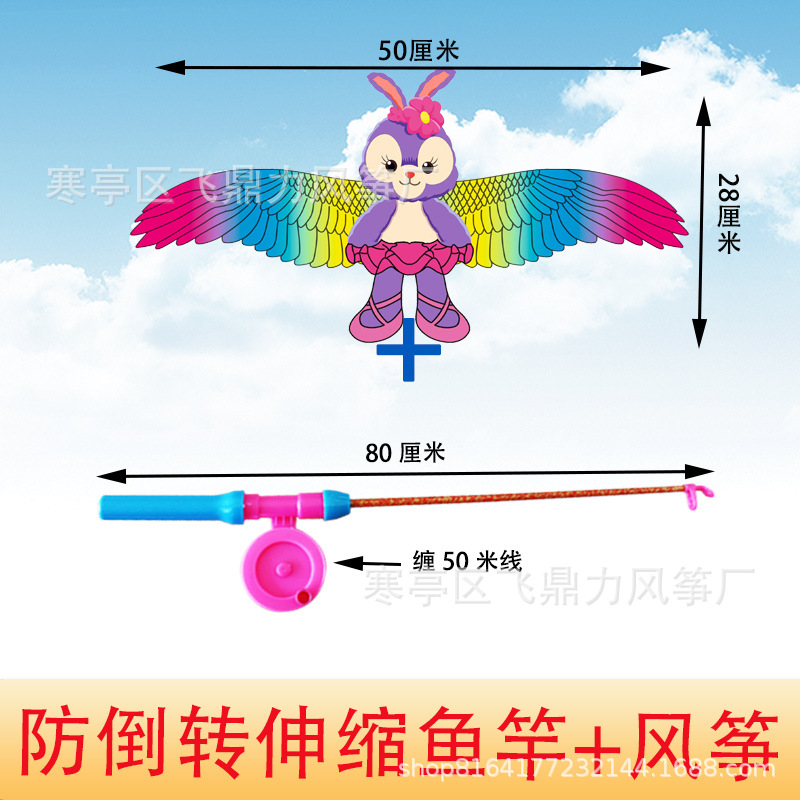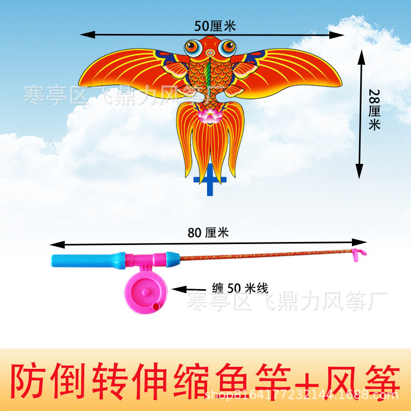 潍坊风筝批发 厂家新款儿童卡通大号动态鱼竿风筝适合公园摆摊