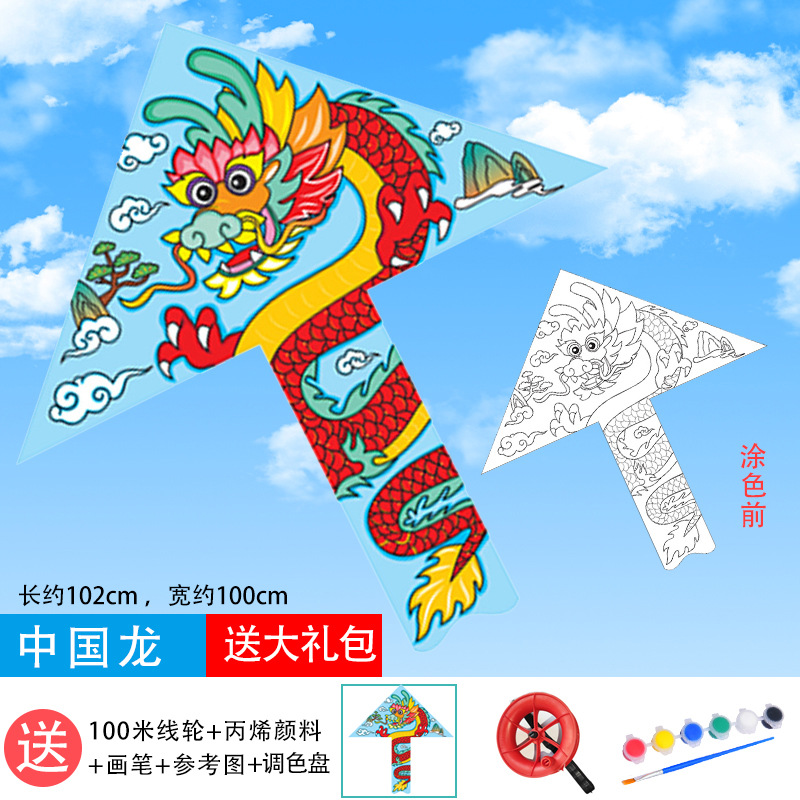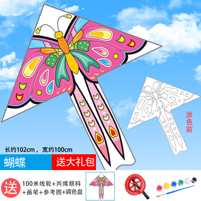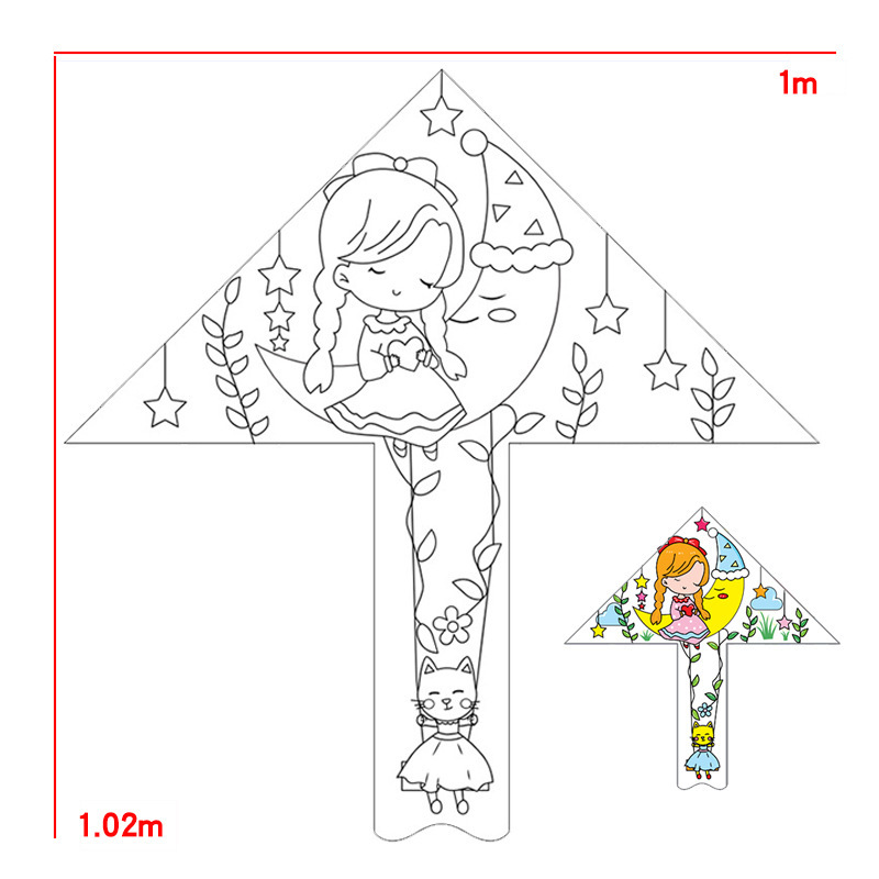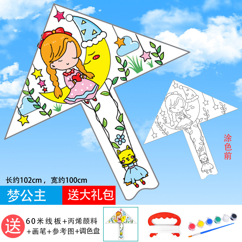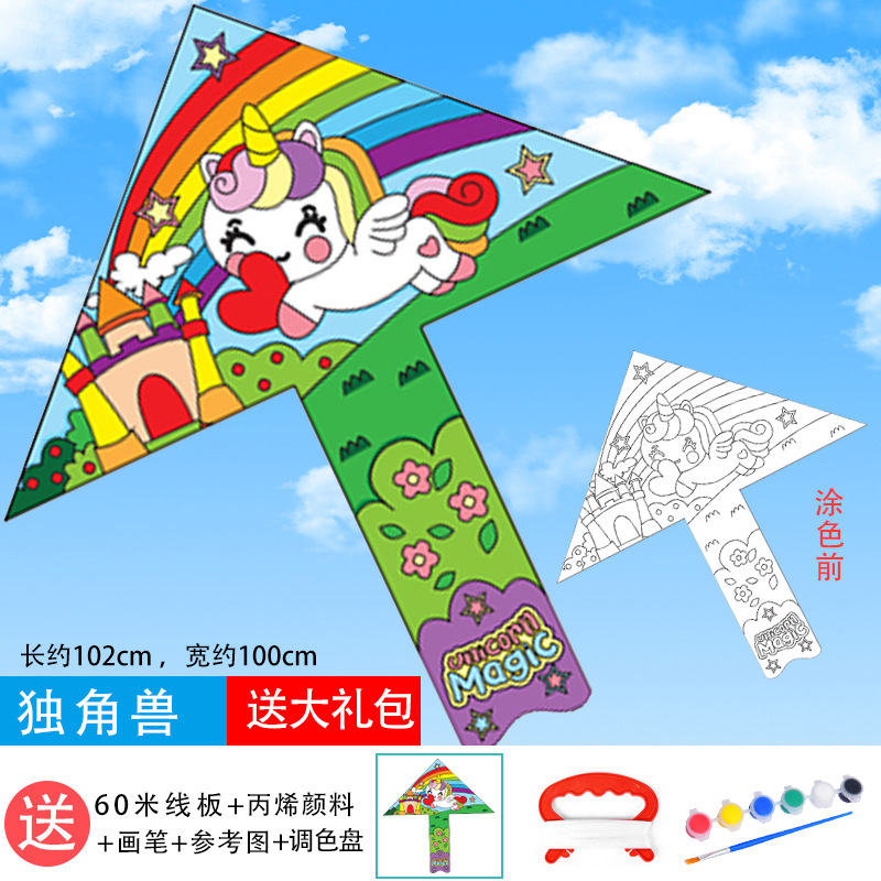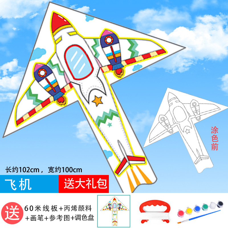 批发儿童空白风筝送diy材料包微风易飞手工制作涂色卡通大号摆摊