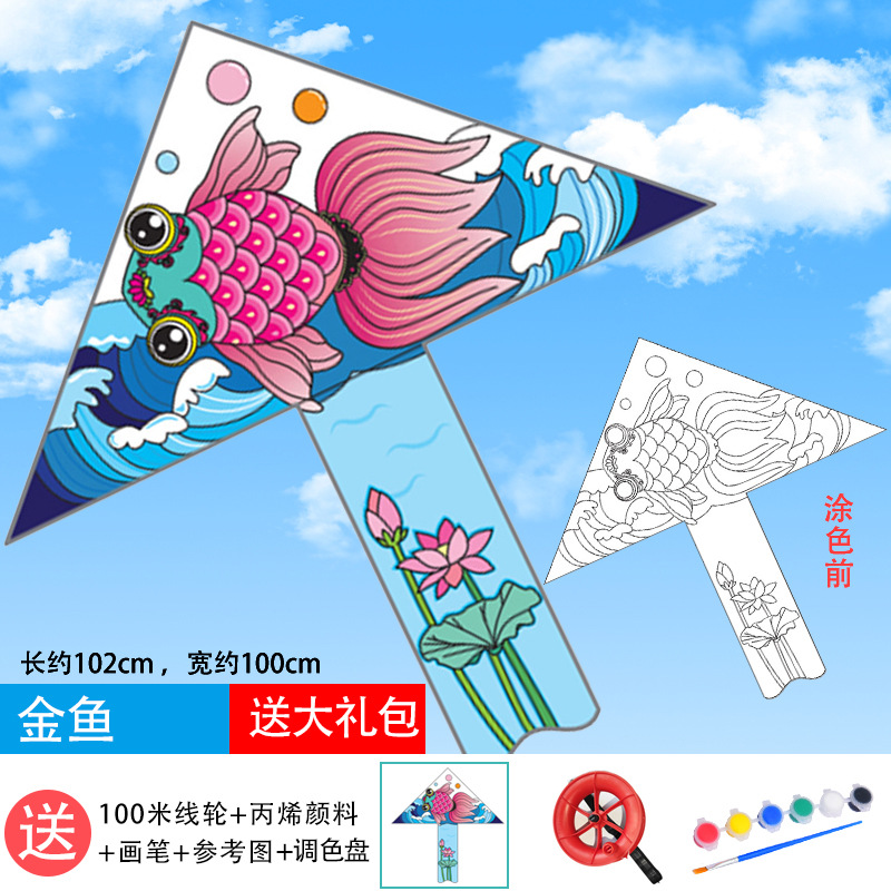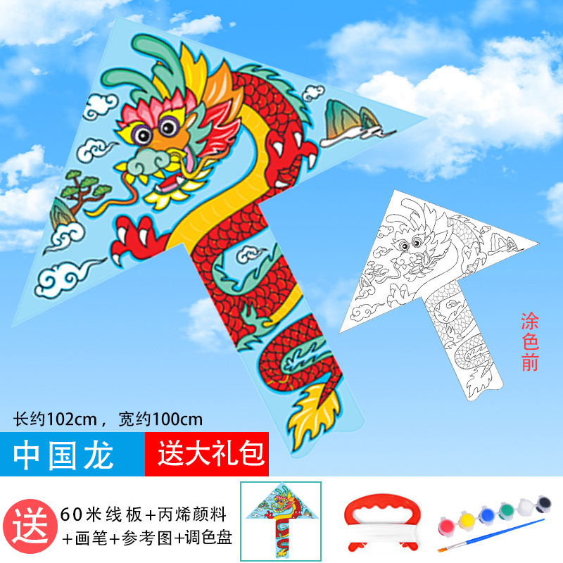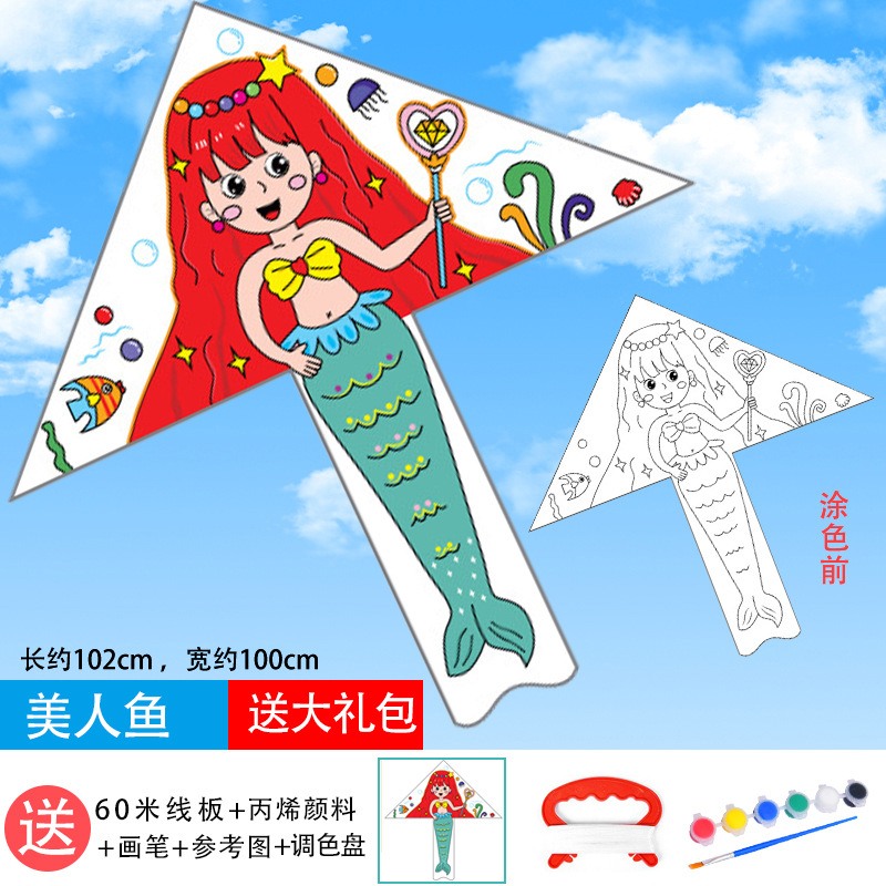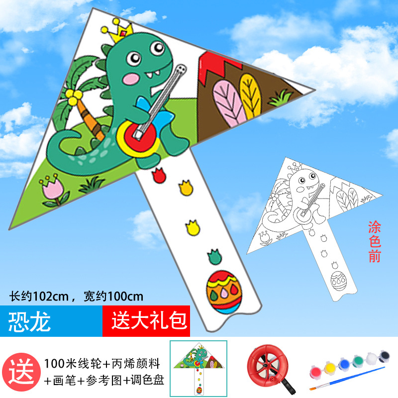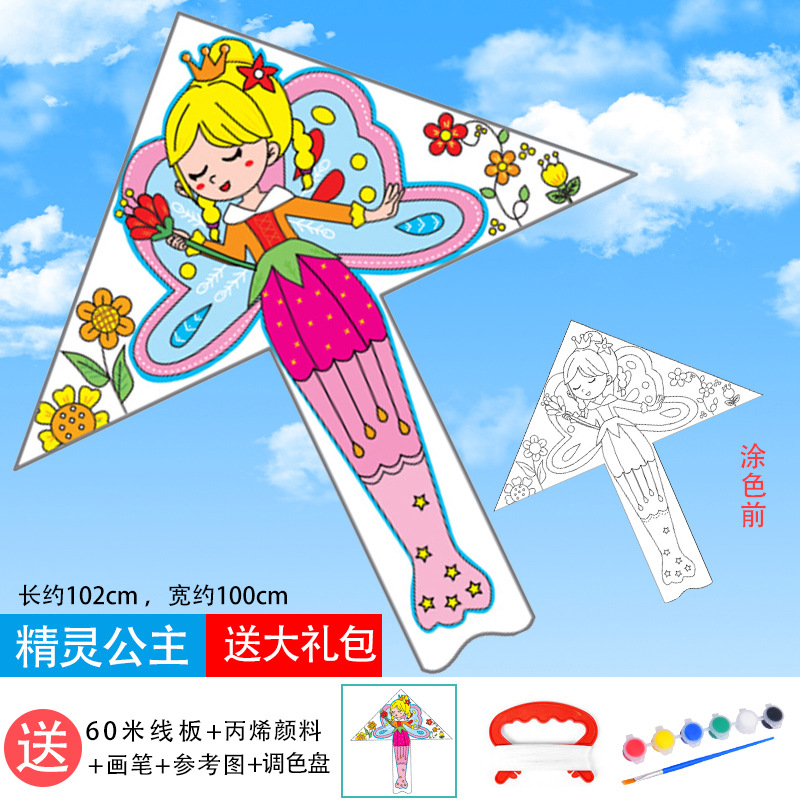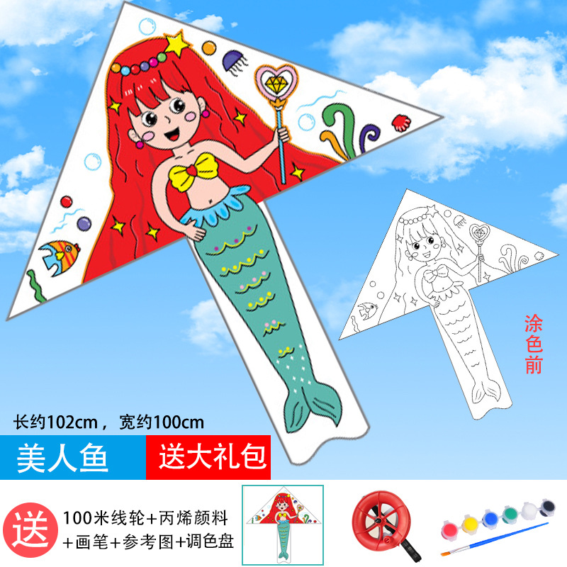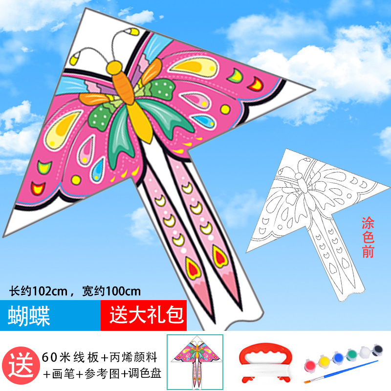 批发儿童空白风筝送diy材料包微风易飞手工制作涂色卡通大号摆摊