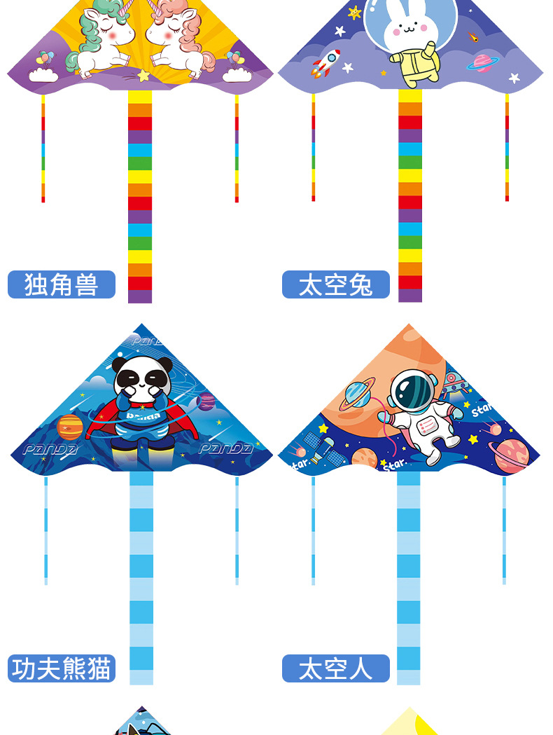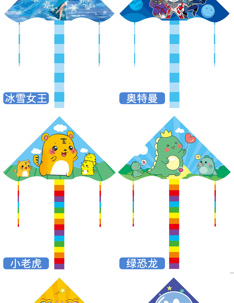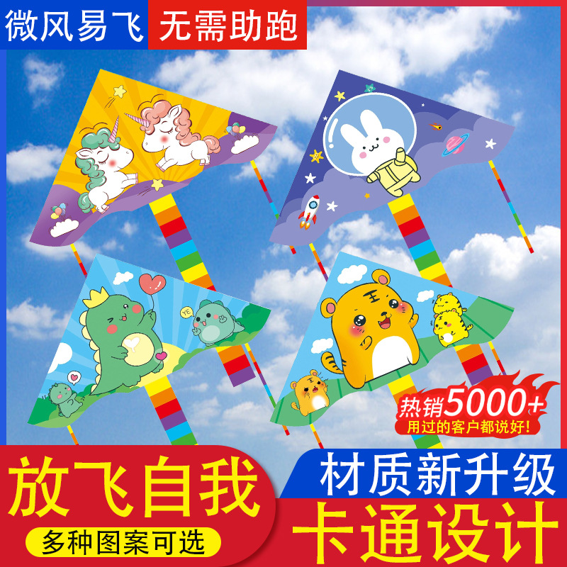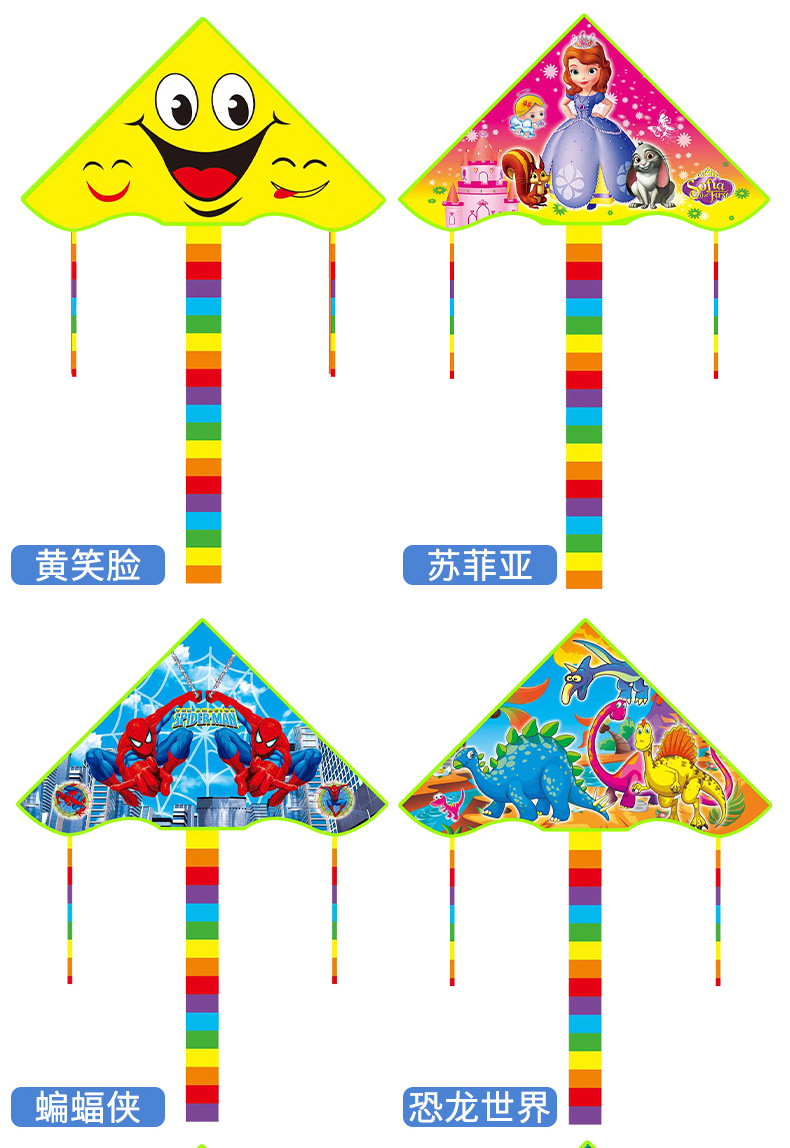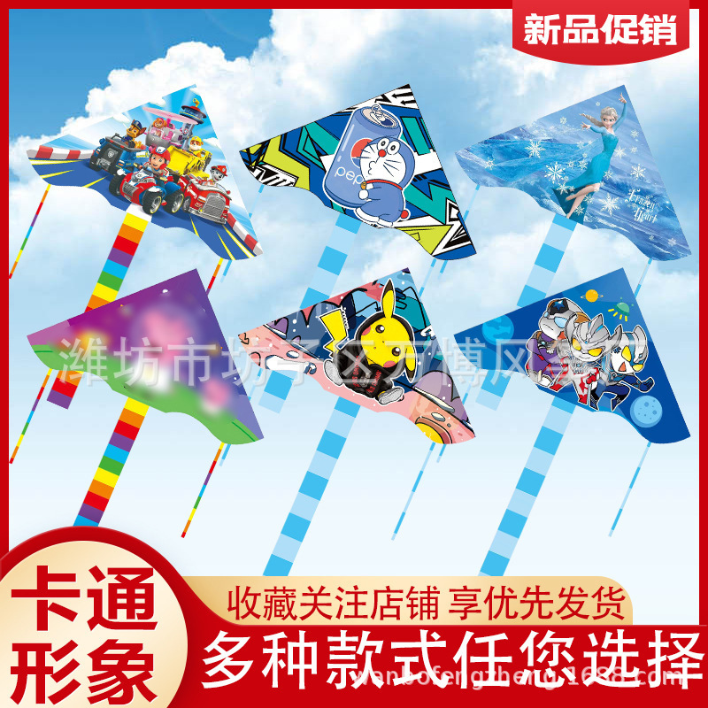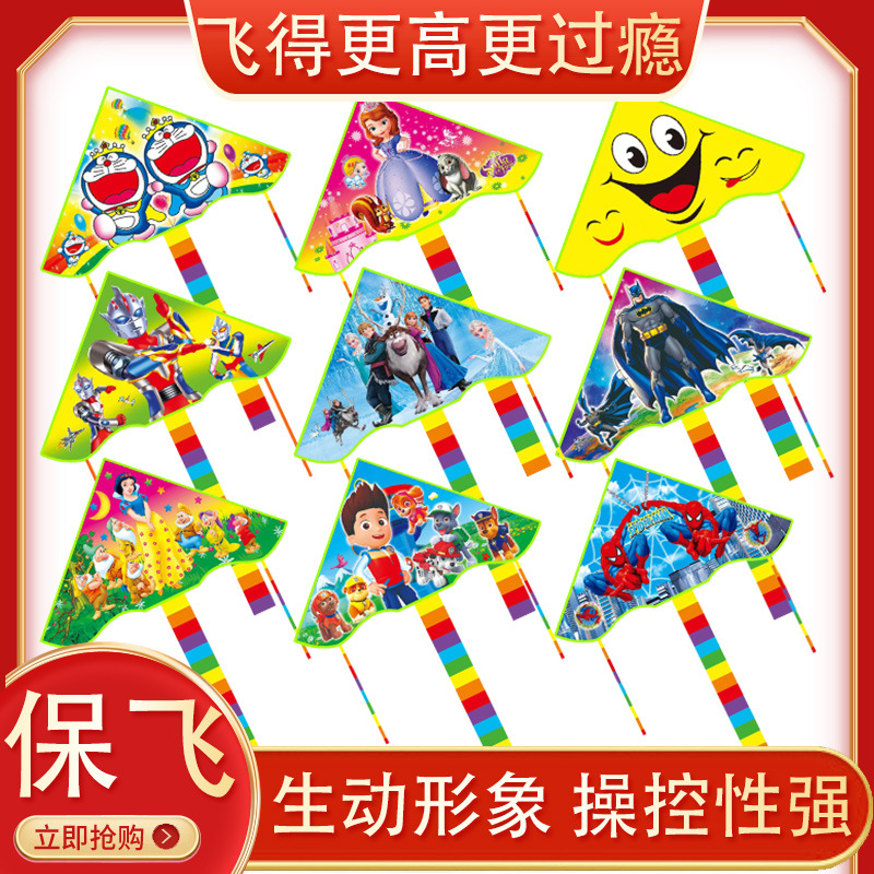 风筝批发新款地摊卡通风筝格子布热印弯边夜市地摊儿童初学者景区
