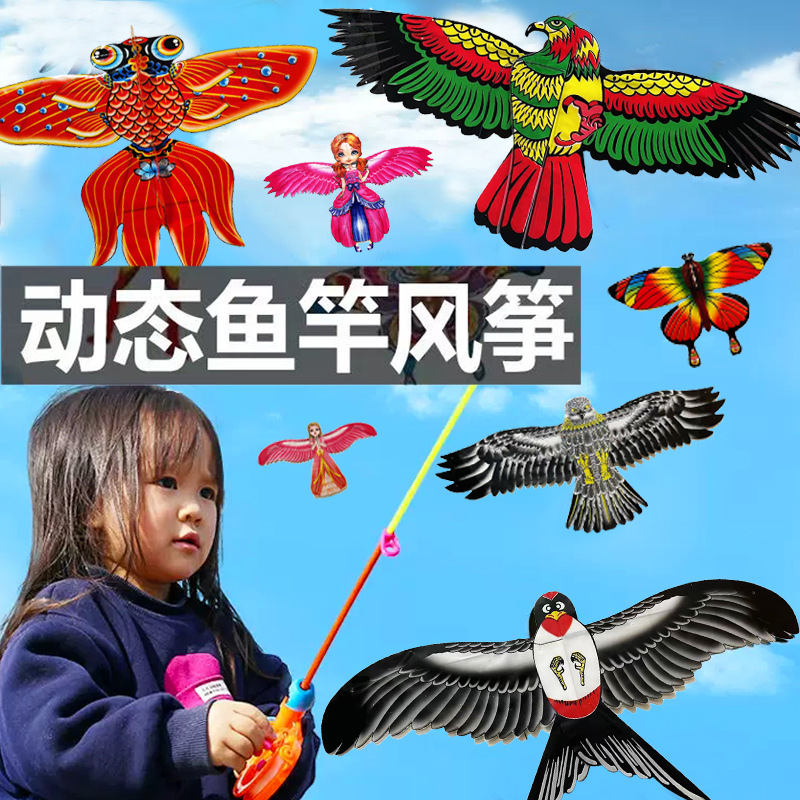 动态风筝批发 儿童户外鱼竿风筝手持钓鱼小风筝抖动公园地摊批发
