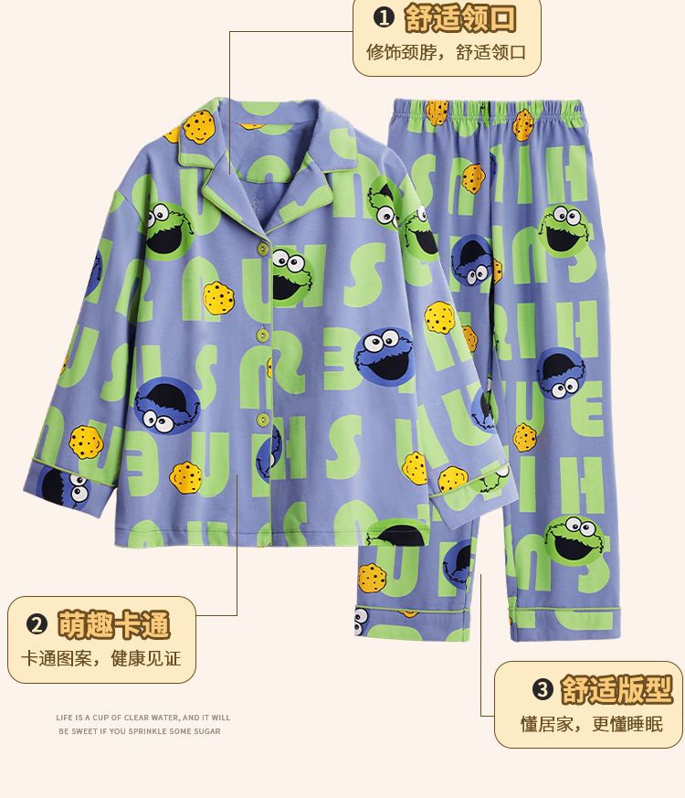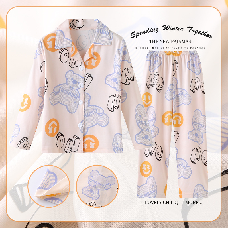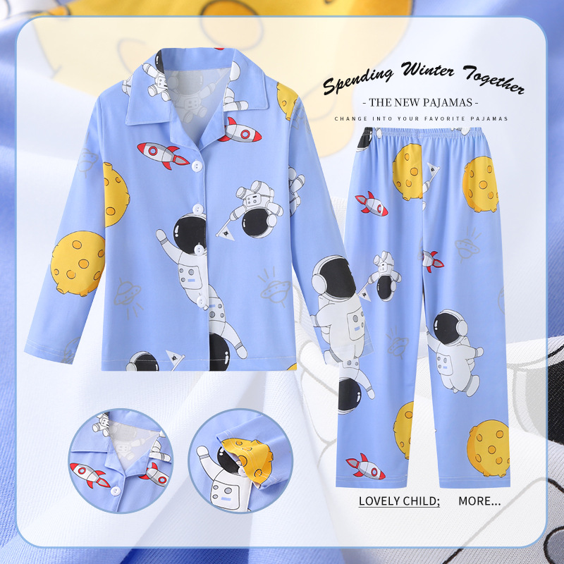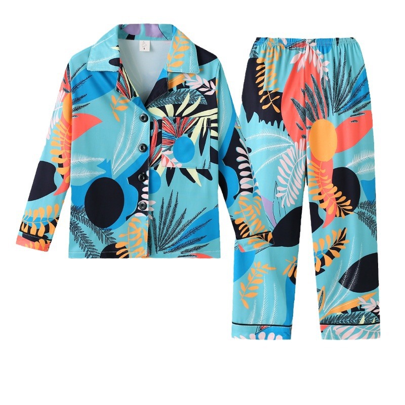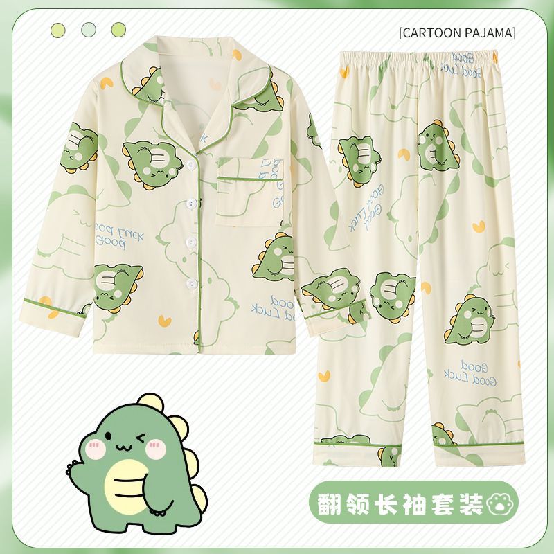 春秋新款儿童家居服长袖开衫睡衣套中小大童满印花韩版翻领家居服