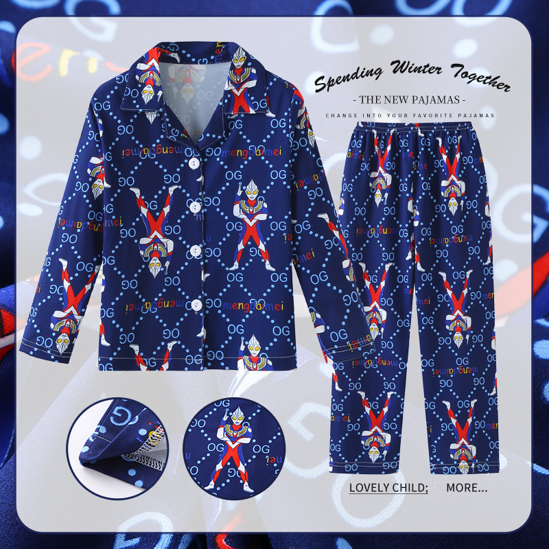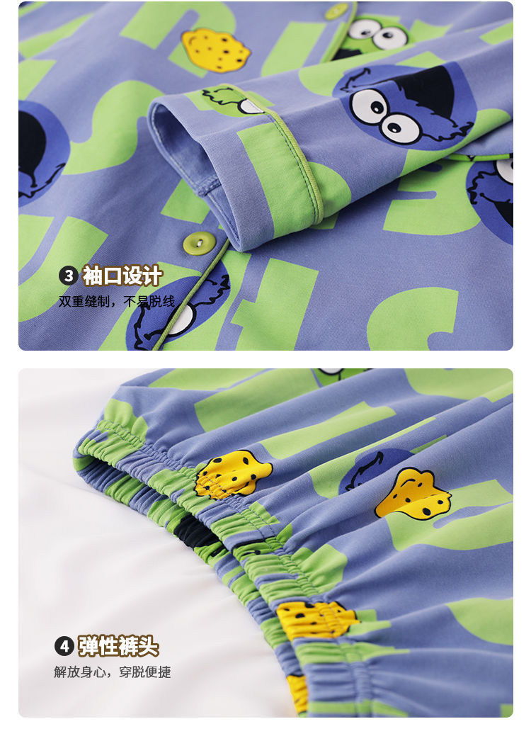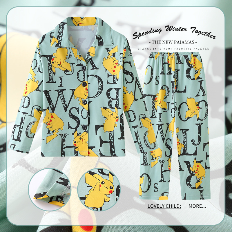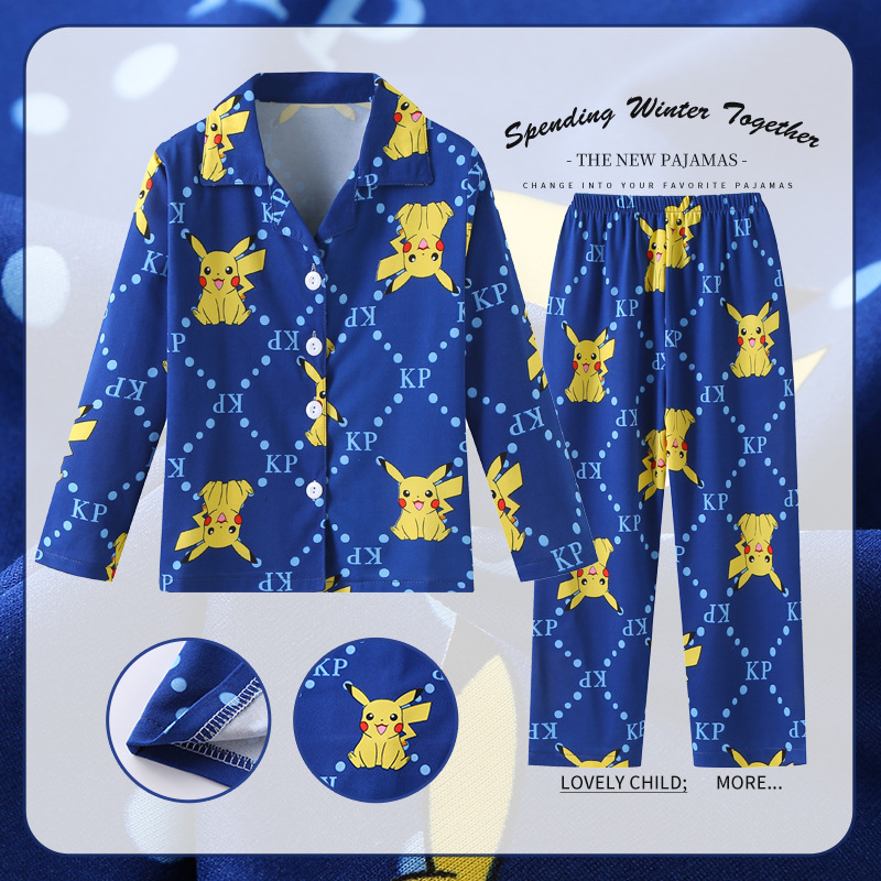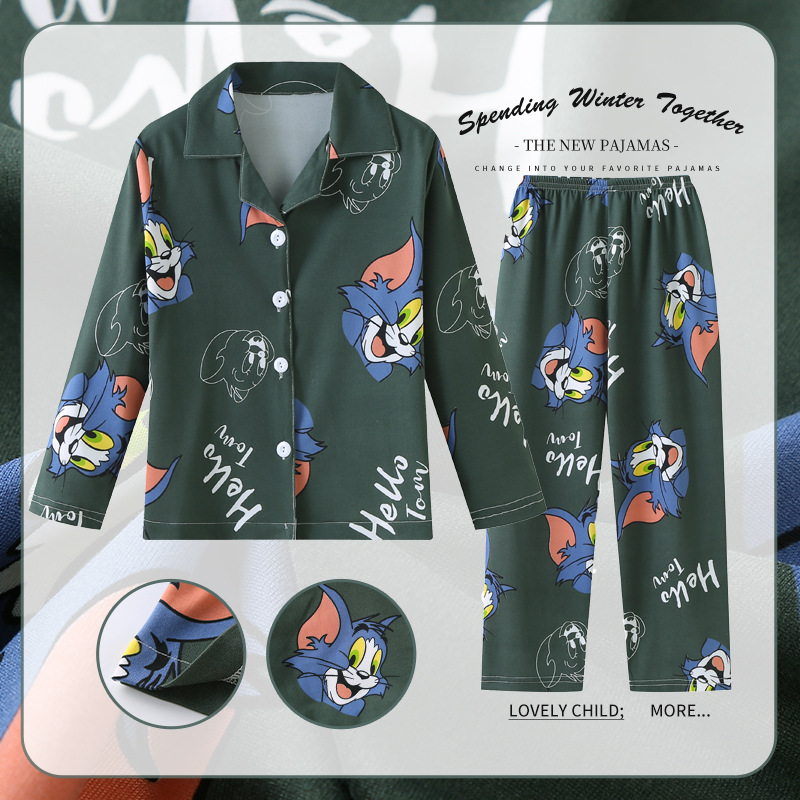 春秋新款儿童家居服长袖开衫睡衣套中小大童满印花韩版翻领家居服