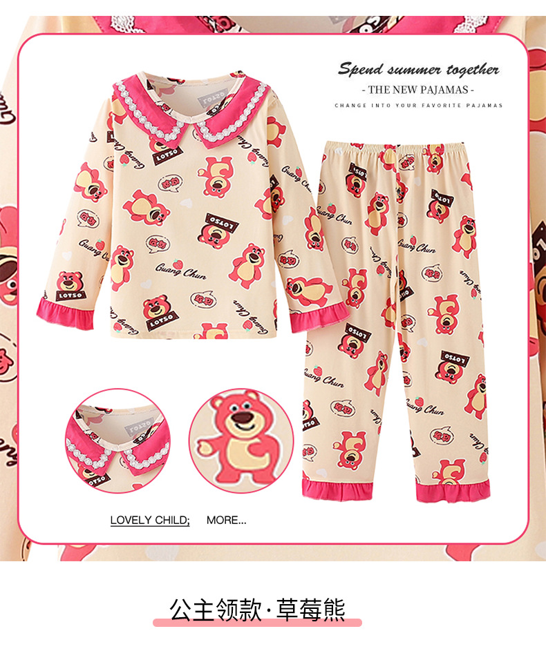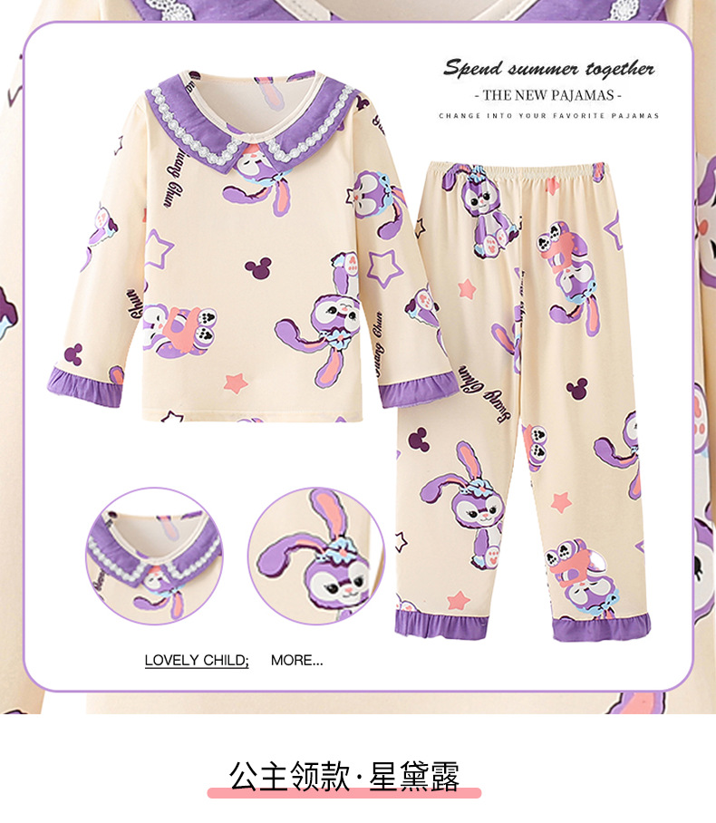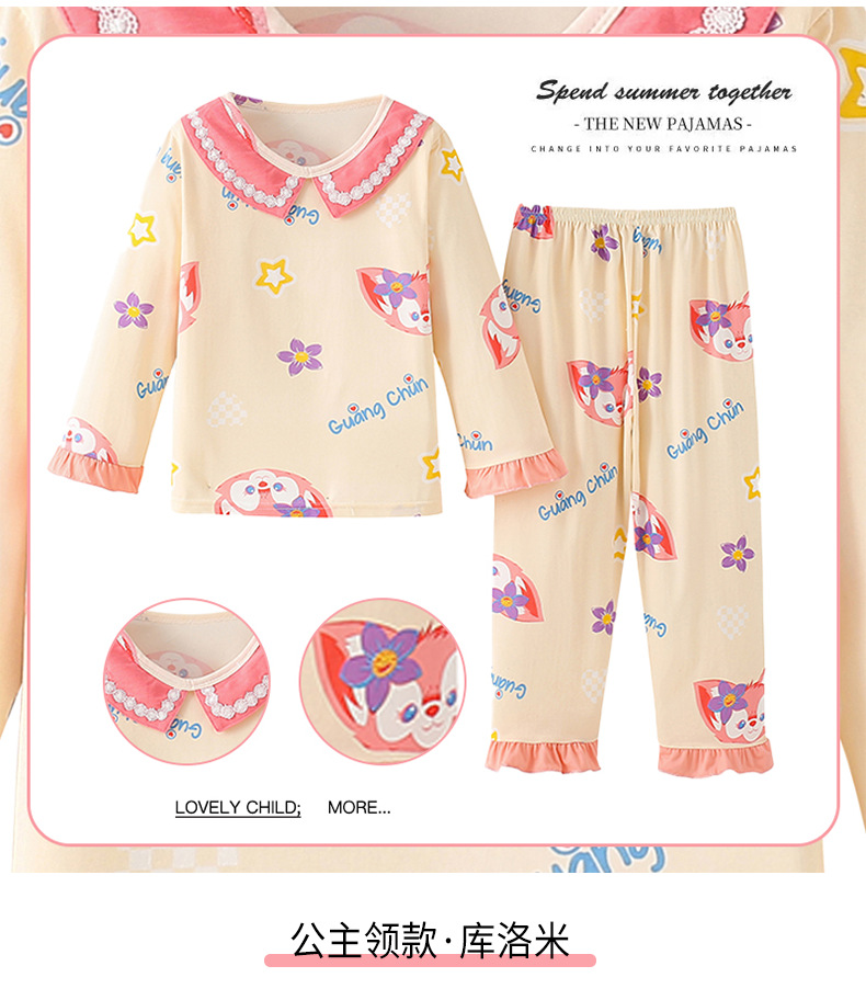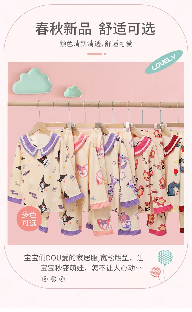 2024新款春季女童家居服套装甜美女孩长袖睡衣宝宝空调服男女童装