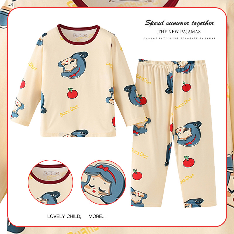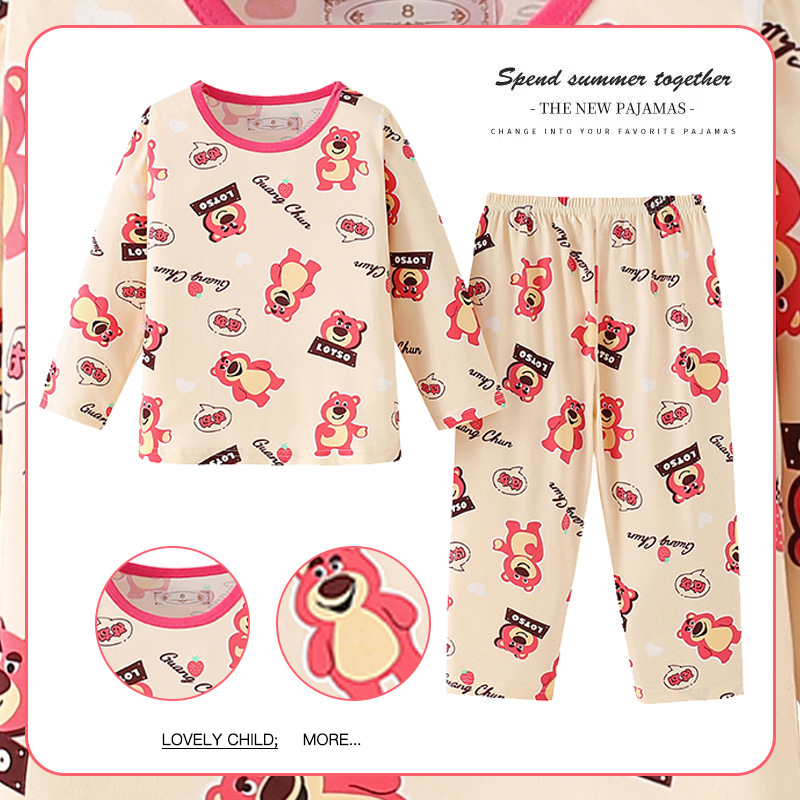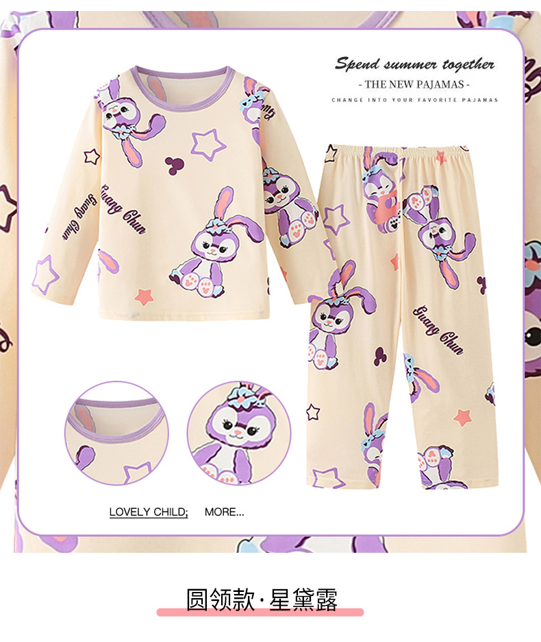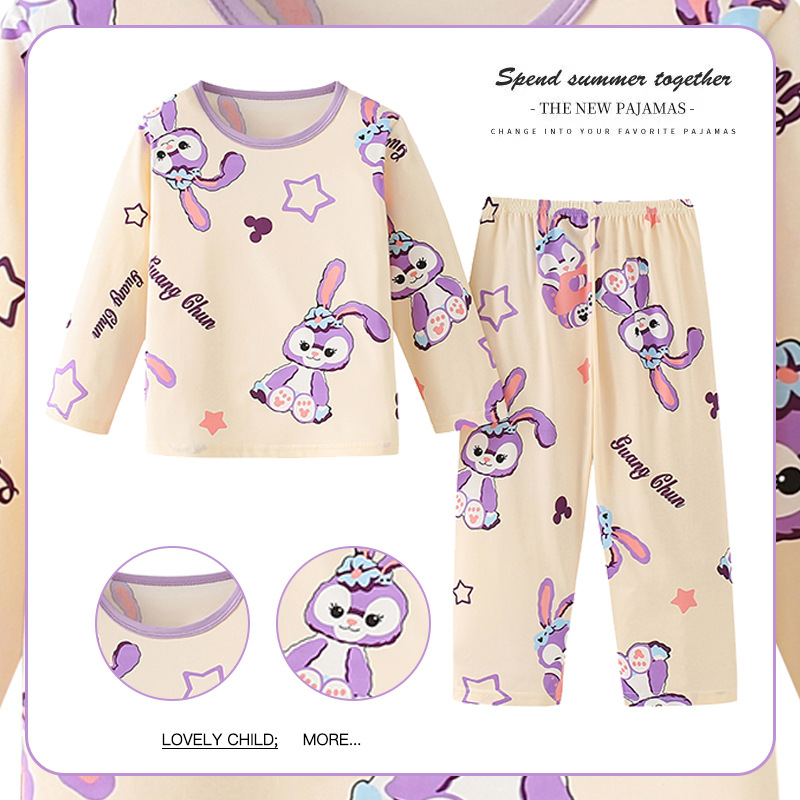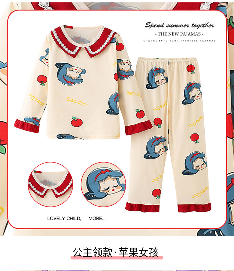 2024新款春季女童家居服套装甜美女孩长袖睡衣宝宝空调服男女童装