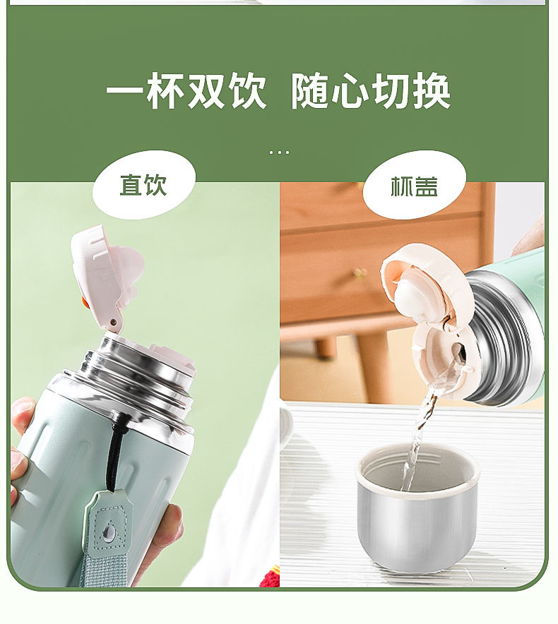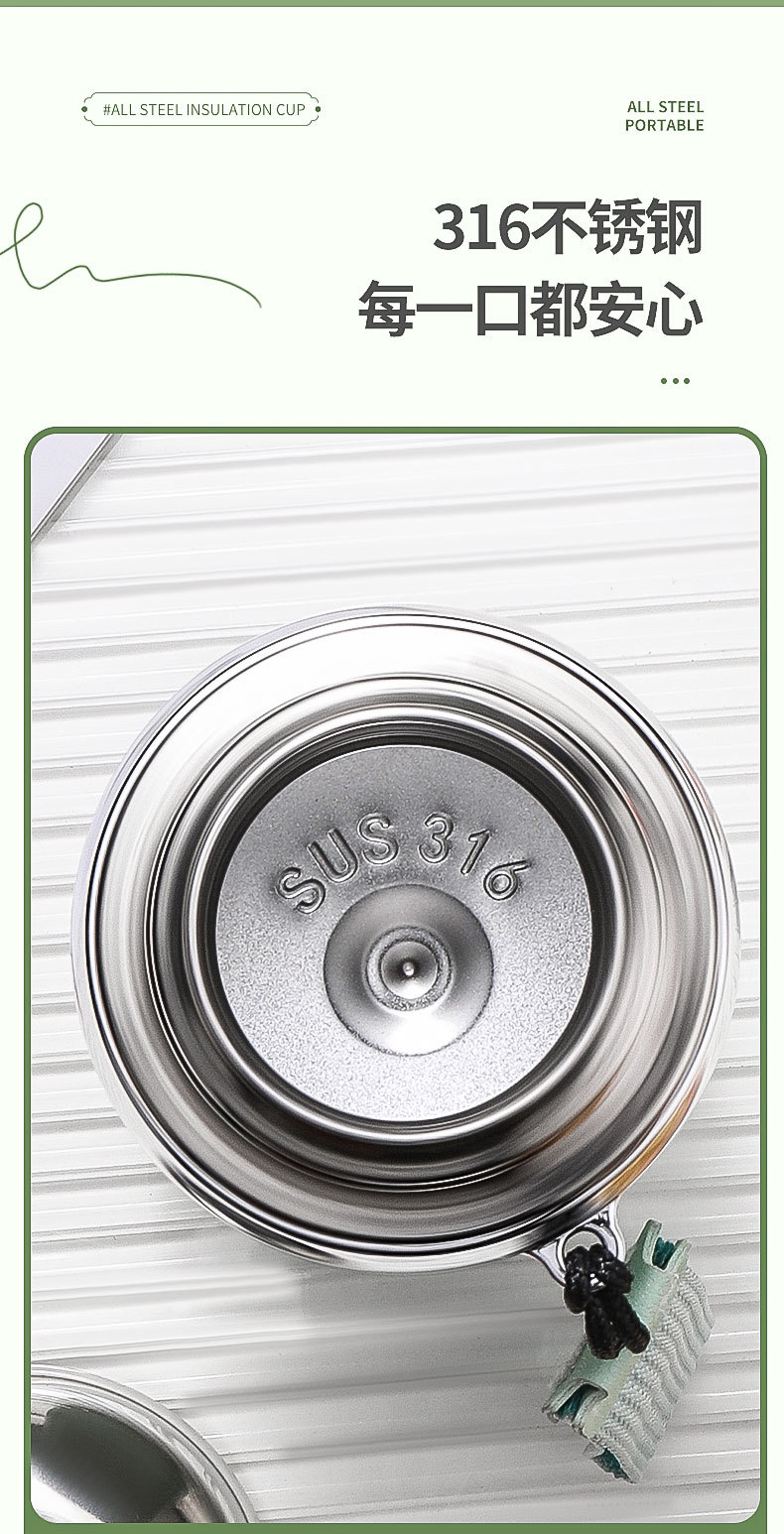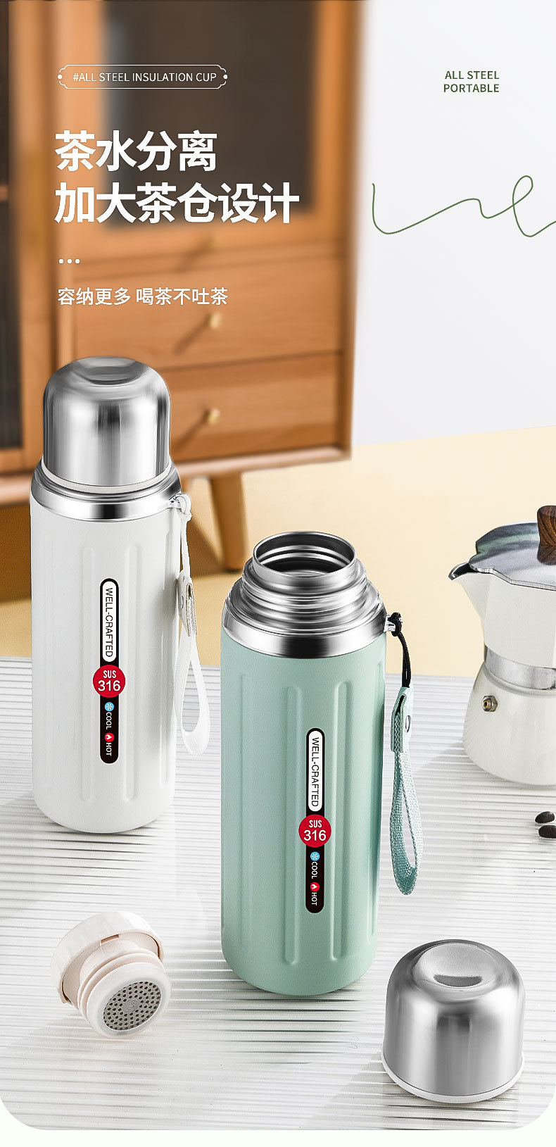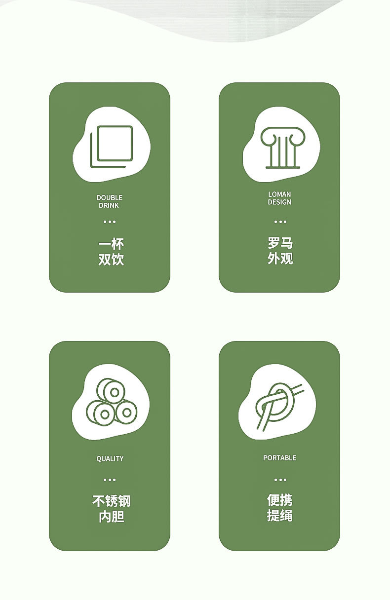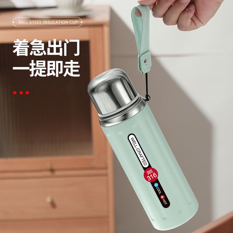 不锈钢提绳罗马杯大容量便携泡茶杯双层真空保温杯水杯
