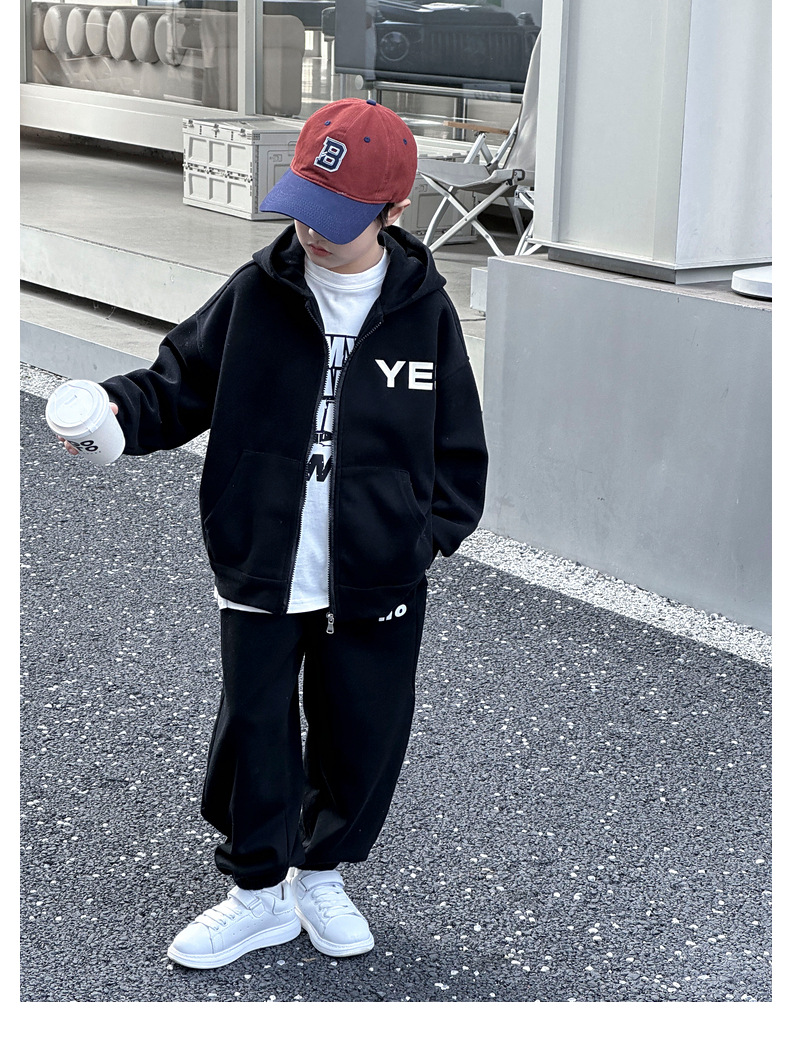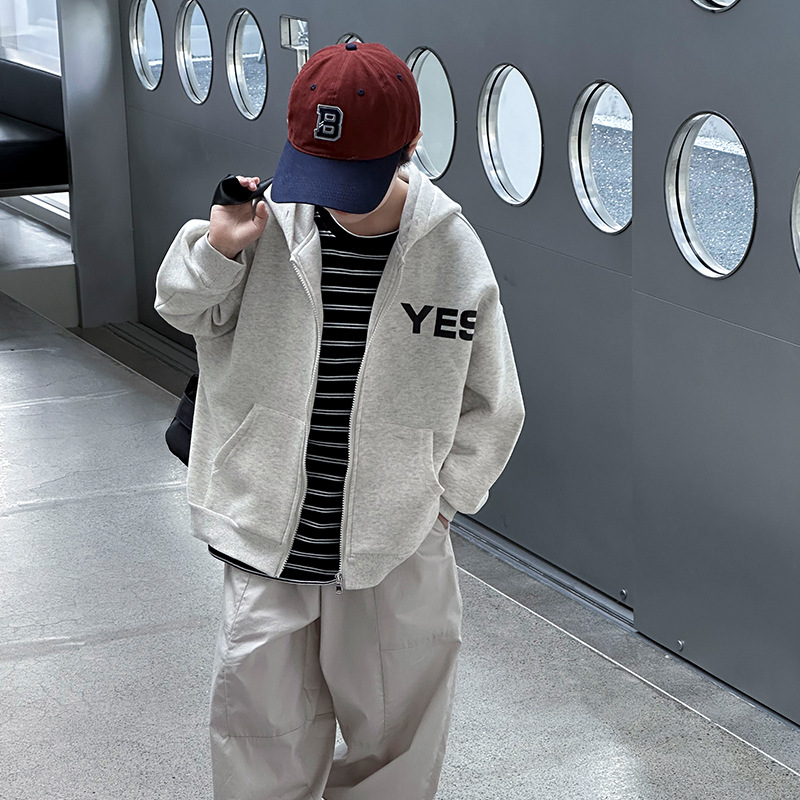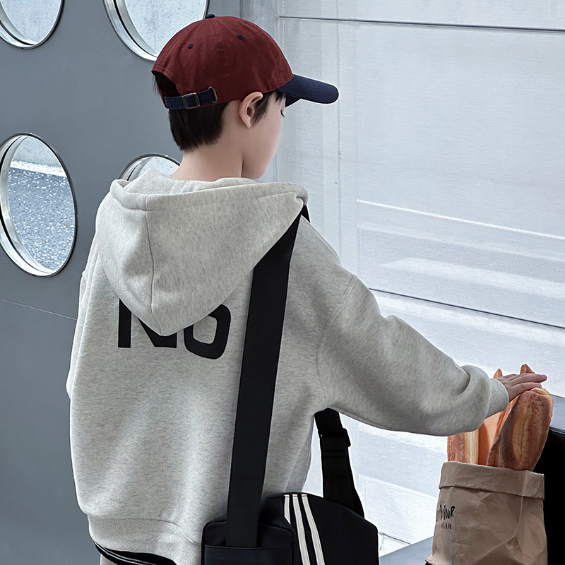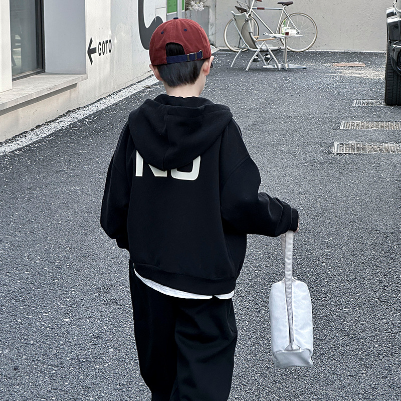 春季男童外套新款春秋装童装儿童大男孩休闲连帽外套字母简约跨境