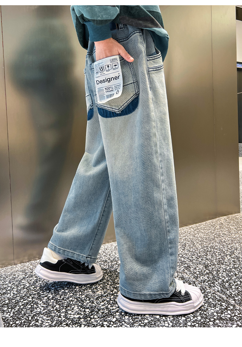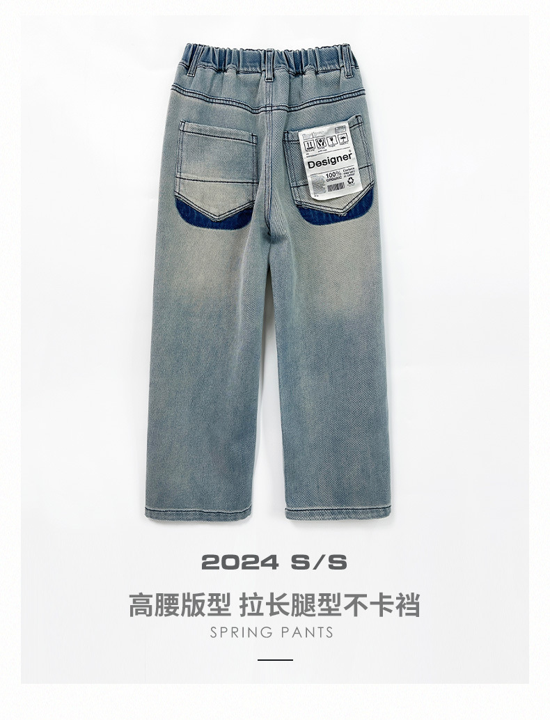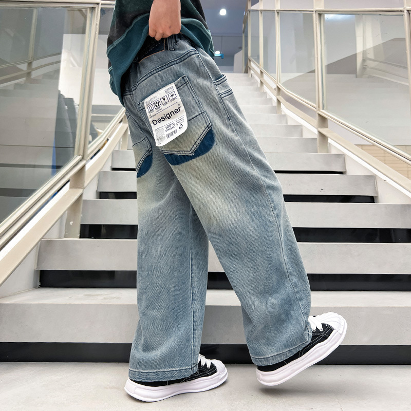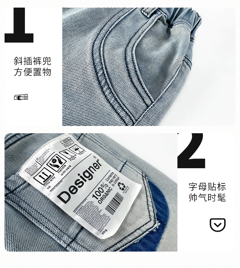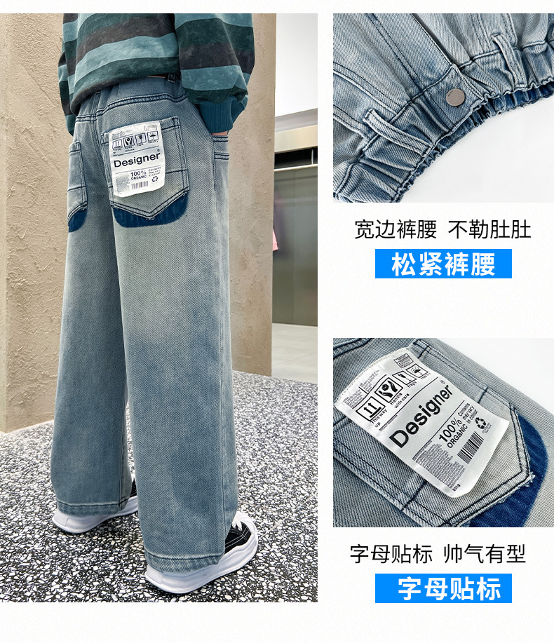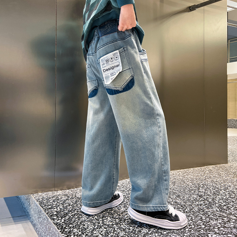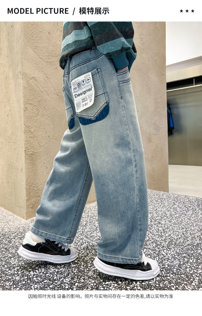 春季中大男童牛仔裤新童装儿童男孩浅色裤子宽松休闲个性童裤跨境