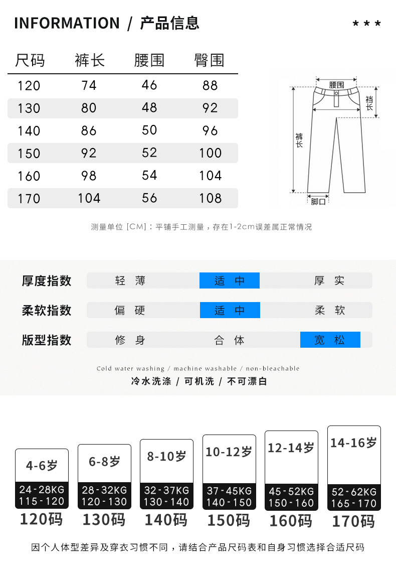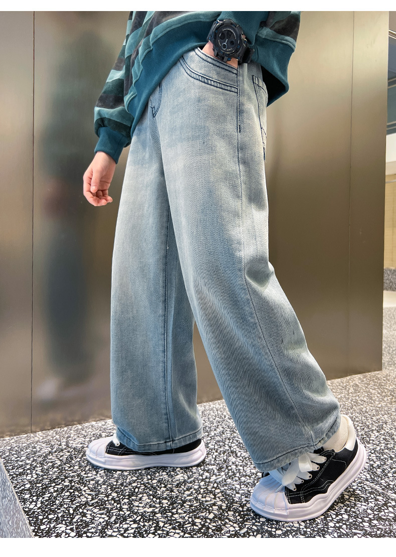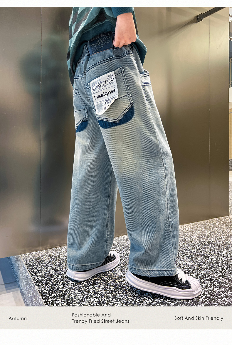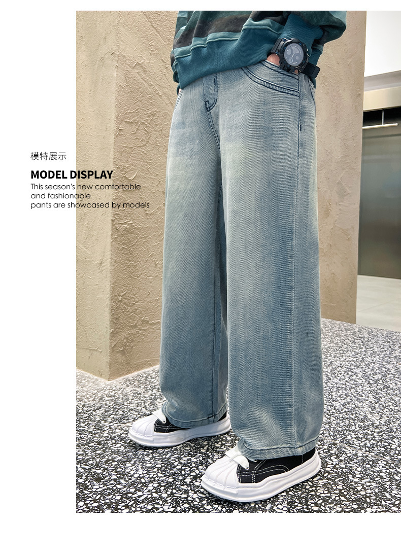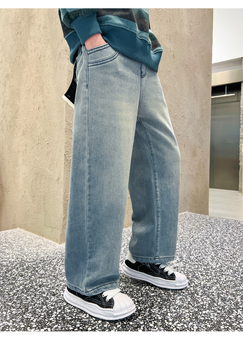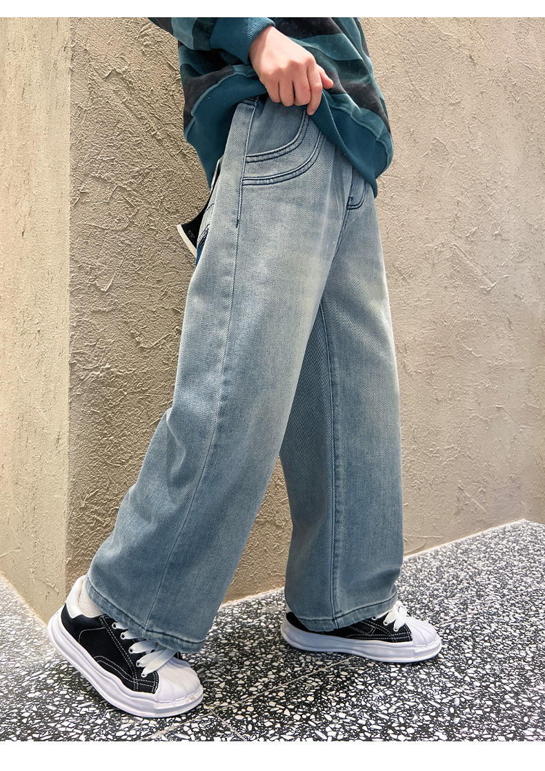春季中大男童牛仔裤新童装儿童男孩浅色裤子宽松休闲个性童裤跨境