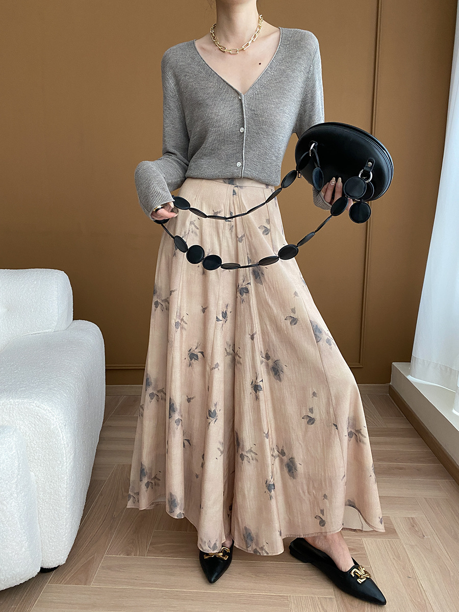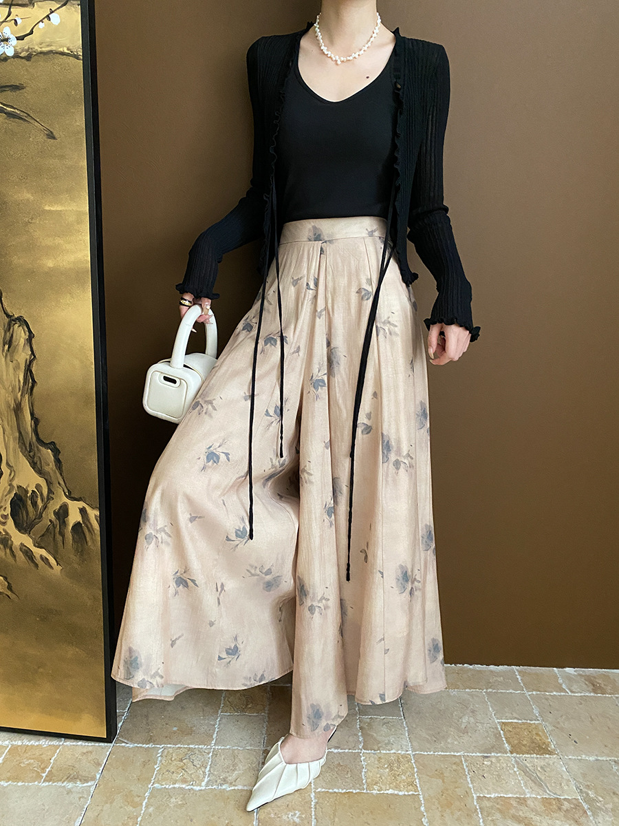 司南 新中式国风禅意 水墨画碎花垂感阔腿裙裤2024早春新款SN5081