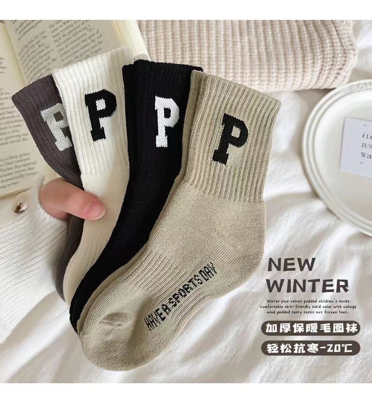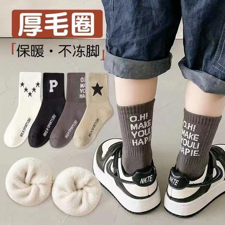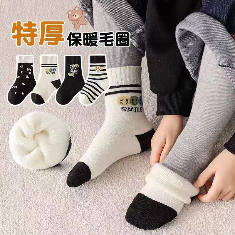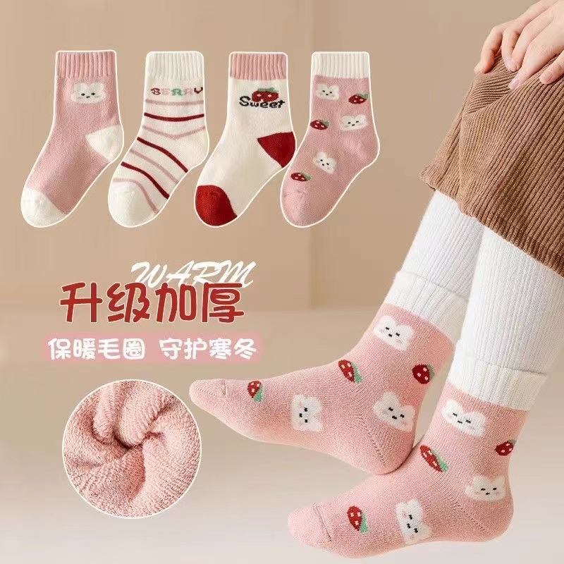 儿童袜子批发冬季加厚保暖毛圈袜卡通中筒童袜中大童加绒毛巾棉袜