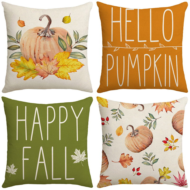 2025新款感恩节丰收抱枕秋季南瓜橙色印花农场装饰沙发抱枕套批发
