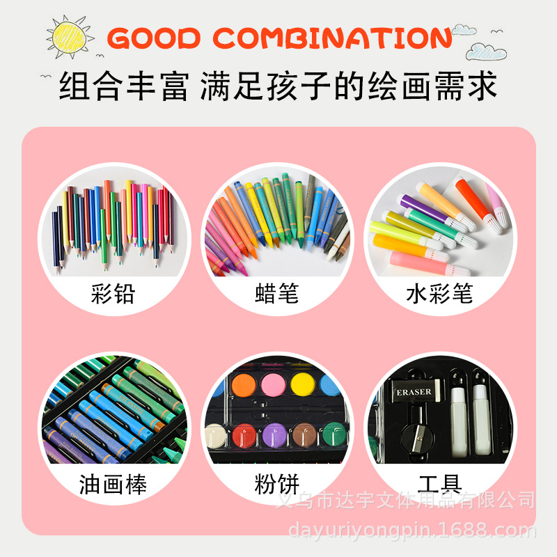 168画笔套装小学生礼盒水彩笔儿童美术绘画画工具彩笔套装批发