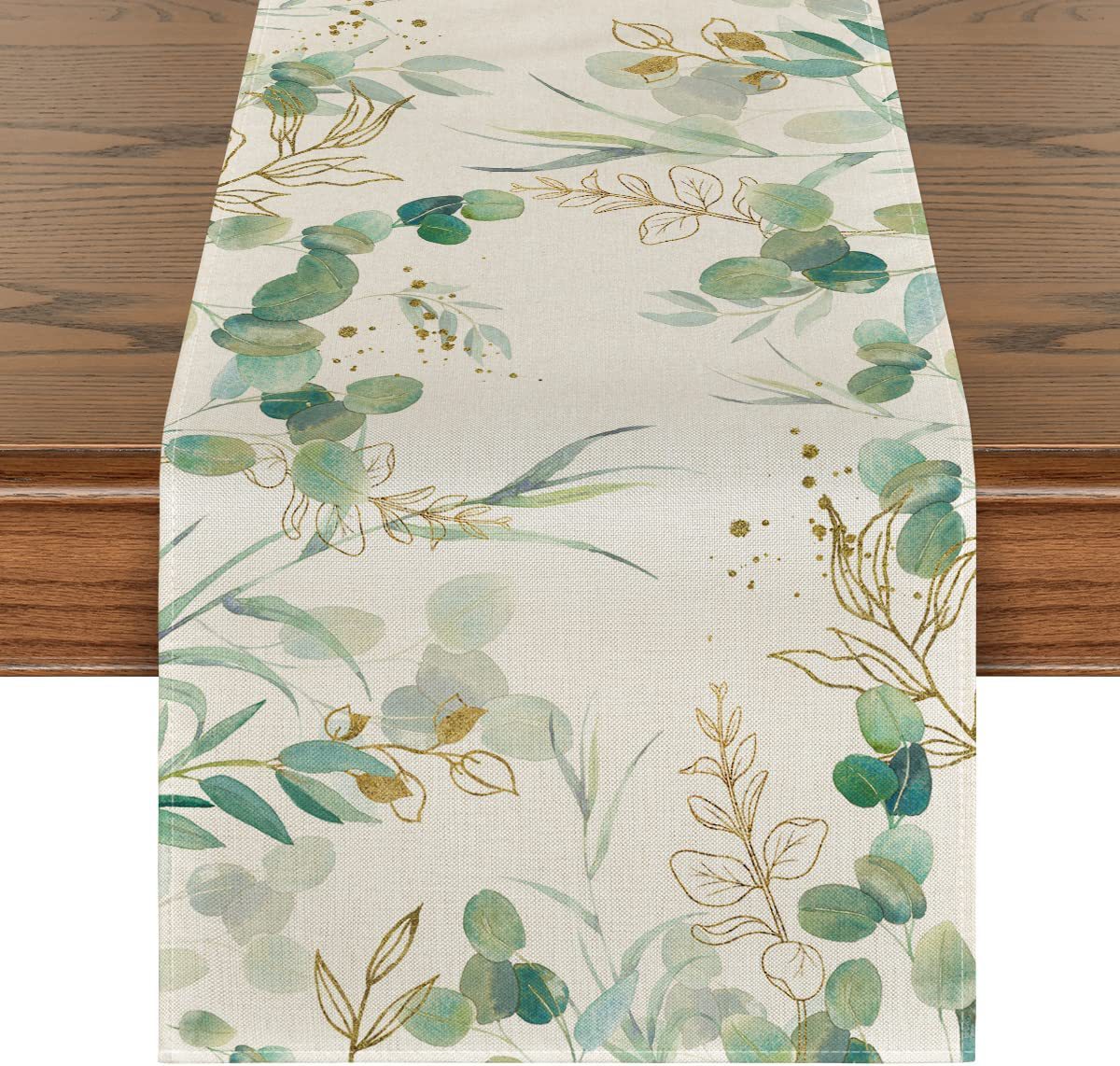 植物绿叶春天氛围亚麻桌旗餐桌茶几壁炉柜子适用spring桌巾批发