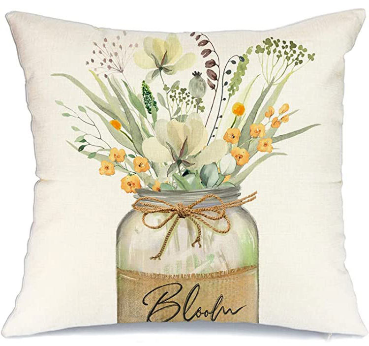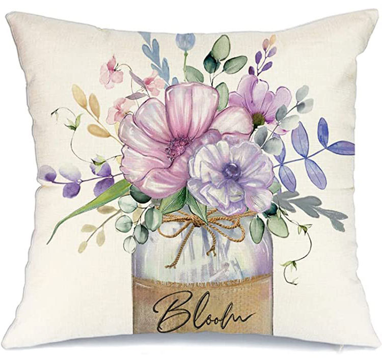 春天植物花朵家居ins风装扮沙发腰靠落地飘窗亚麻抱枕午睡靠枕
