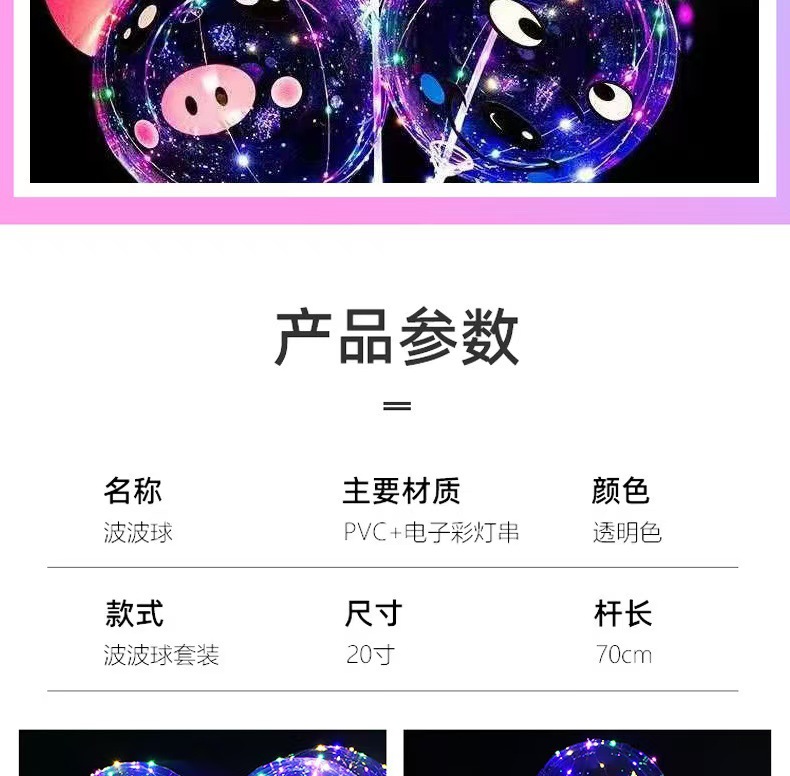 新款爆闪网红透明卡通波波球地推夜市摆摊卡通动物发光波波球中球