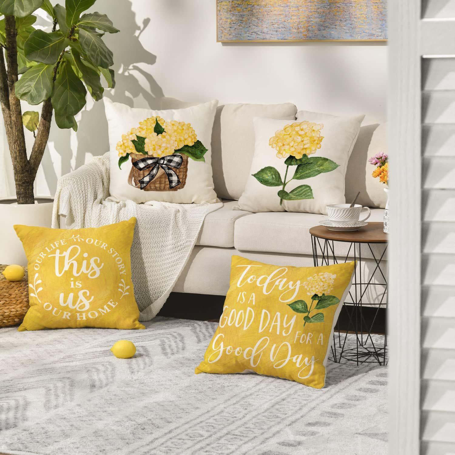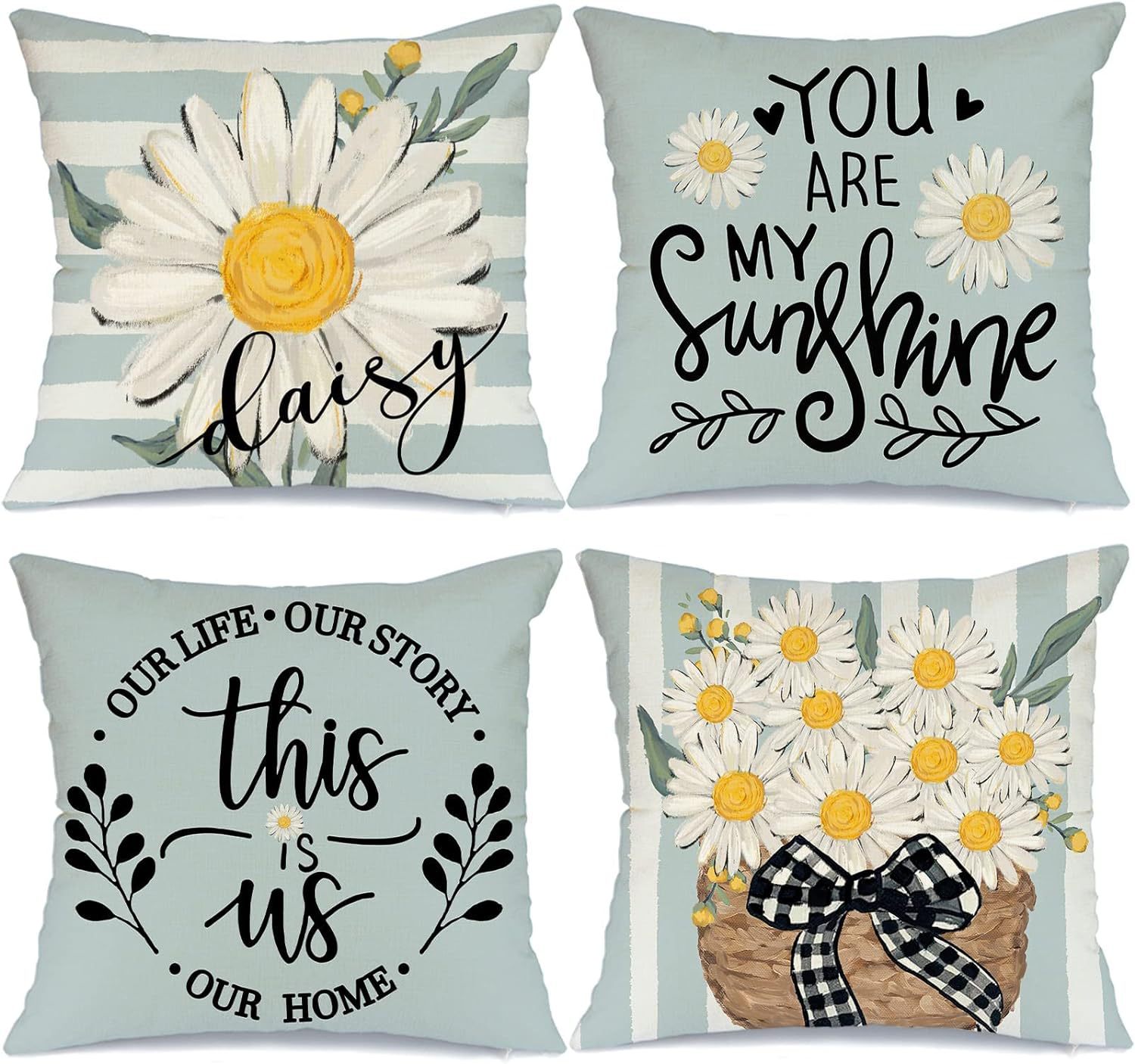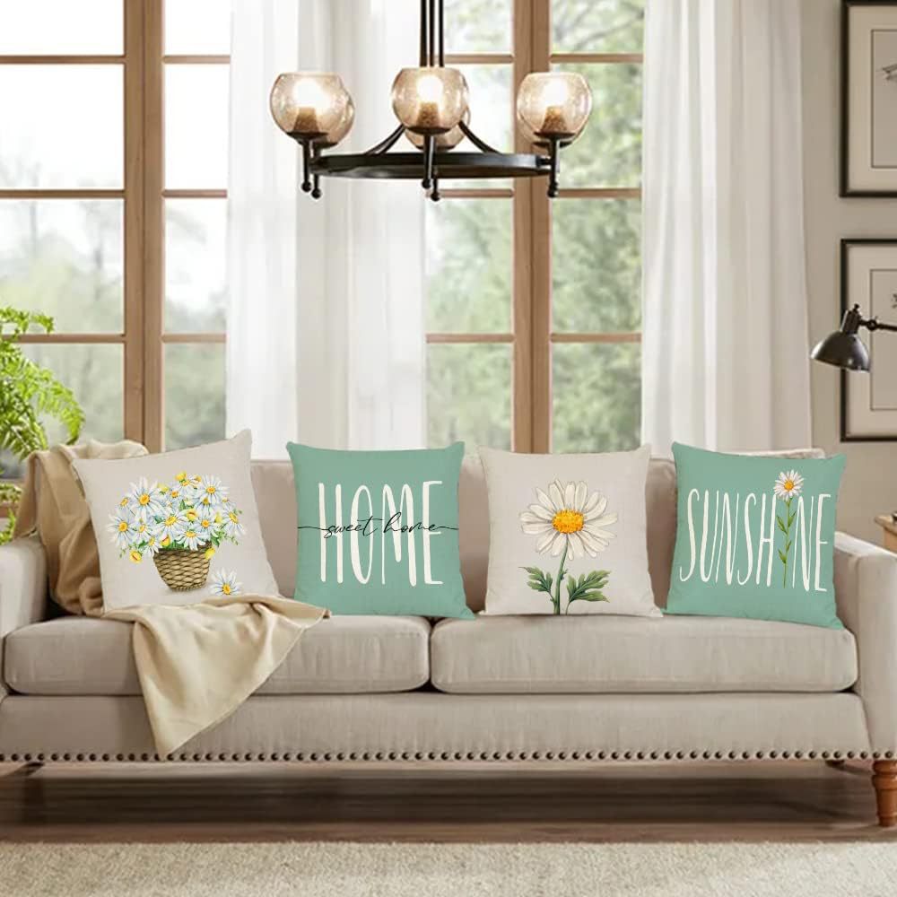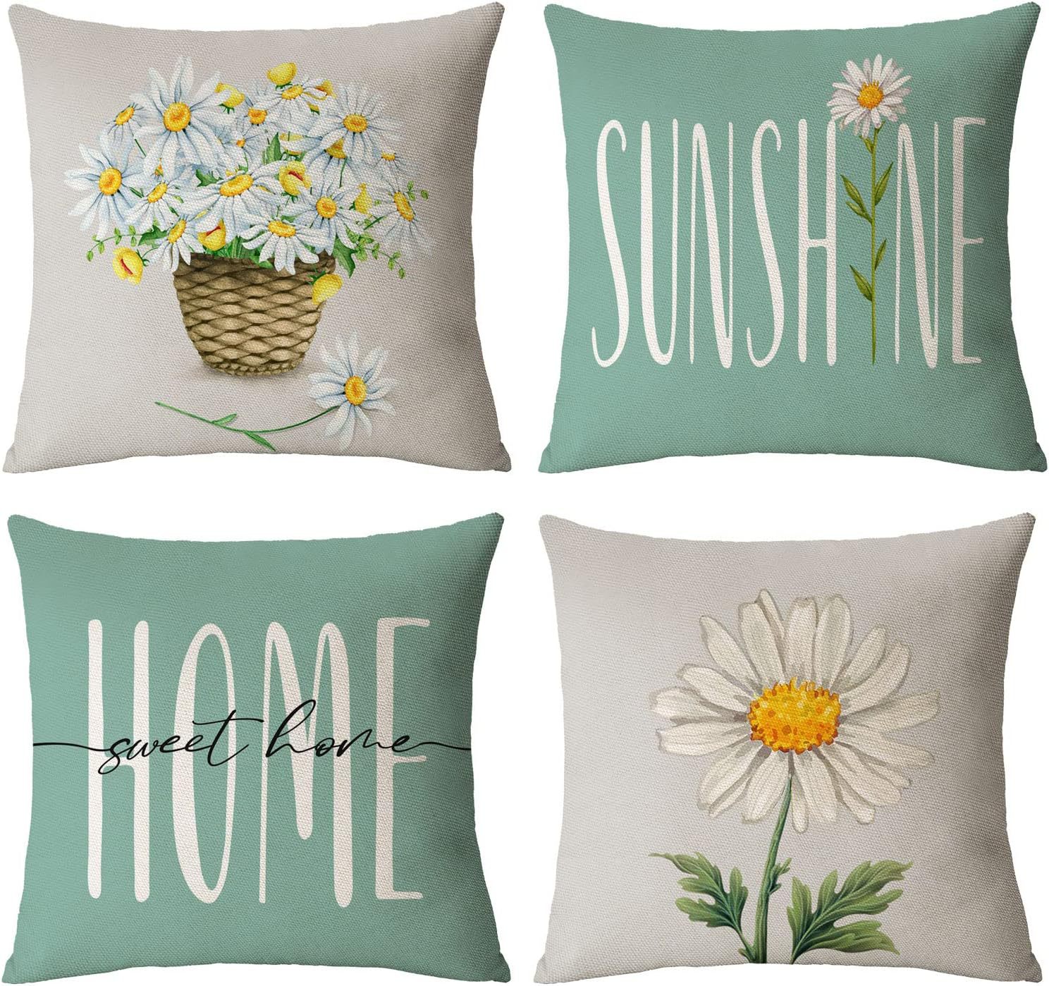 夏季花朵亚麻抱枕套客厅沙发椅子靠枕套夏天氛围家居装饰飘窗靠垫