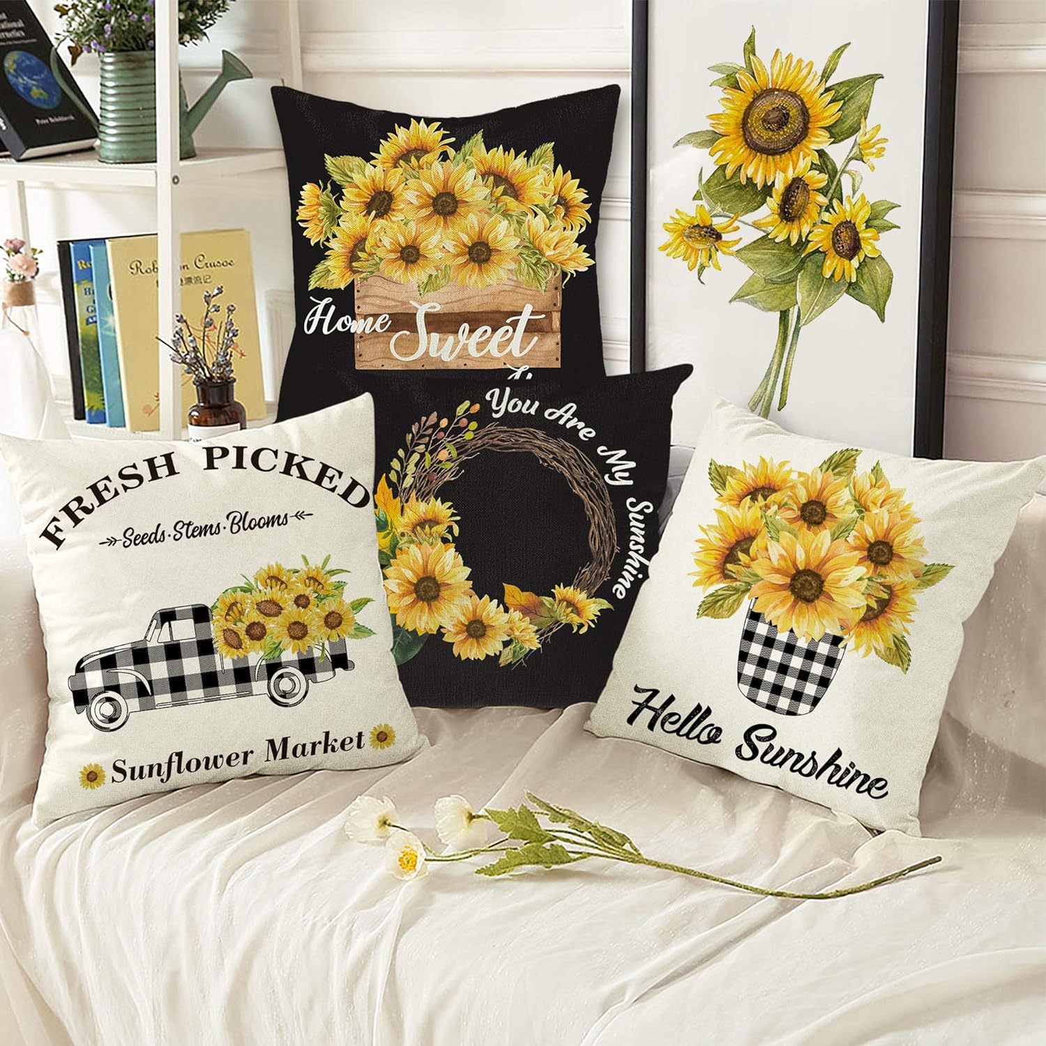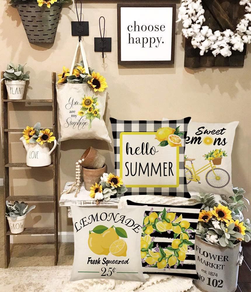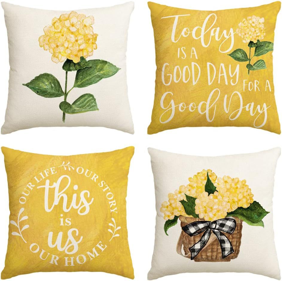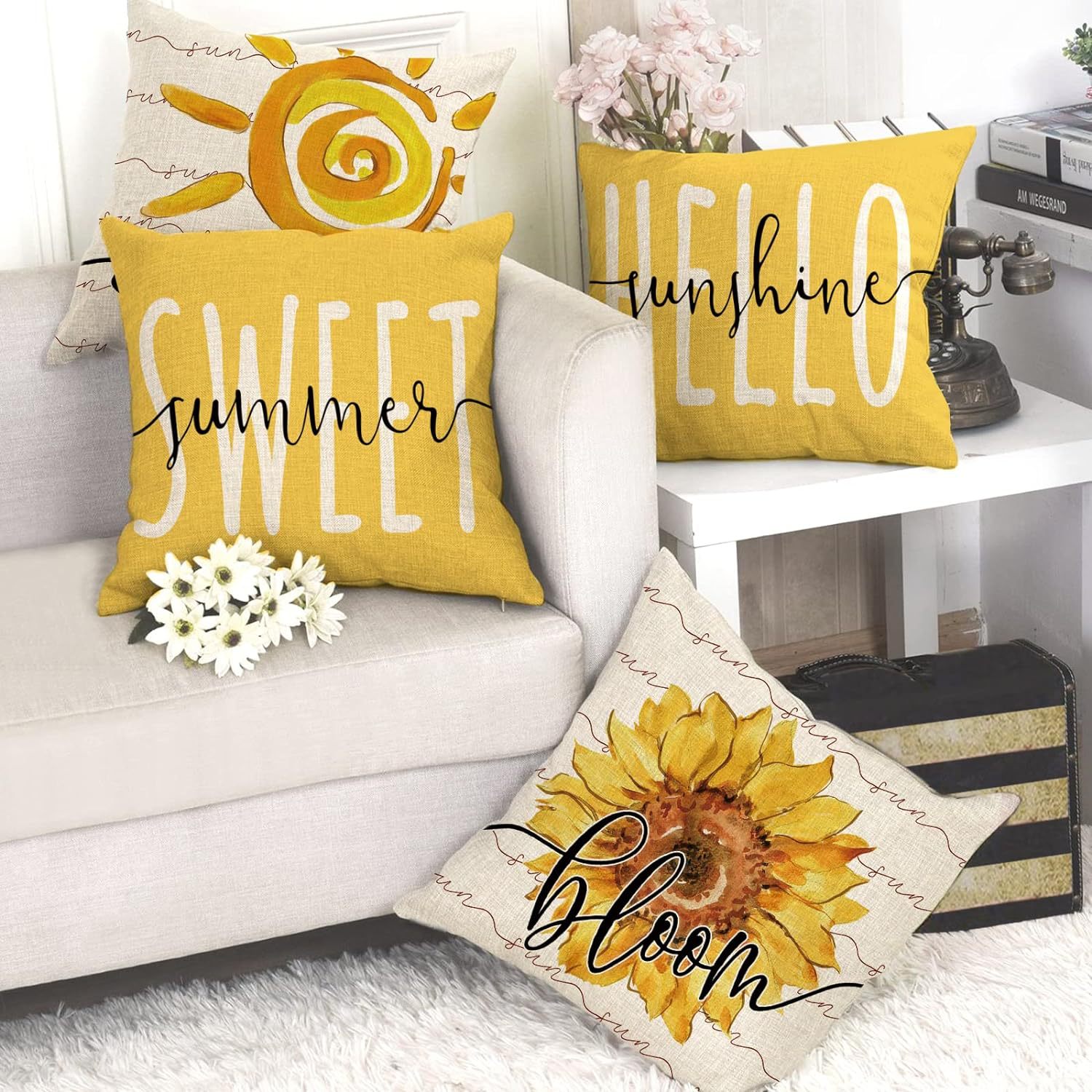 夏季花朵亚麻抱枕套客厅沙发椅子靠枕套夏天氛围家居装饰飘窗靠垫