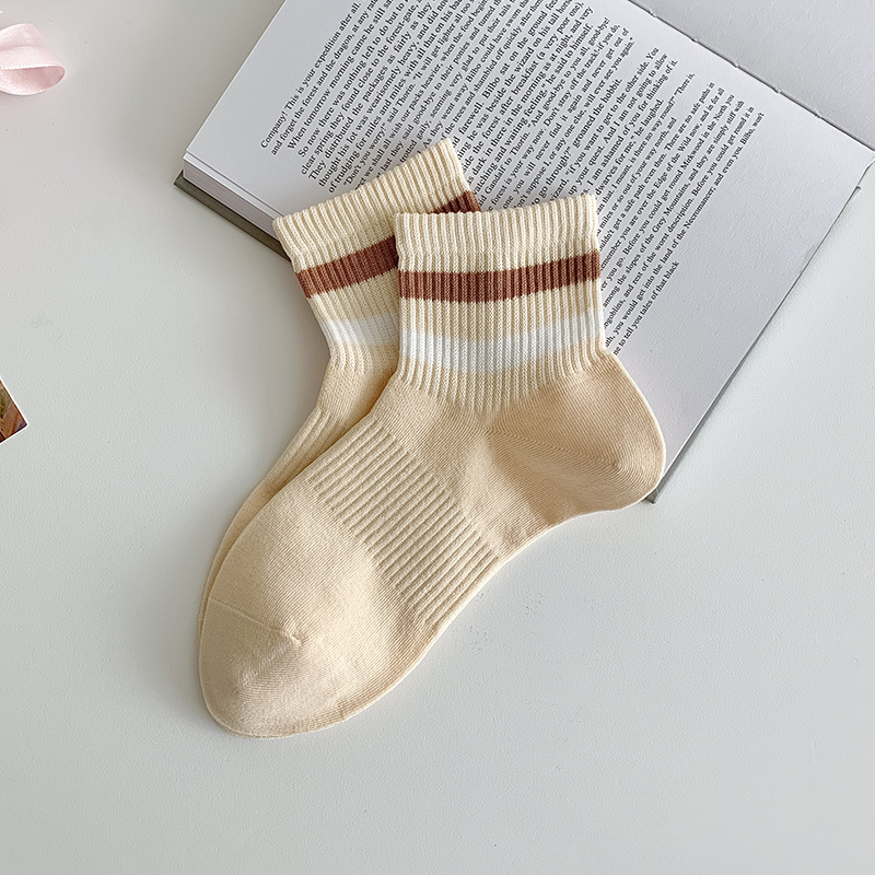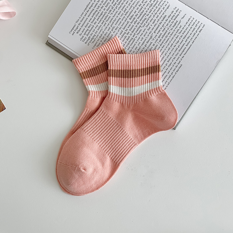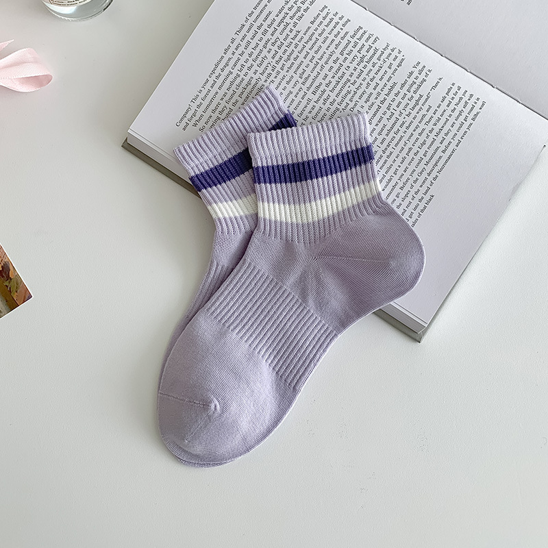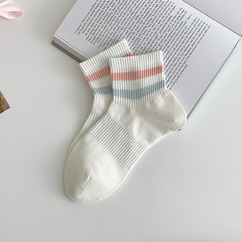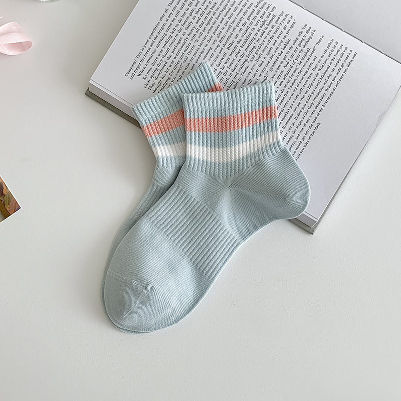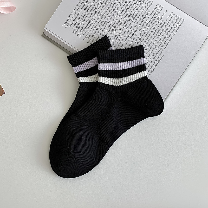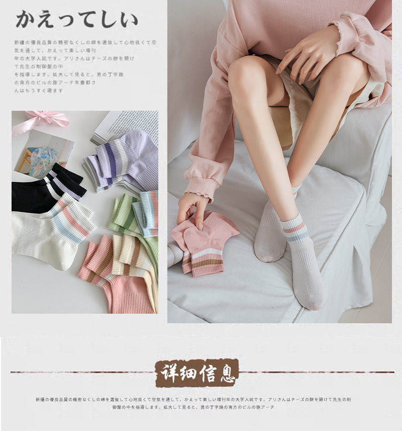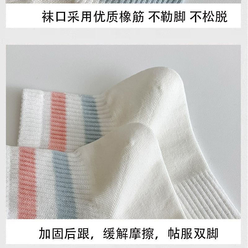 90°直角袜子女短袜条纹二杠春夏季低帮运动日系中筒纯色棉袜批发
