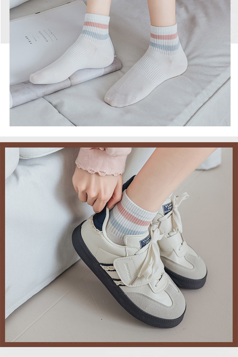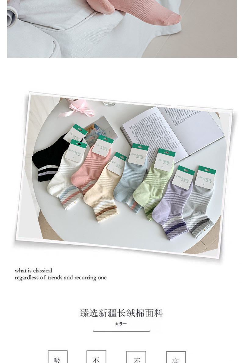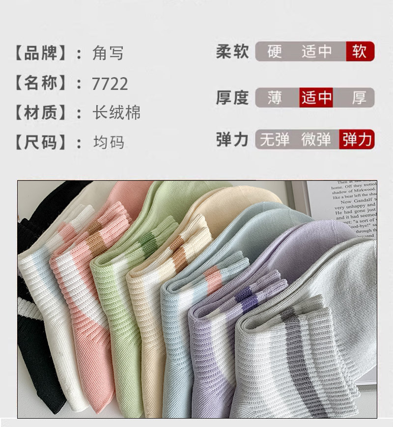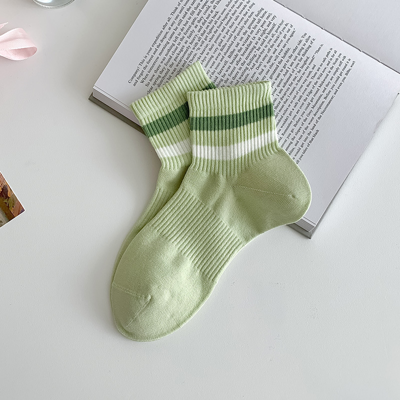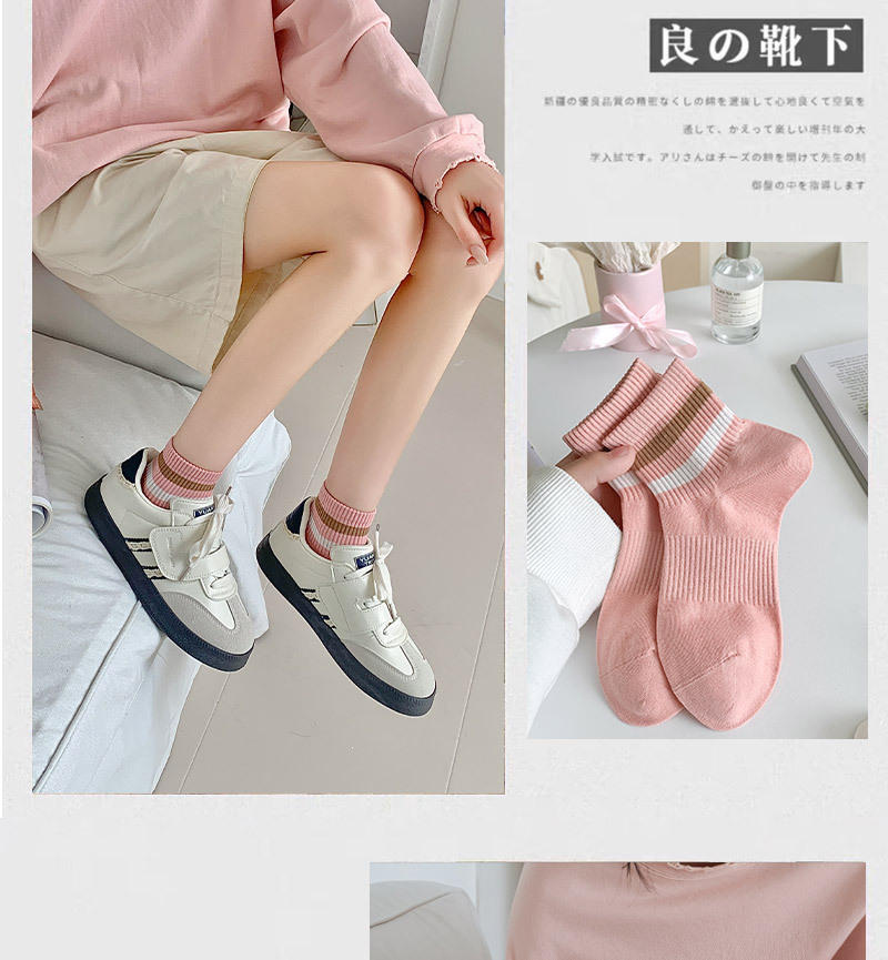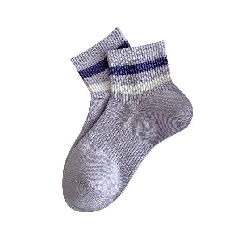 90°直角袜子女短袜条纹二杠春夏季低帮运动日系中筒纯色棉袜批发