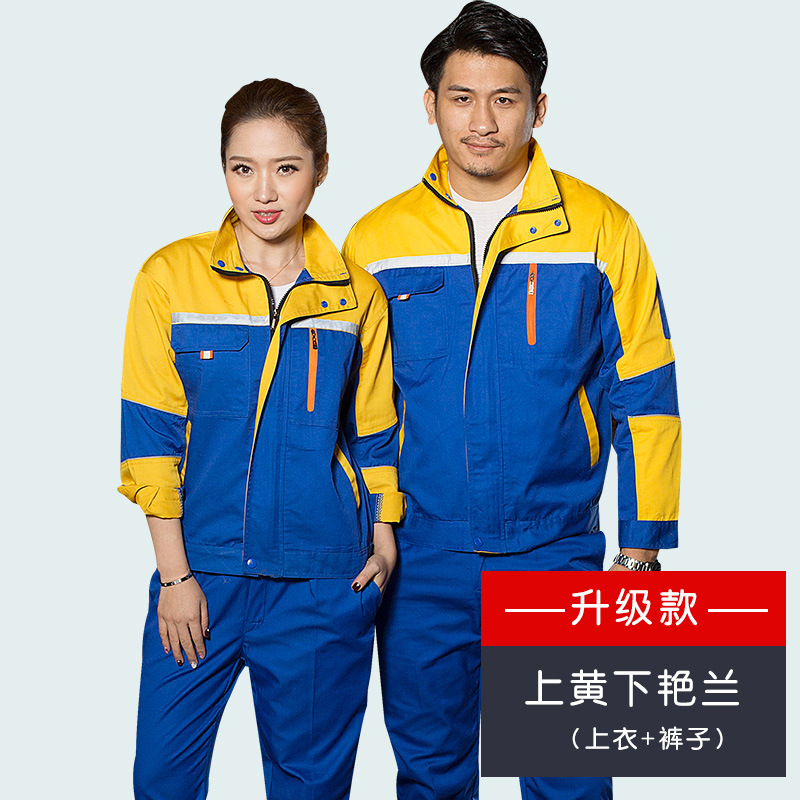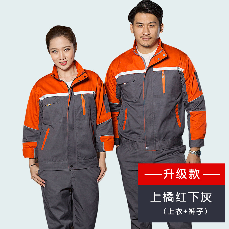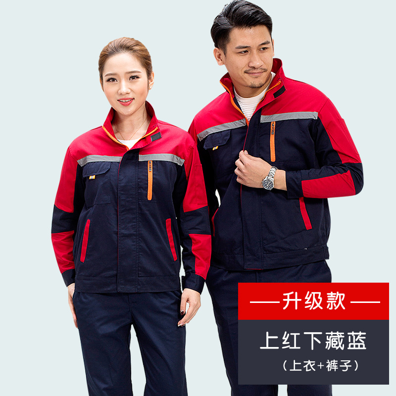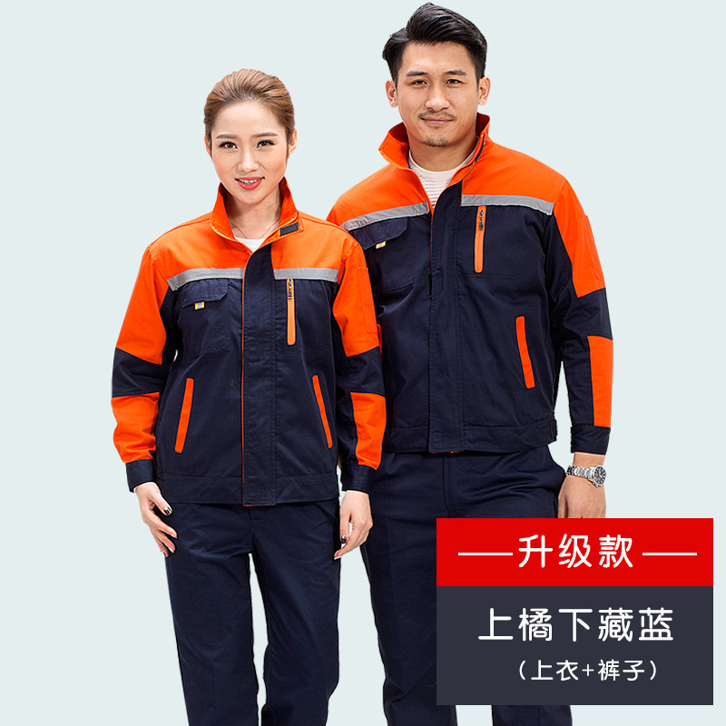 工作服套装春秋季男长袖加厚耐磨汽修车间反光条工程劳保服定/制
