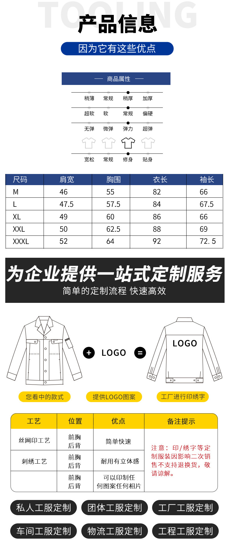 长袖工作服定制男耐磨春秋厂服上衣车间汽修服机电车间工装劳保服
