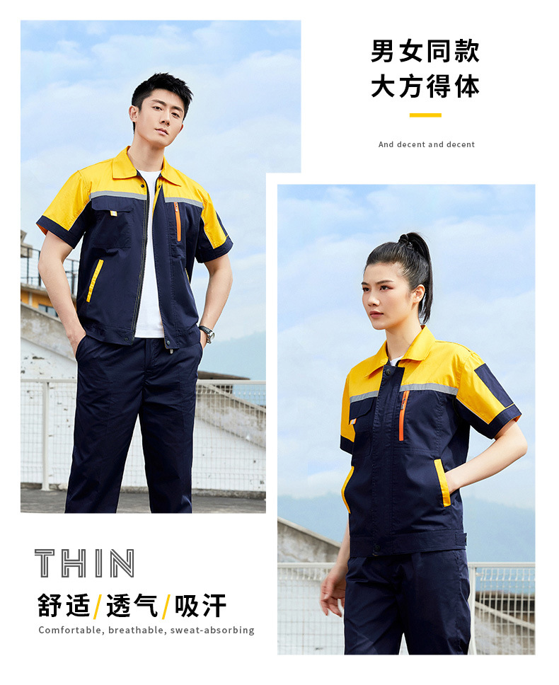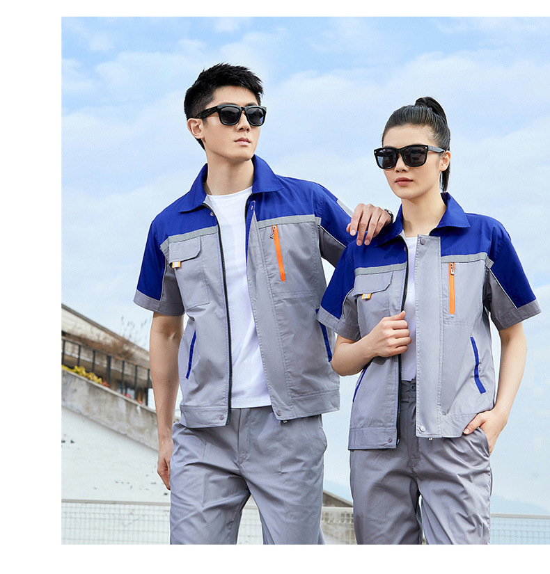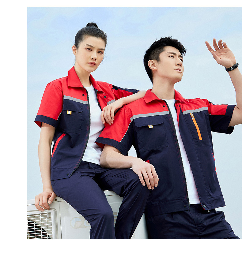 短袖夏工作服套装汽修厂服上衣装修工人劳动服空调维修劳保服定制