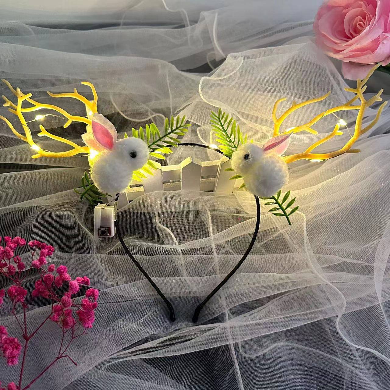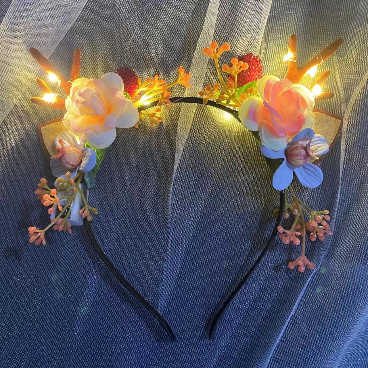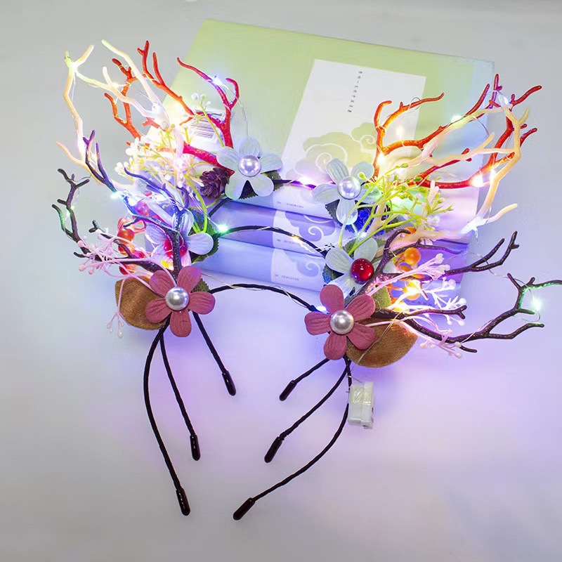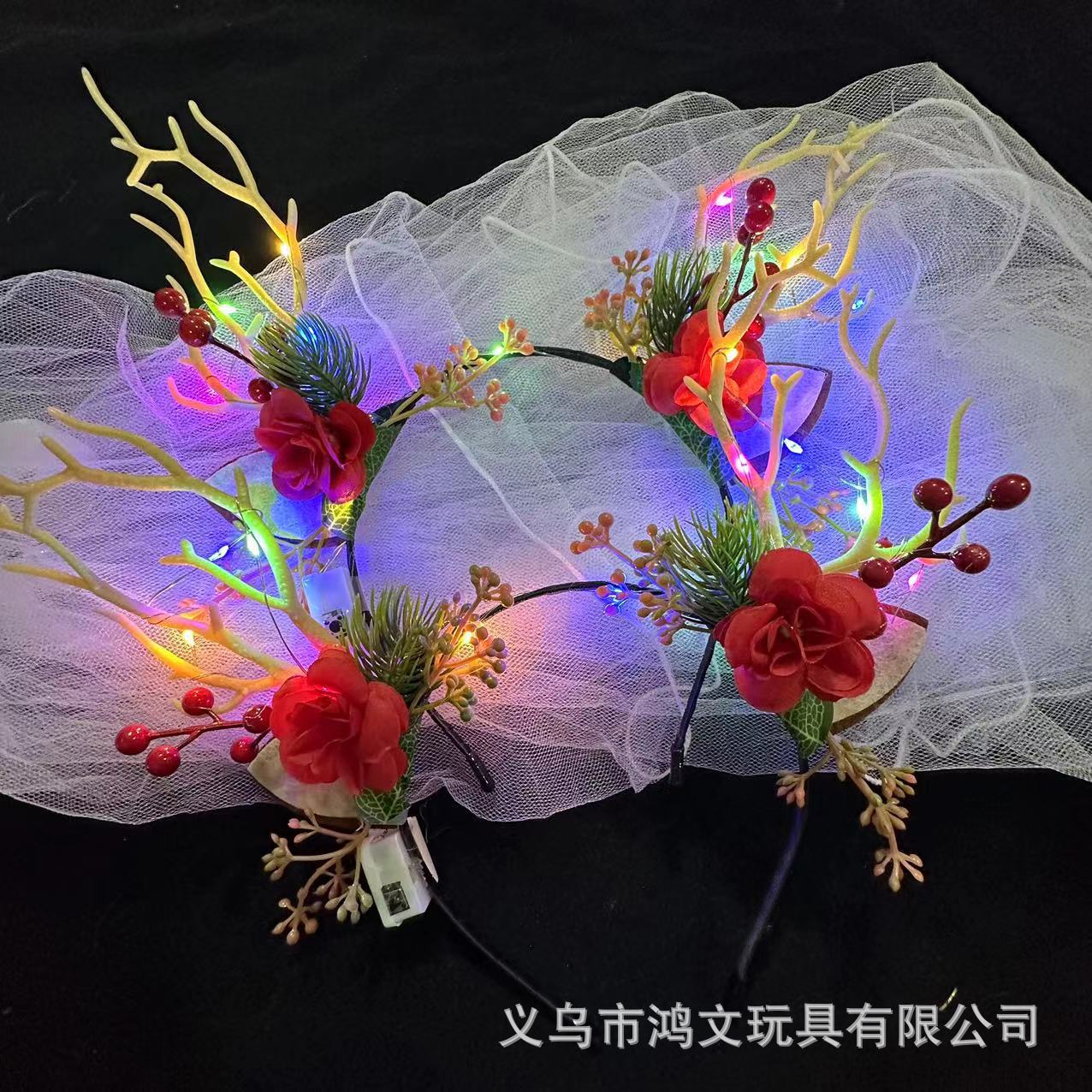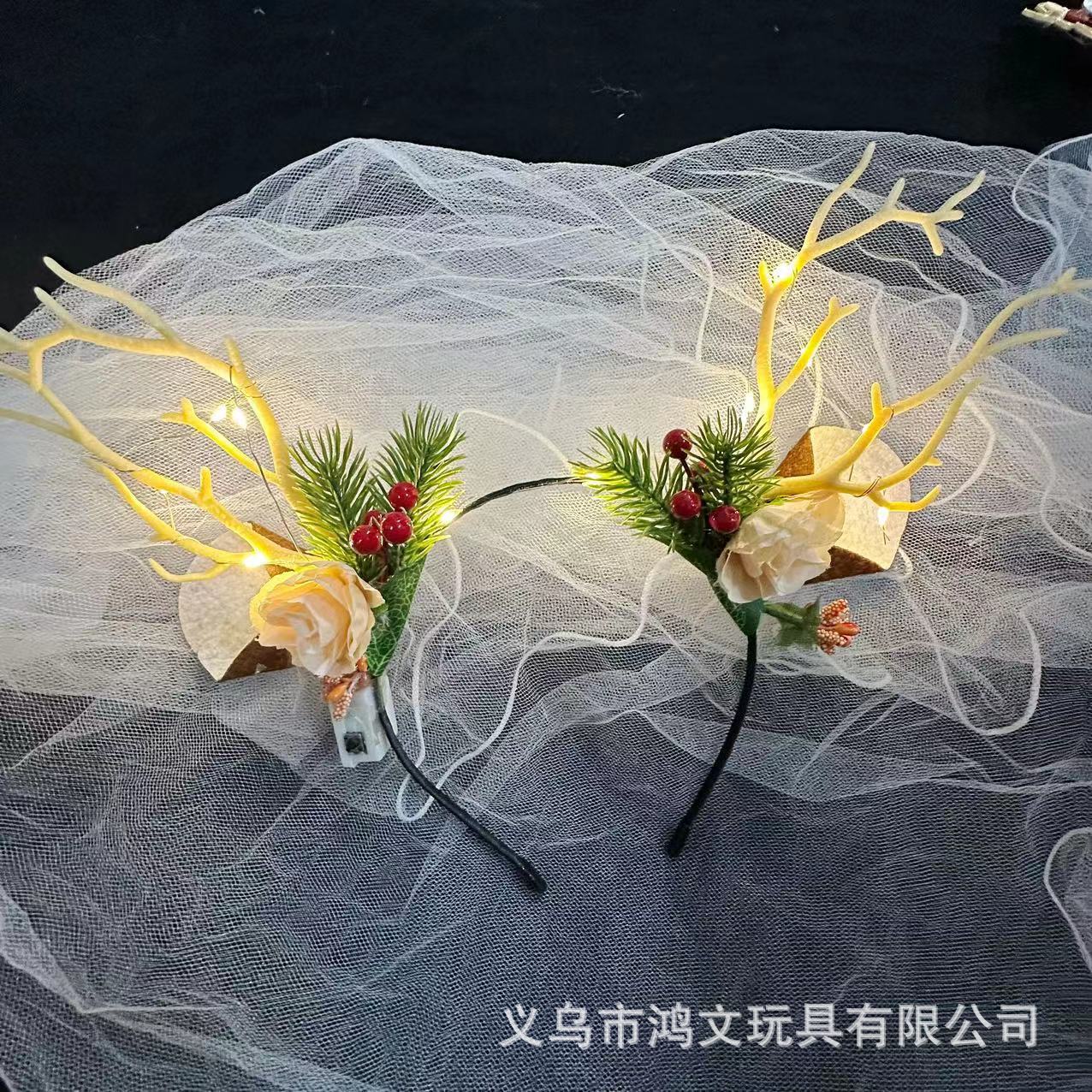 发光鹿角头箍新款圣诞节发箍麋鹿闪光浆果猫耳朵头饰批发