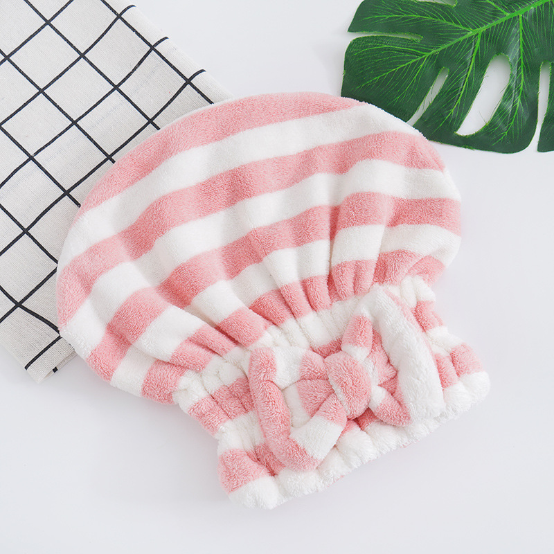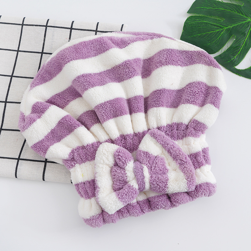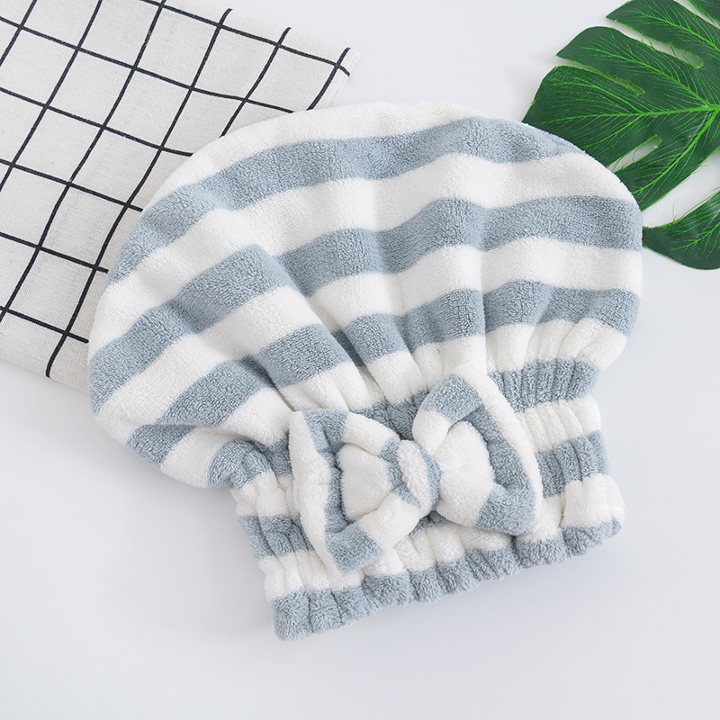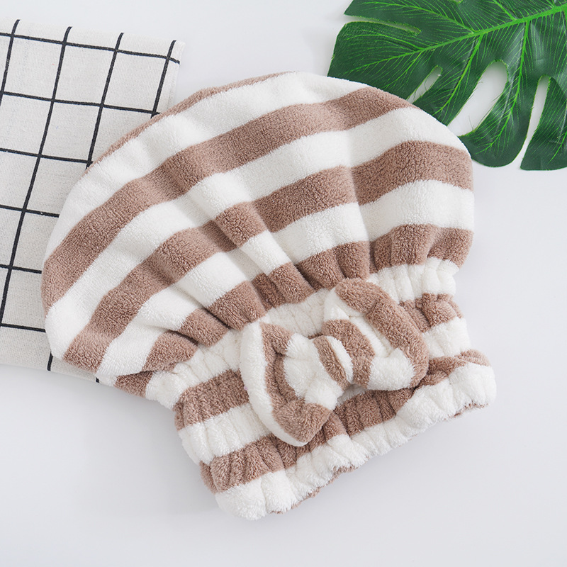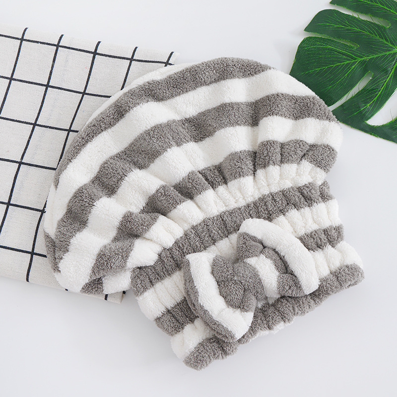 新款涤锦条纹干发帽 珊瑚绒浴帽抖音一件代发 吸水快干包头巾