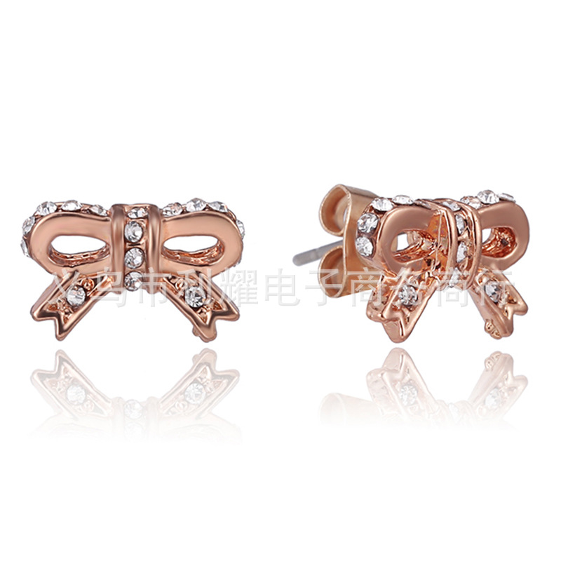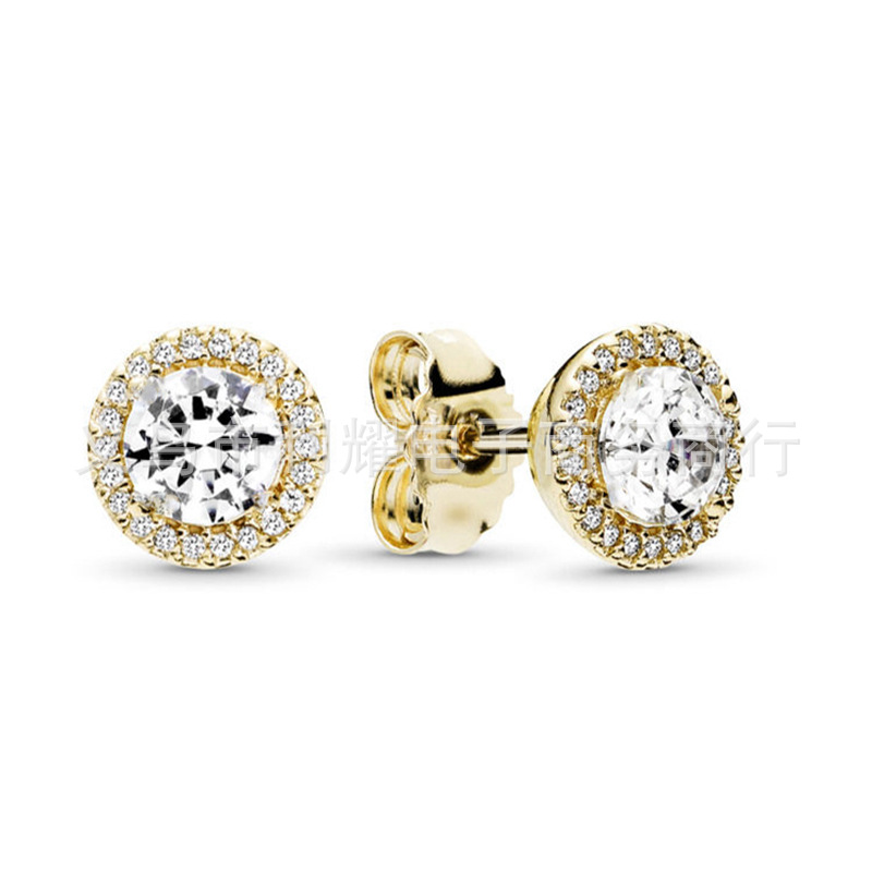 热销镶石满钻切面水晶石耳钉镶钻玫瑰金优雅圆圈圈耳钉耳饰品批发